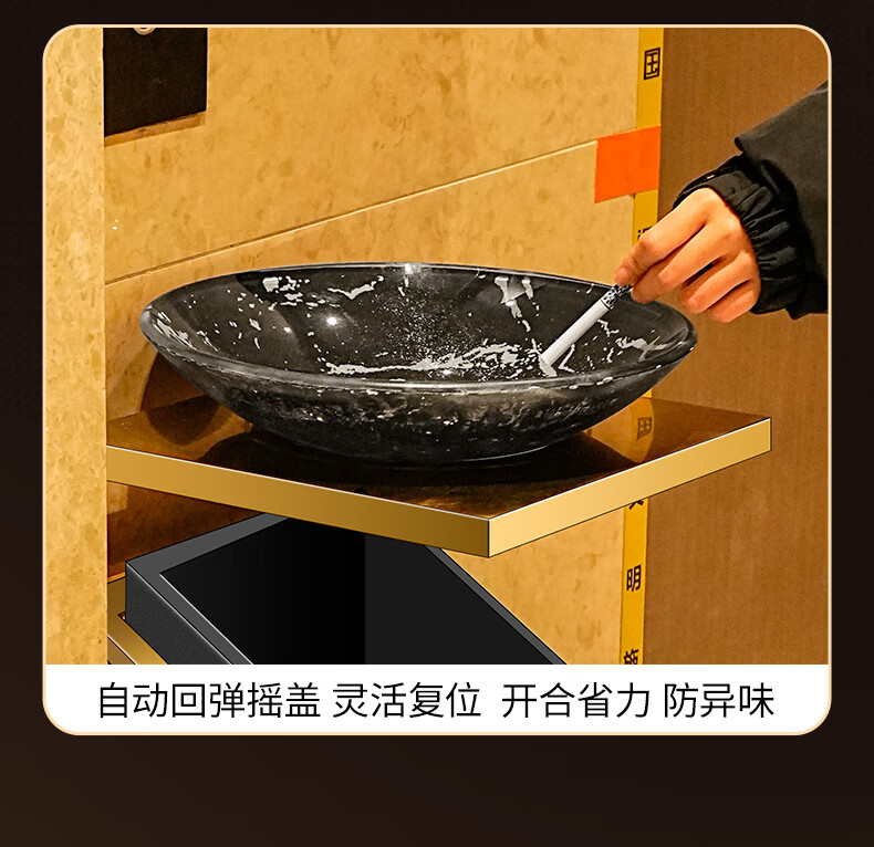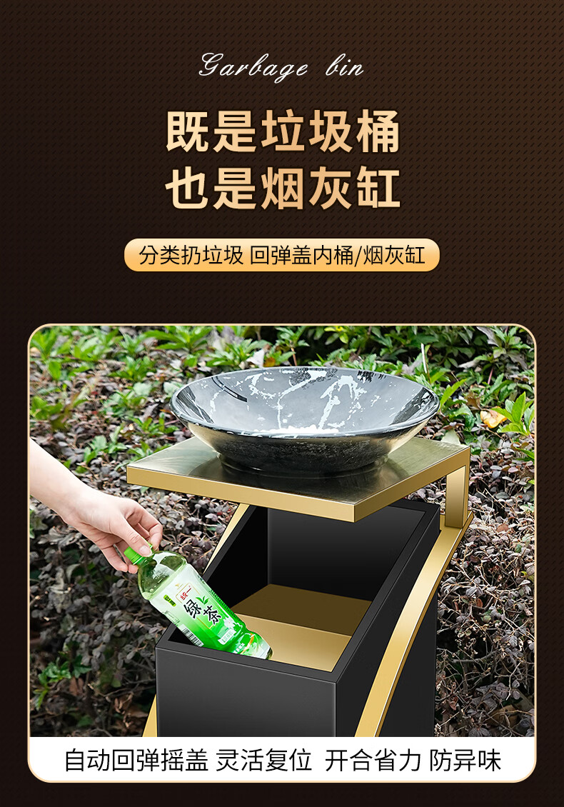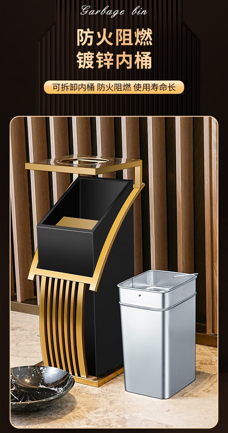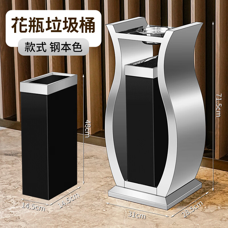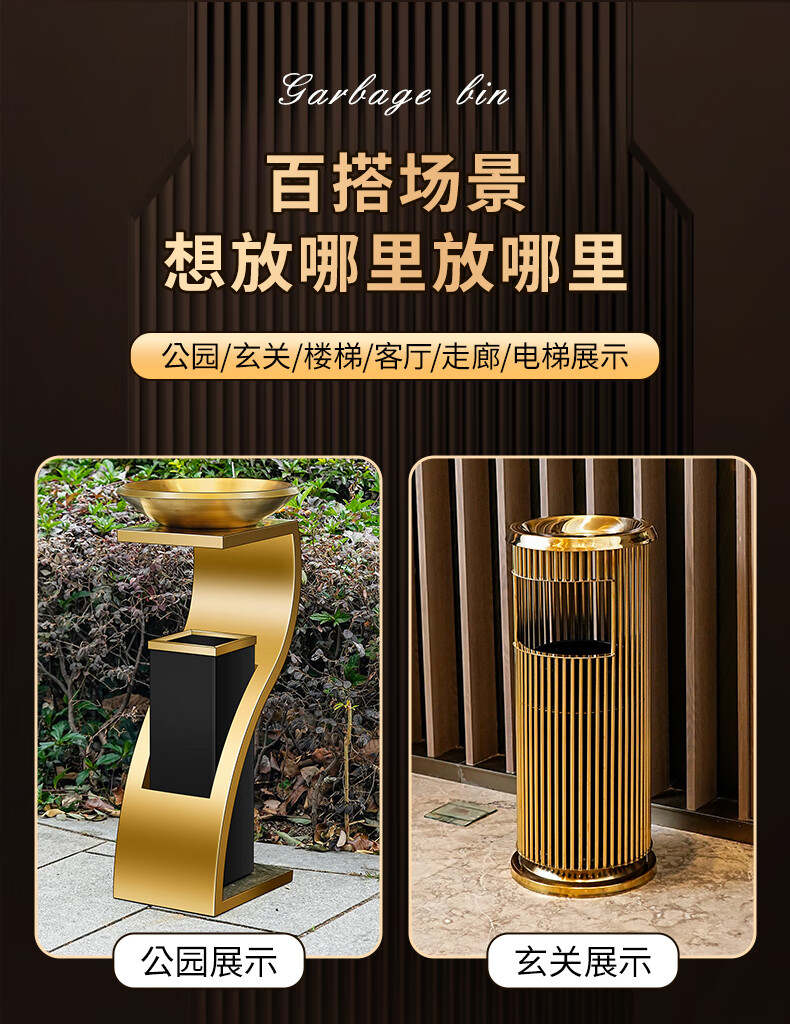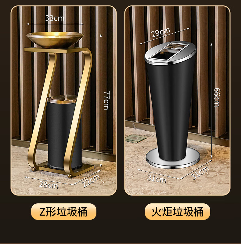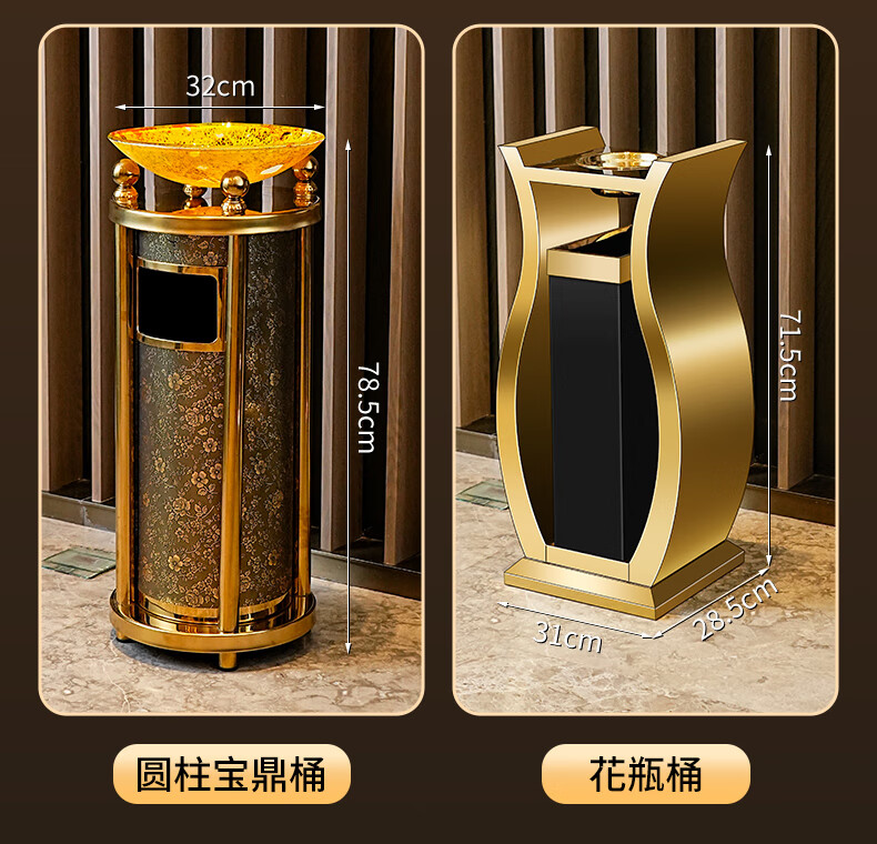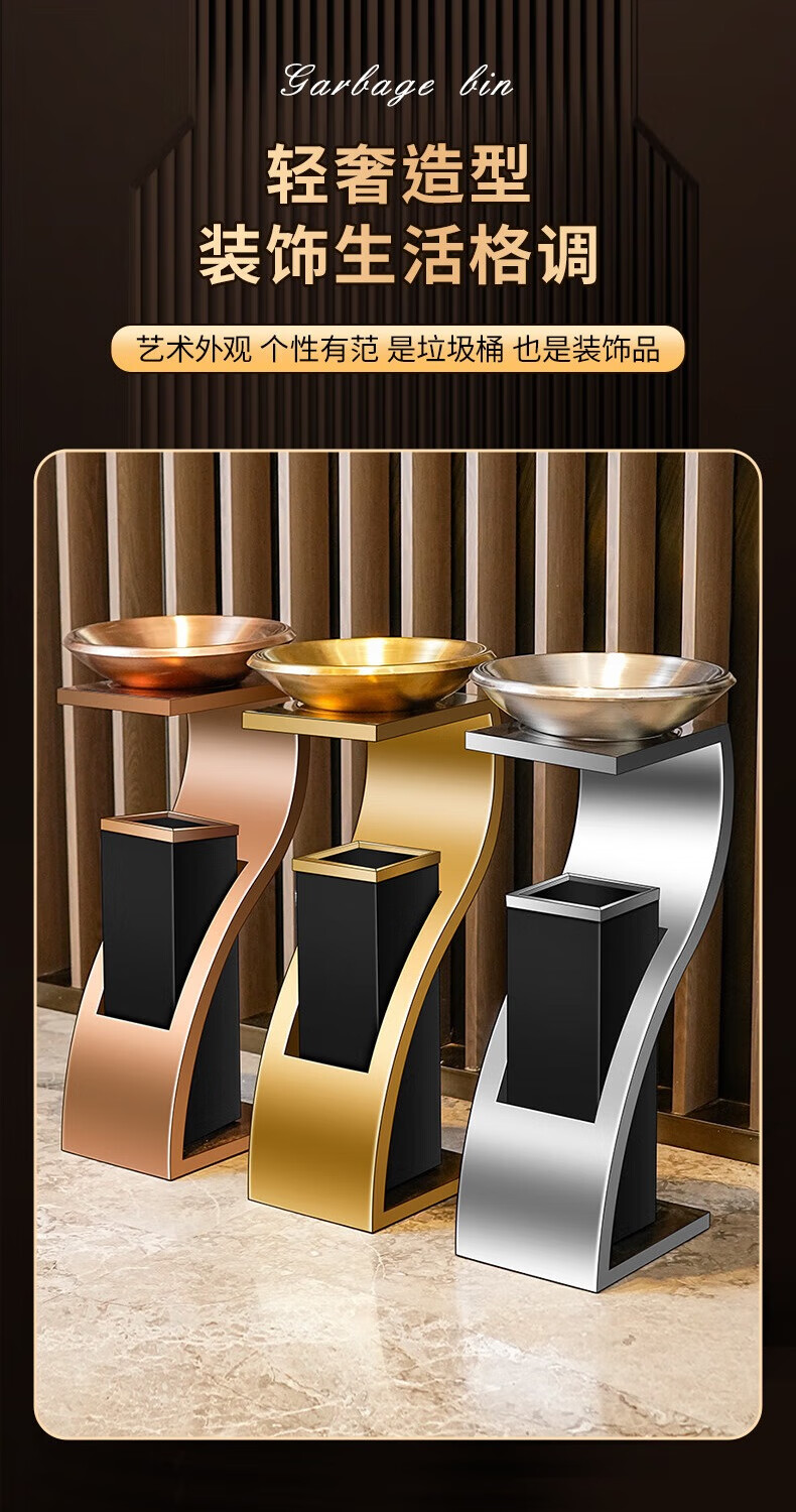Runkai hotel lobby stainless steel trash can commercial office building vertical elevator corridor KTV sanitary bucket with ashtray small waist black gold