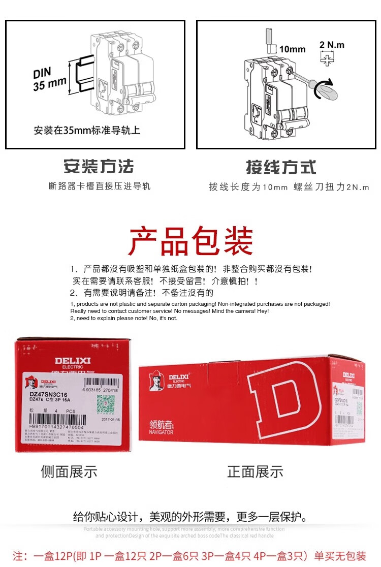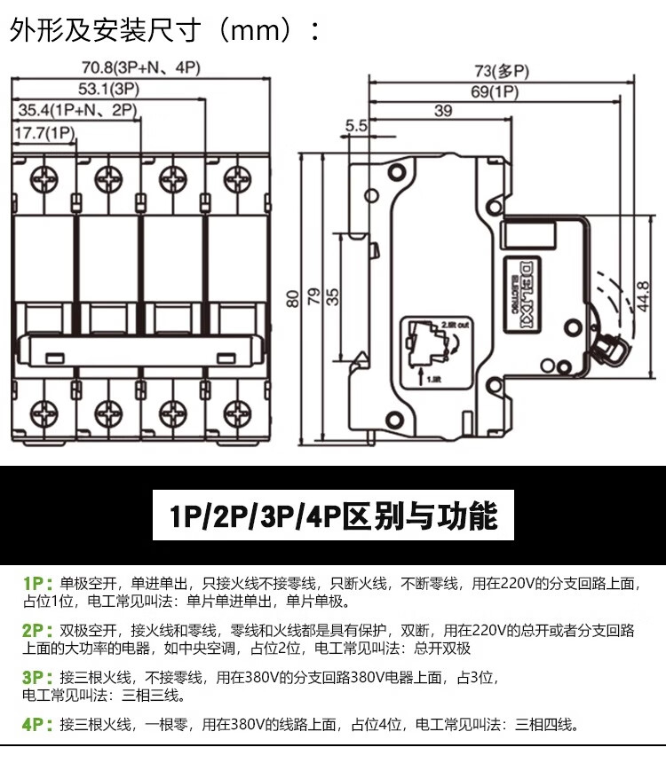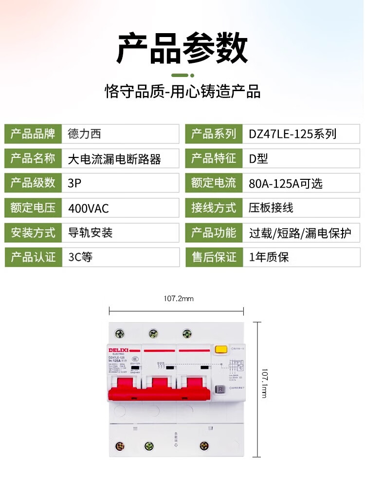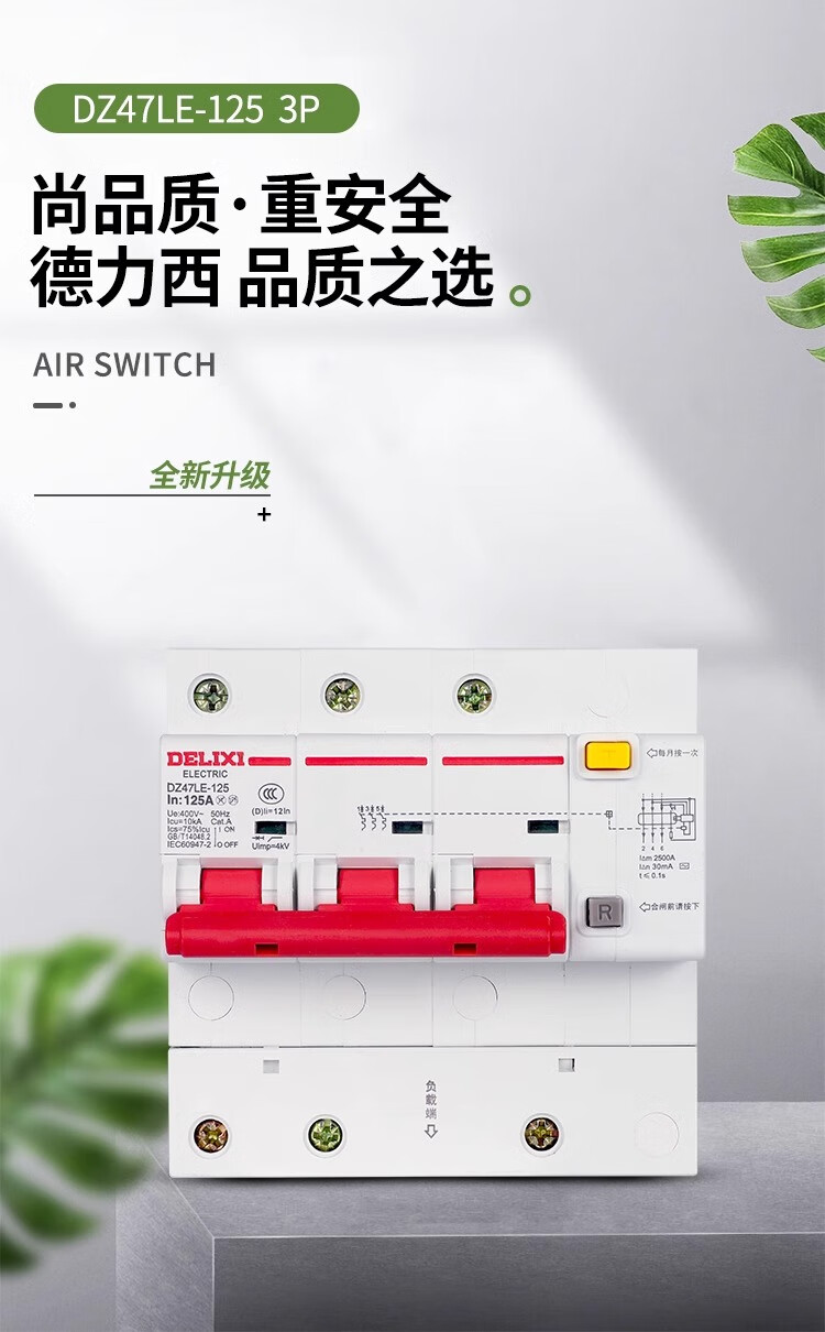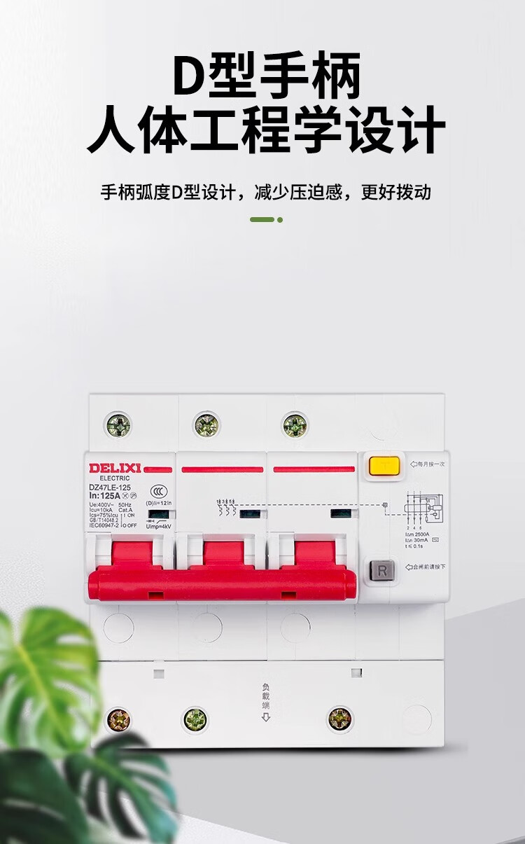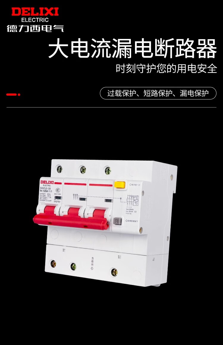 Delixi three-phase three-wire leakage air switch high power CDB2 DZ47LE3P 80A 100A 125A 80A 3P