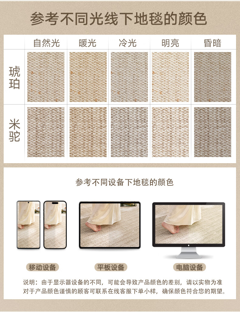 Dajiang wool carpet living room carpet high-end light luxury large area washable and wipeable sofa bedroom round carpet Yunshu-Amber (round) 100cm*100cm