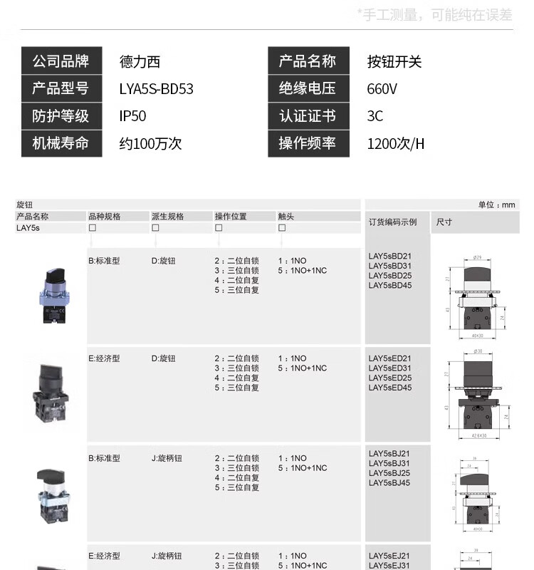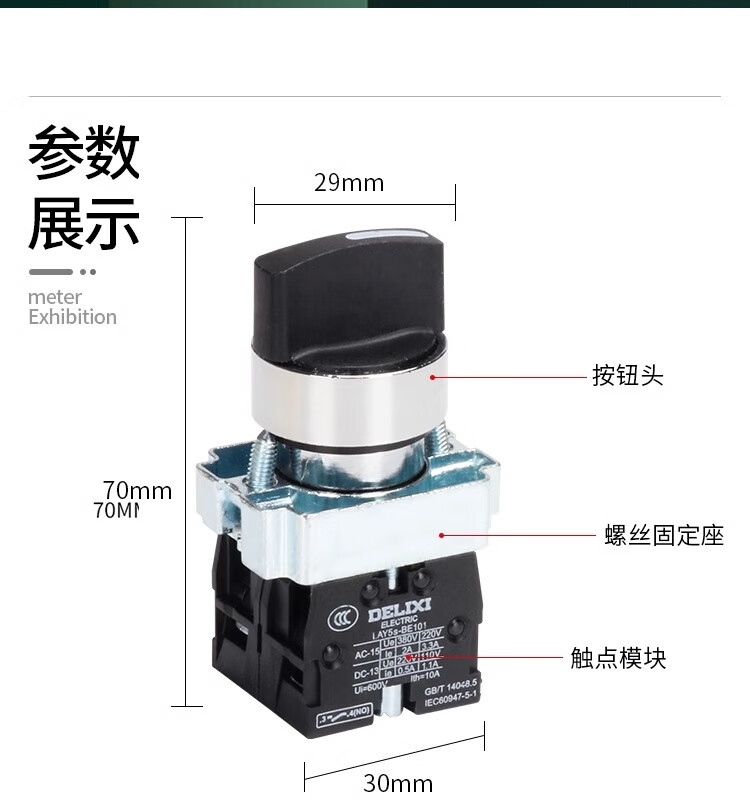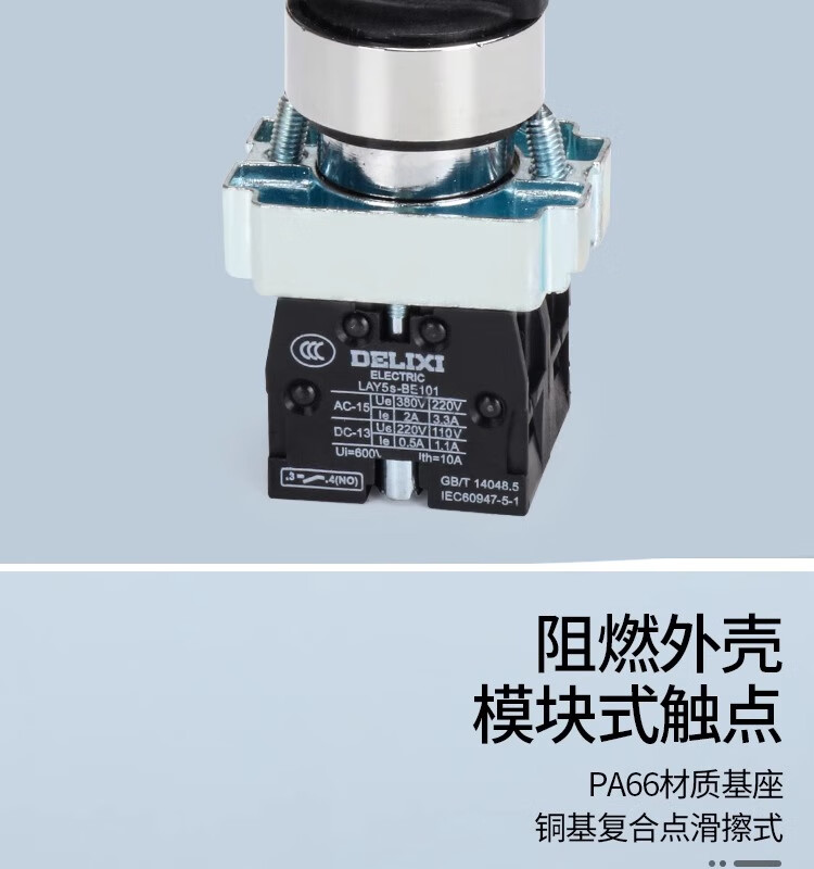Delixi self-restoring knob switch self-resetting three-position knob LAY5s-BD53 three-position switch LAY5s-BD53 three-position self-resetting two normally open