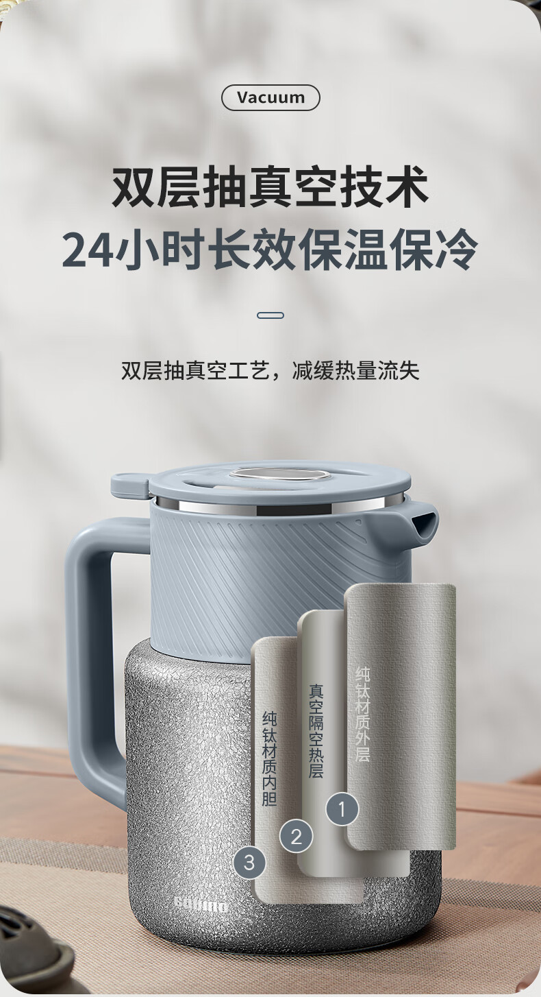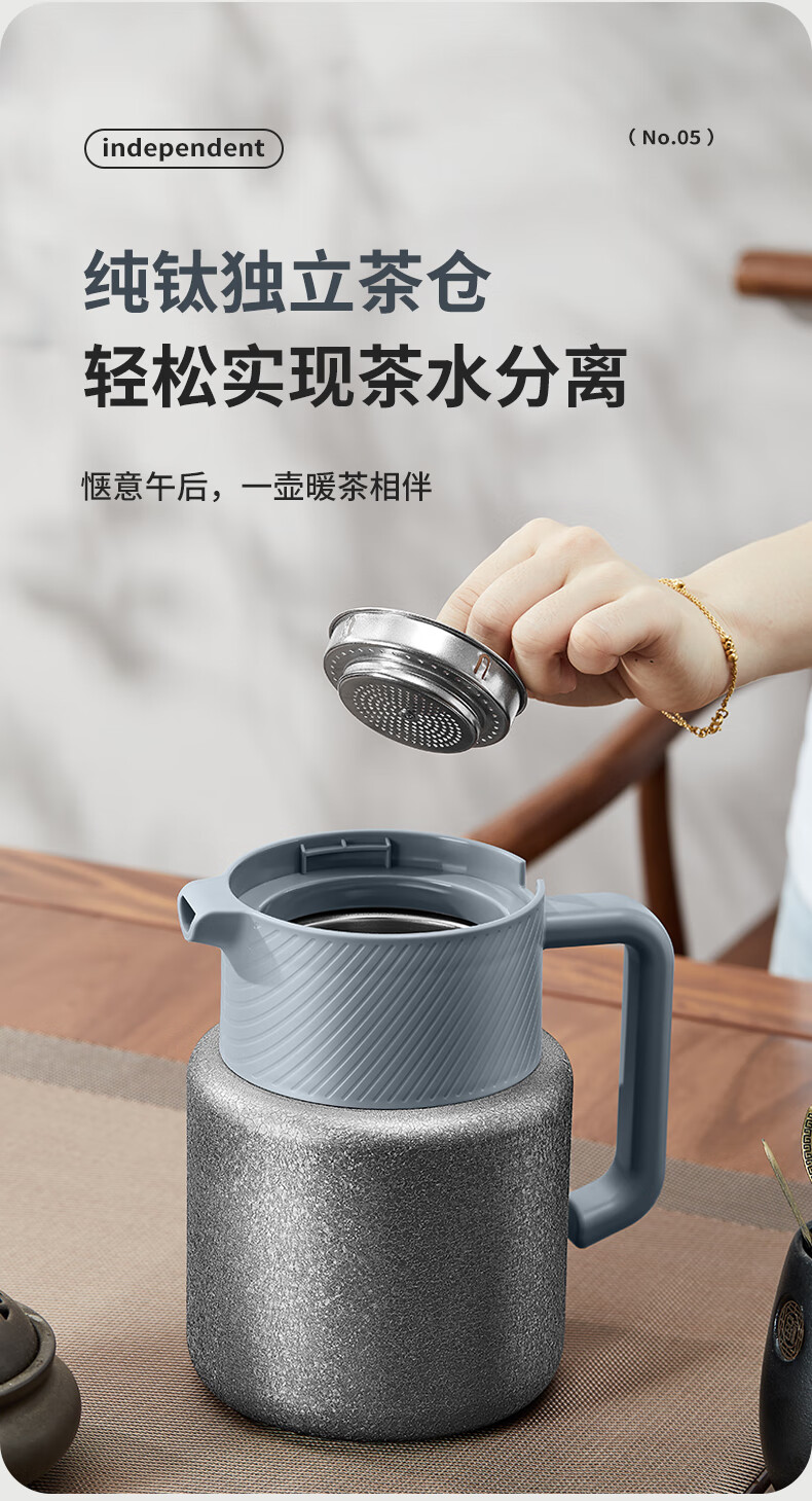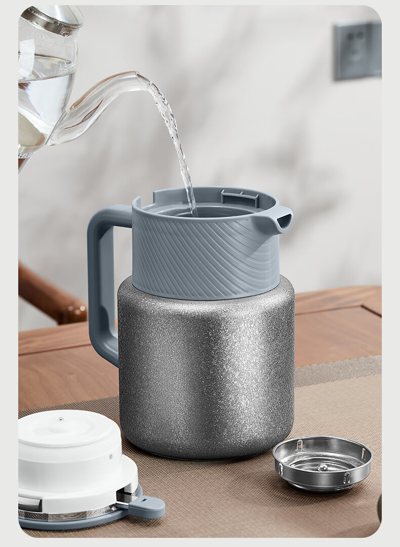 Omeda pure titanium thermal kettle teapot stewing teapot tea water separation old thermos kettle household hot water kettle 1500ml deep space gray