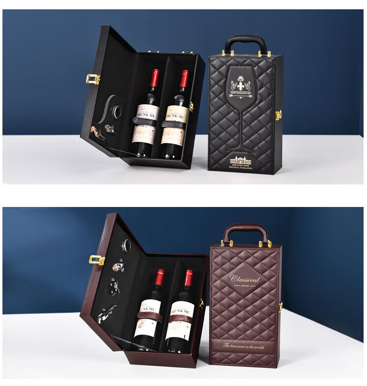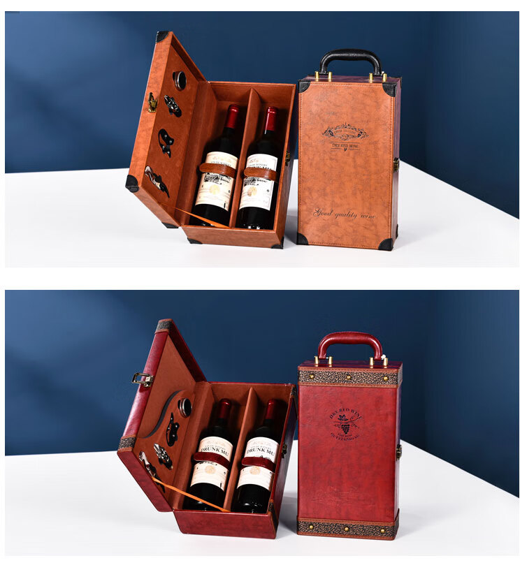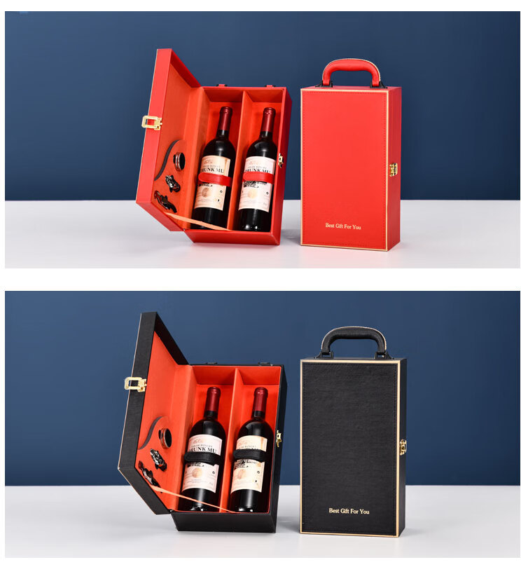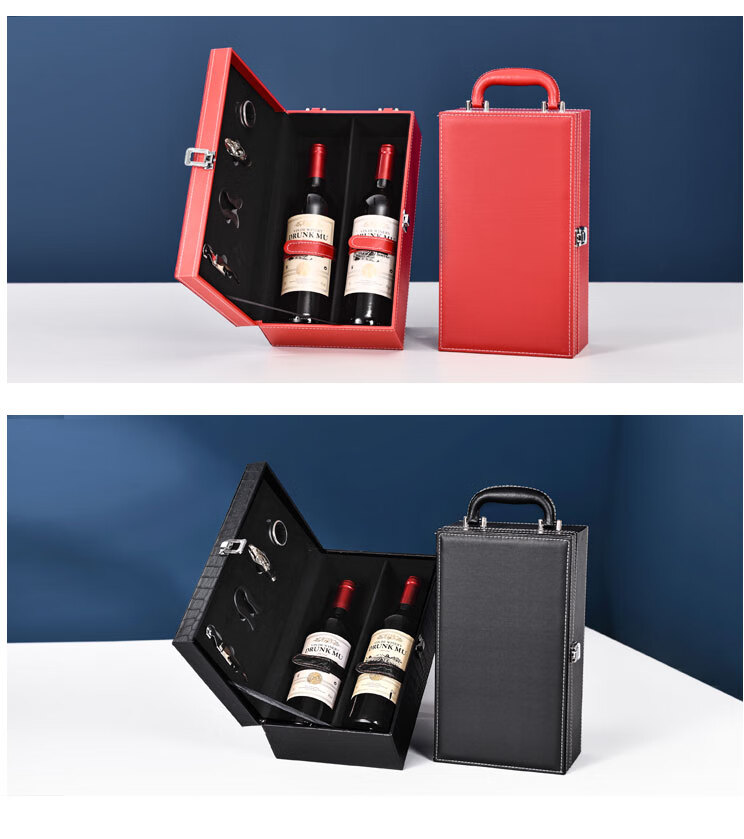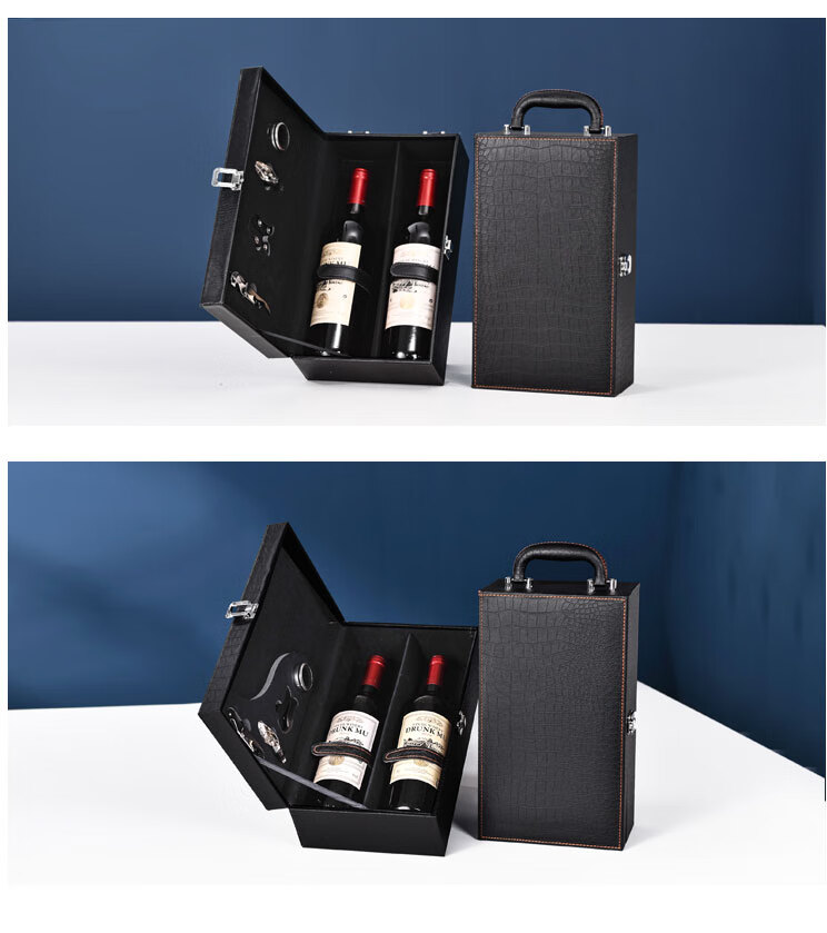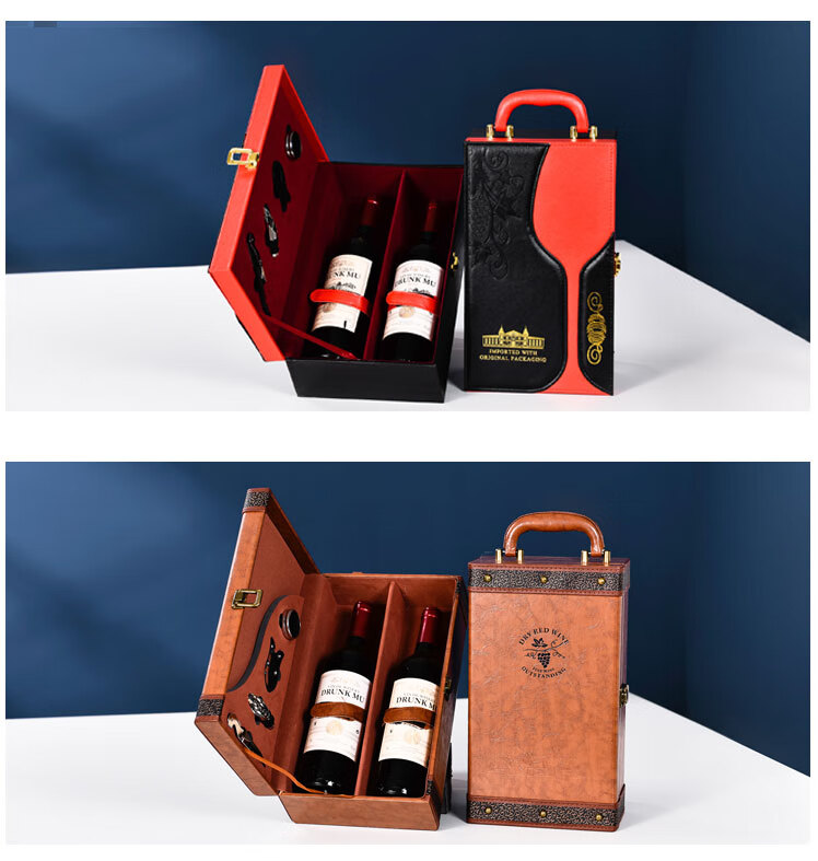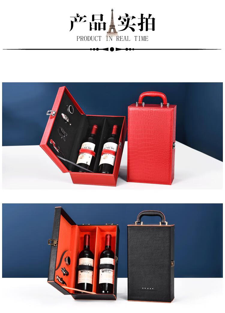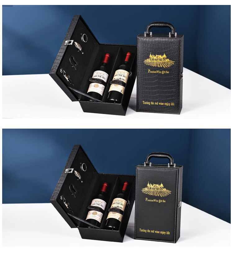 Fat Donglai same style red wine gift box empty box packaging box double dry red wine packaging leather box suitcase custom black double bauhinia flower