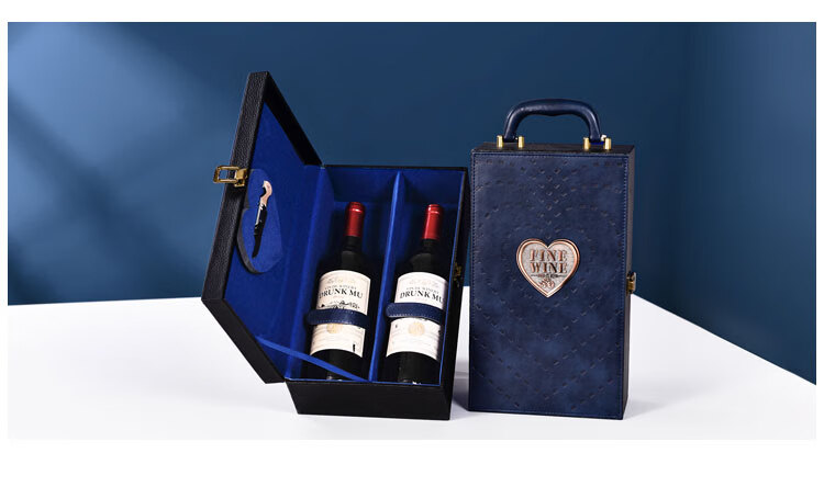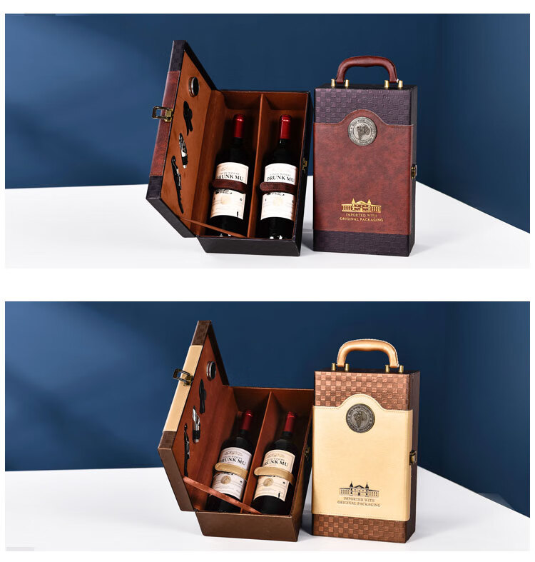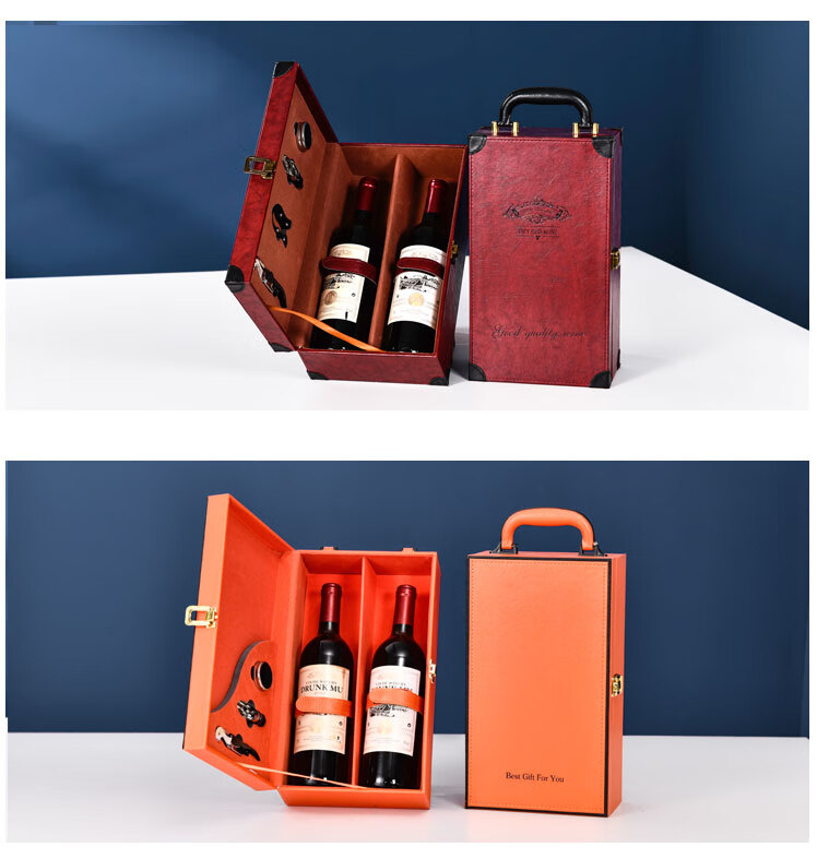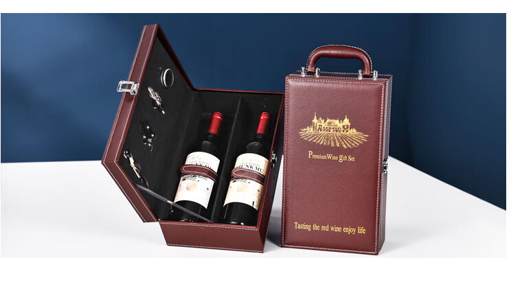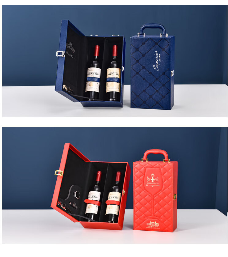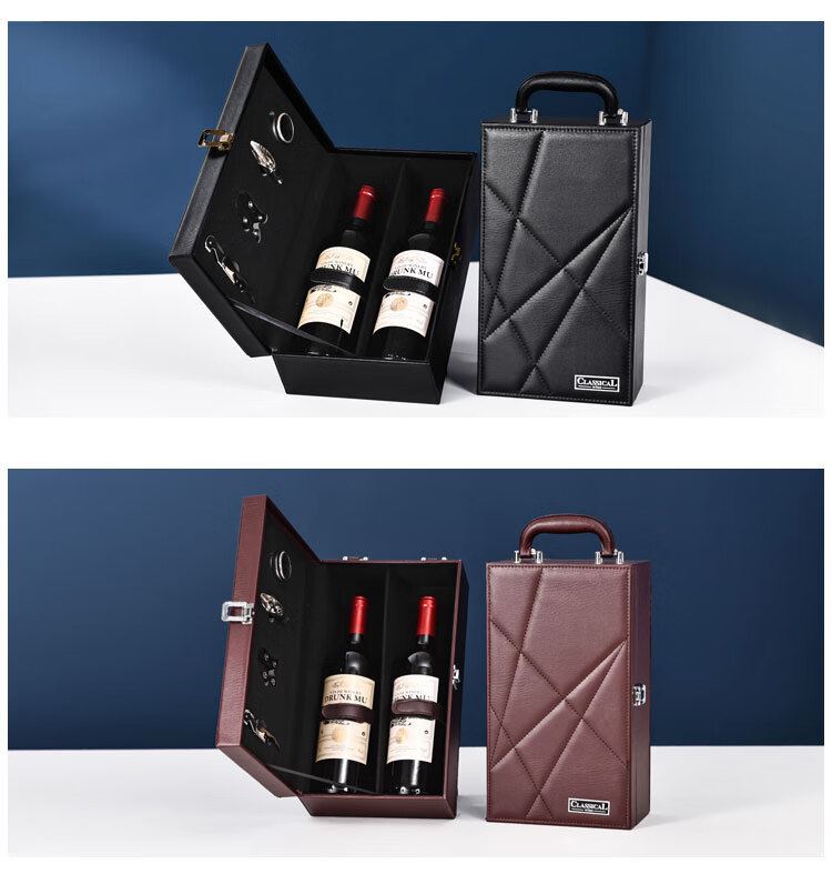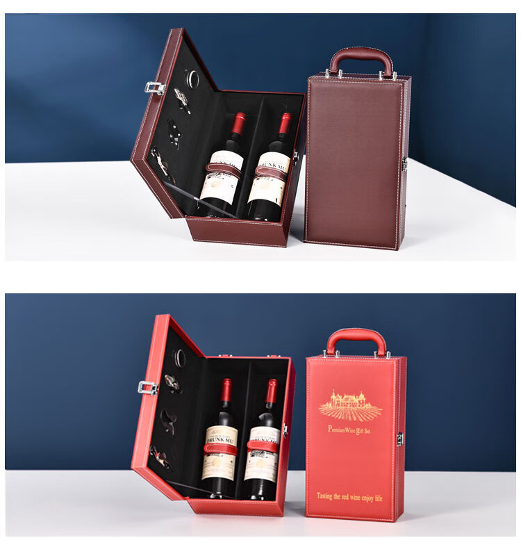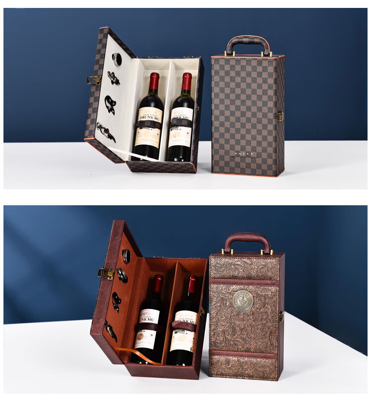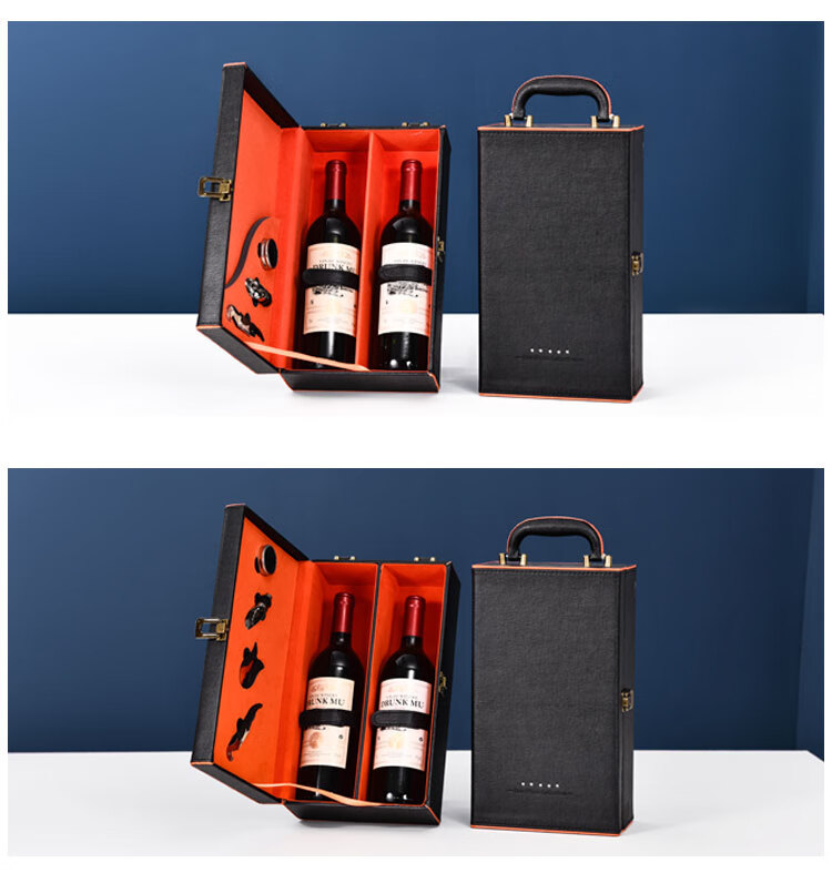 Fat Donglai same style red wine gift box empty box packaging box double dry red wine packaging leather box suitcase custom black double bauhinia flower