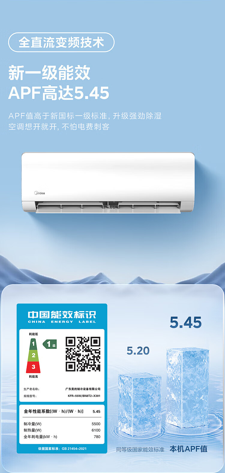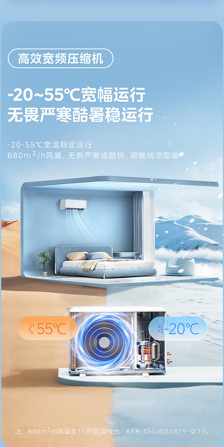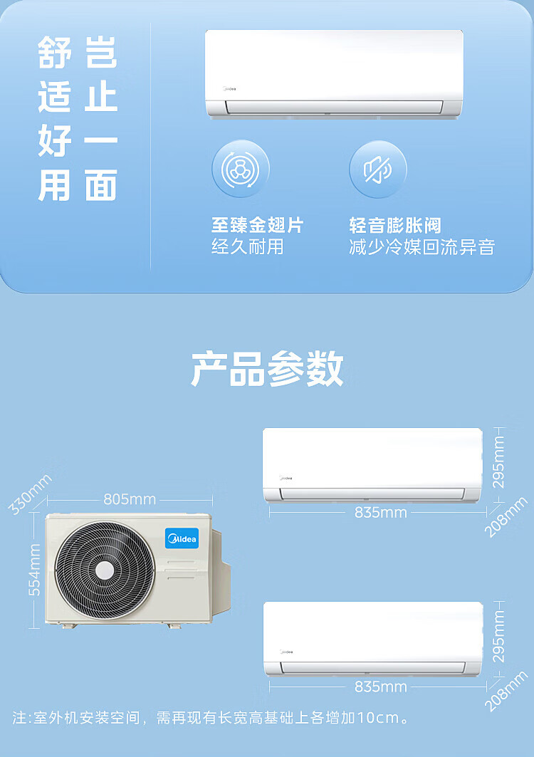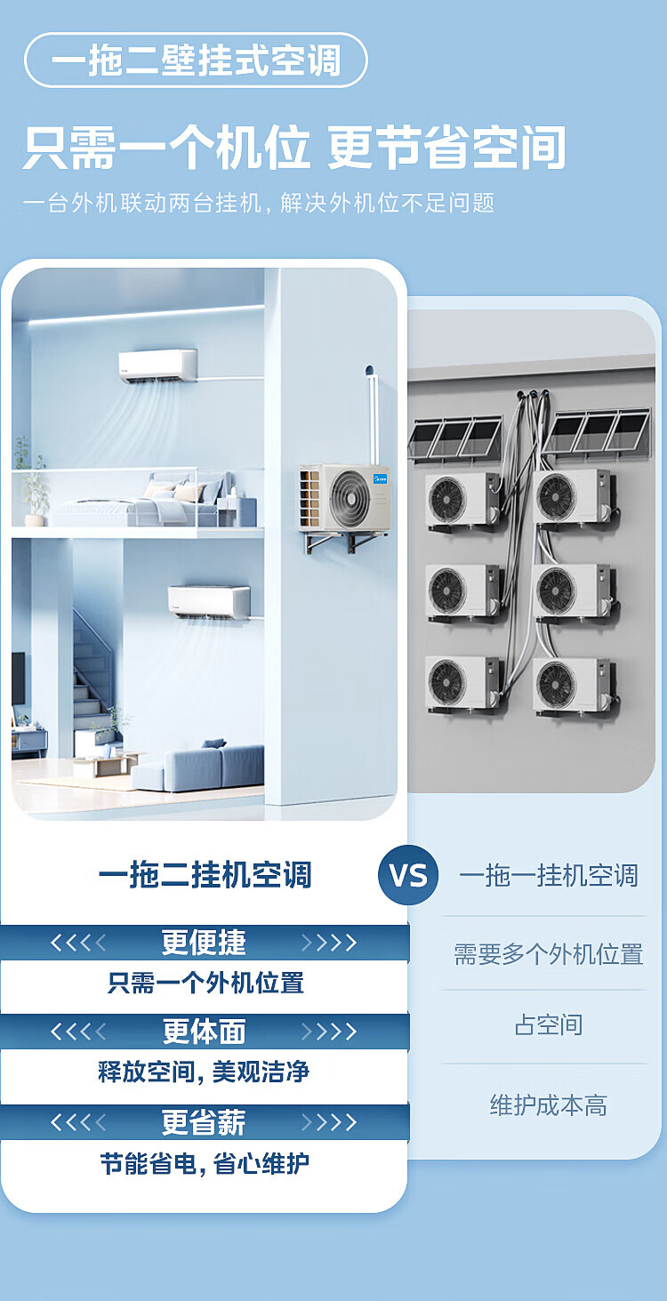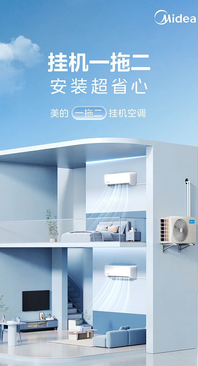 Midea air conditioner, large 2 HP, one to two, wall-mounted split type household air conditioner, new level energy efficiency, frequency conversion, energy saving, power saving, cooling, heating, silent and comfortable, household central air conditioner multi-split, large 2 HP, first level energy efficiency, one to two hanging air conditioner