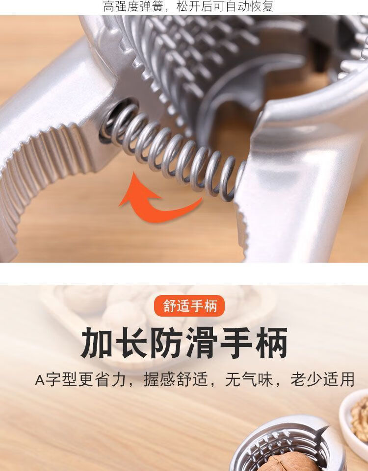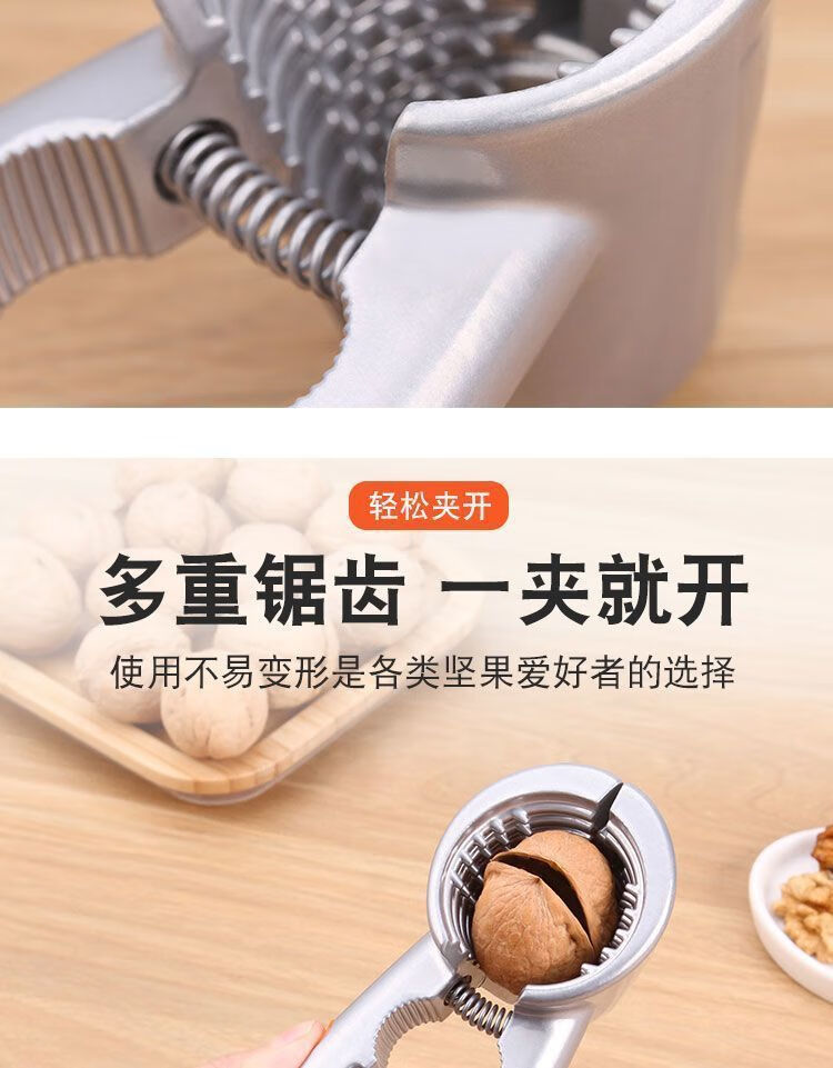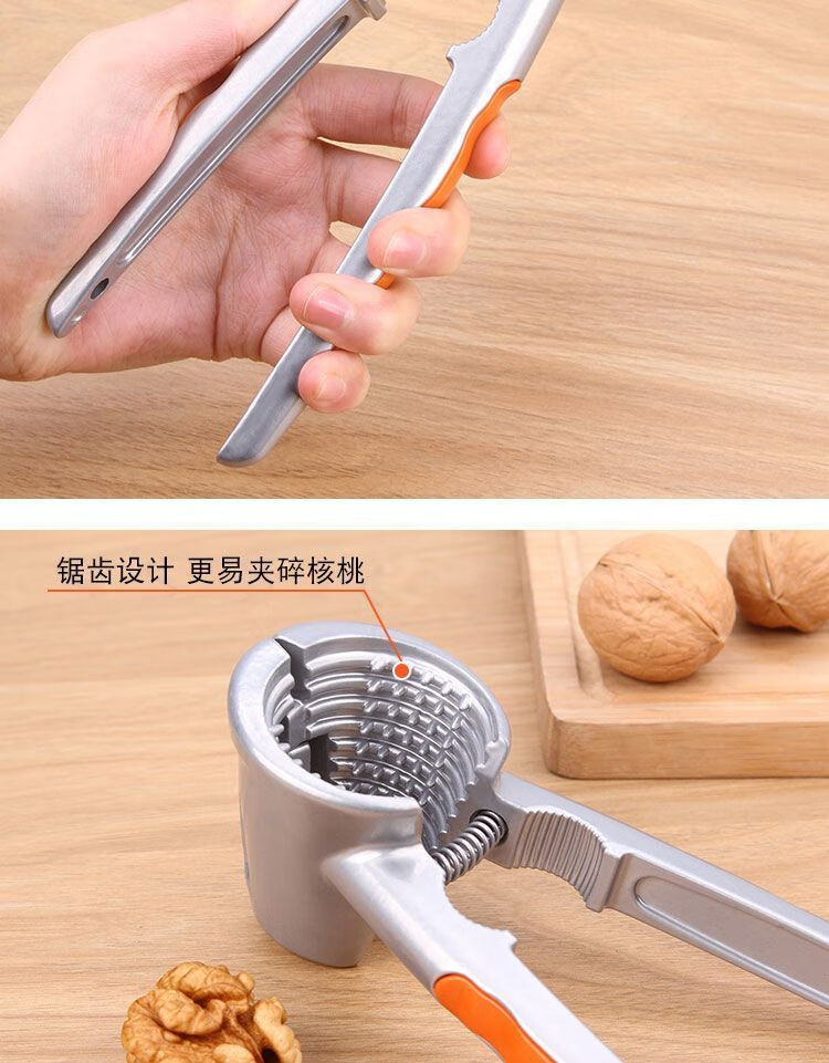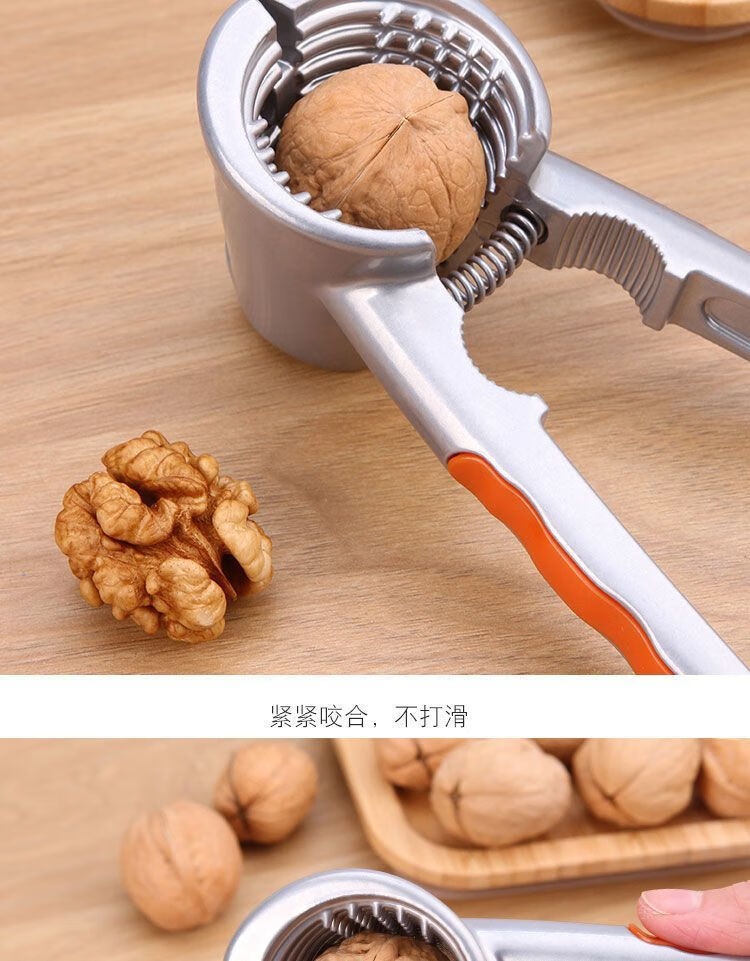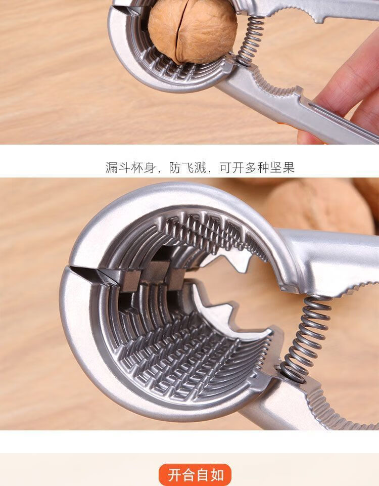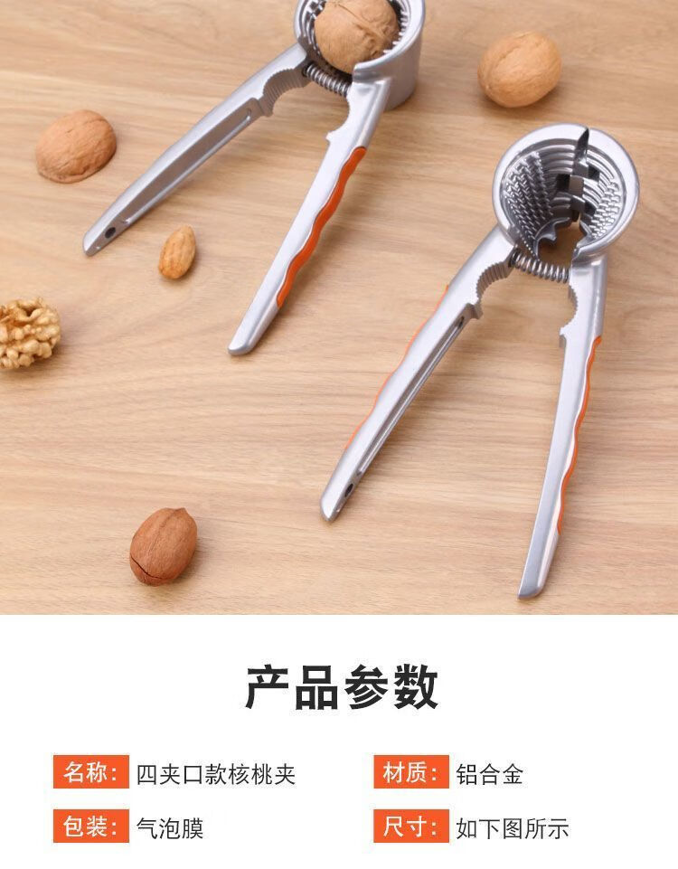 Qiashuo walnut clip pecan tool household multi-functional nut artifact hazelnut pliers thickened strong silver handle four-port walnut clip 1 pack