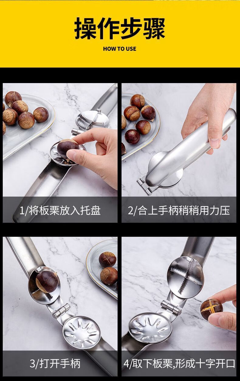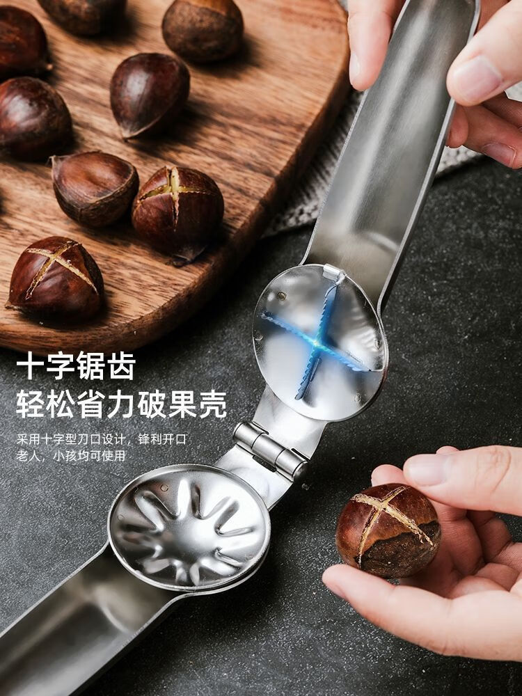 Qiashuo stainless steel walnut chestnut cross opener chestnut peeling artifact household raw chestnut shelling tool clip thickened stainless steel armor 2 pack