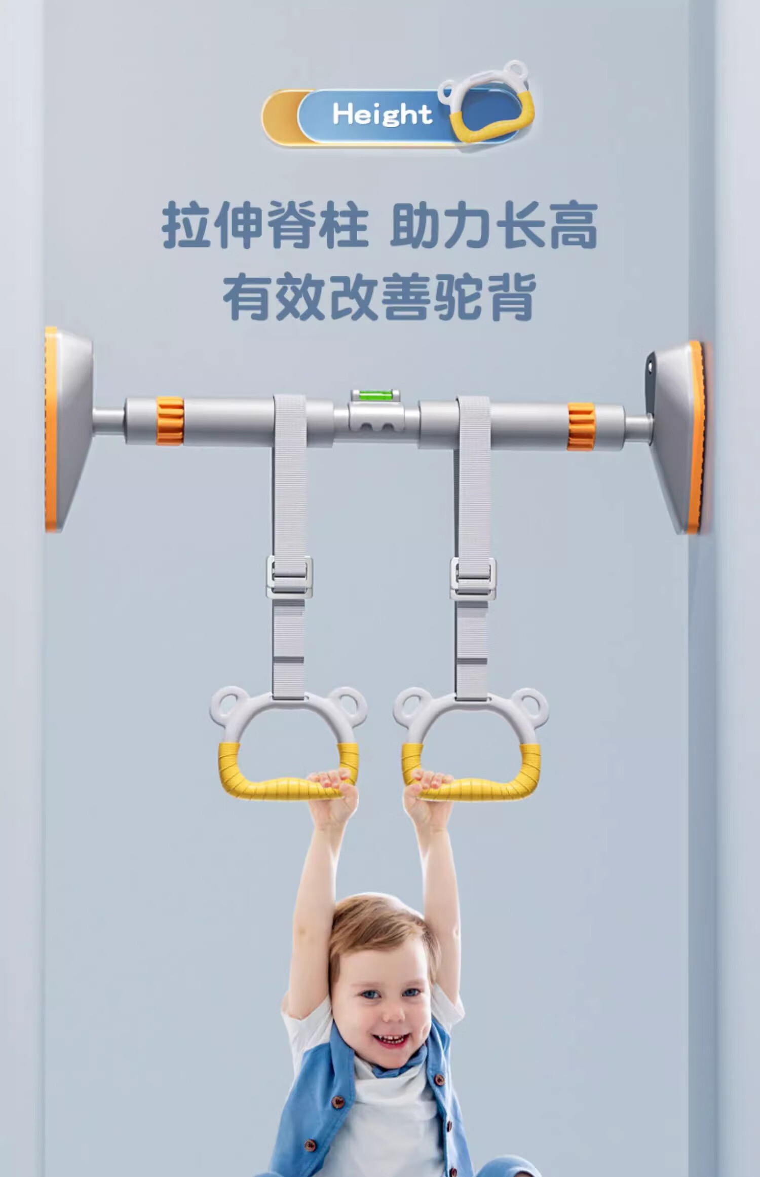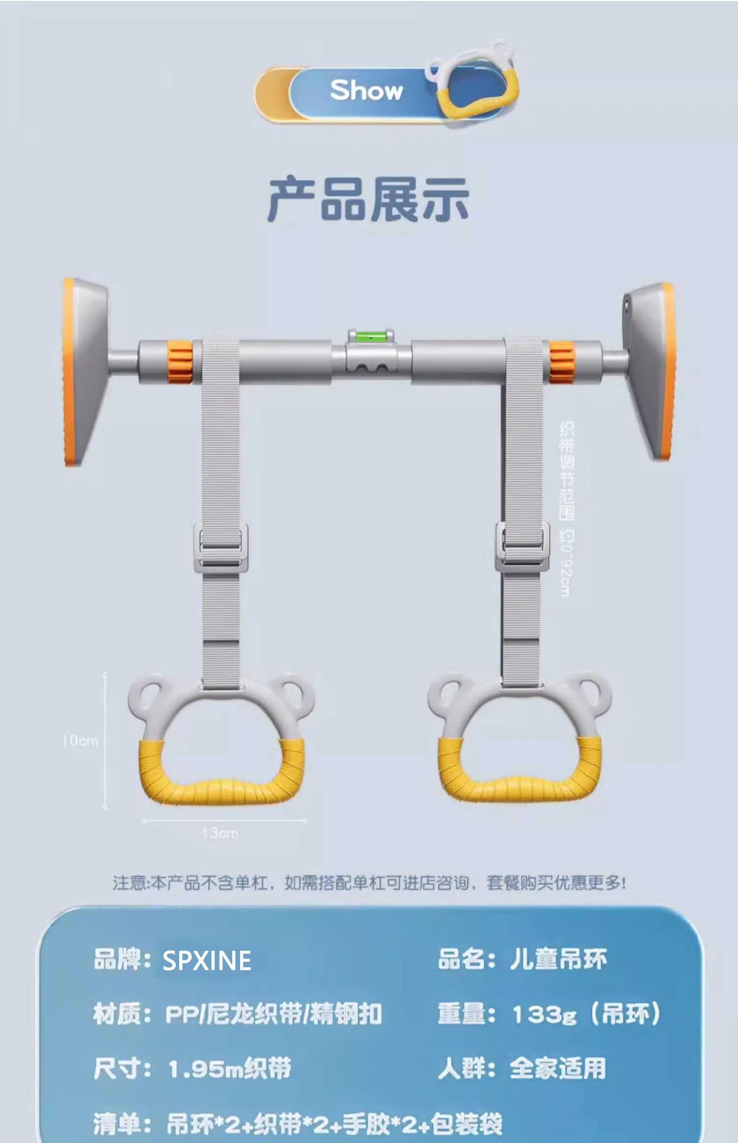 SPXINE children's hanging ring fitness home sports hand-pull ring indoor horizontal bar children's pull-up stretch increase adjustable children's hanging ring * 2 ribbon 0-1m/bearing 800 pounds