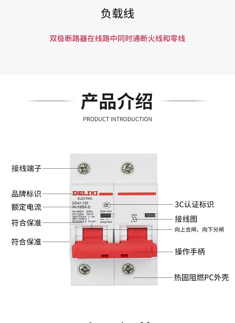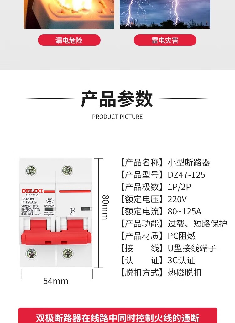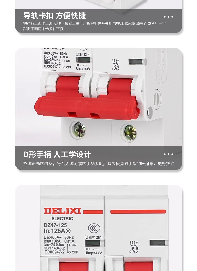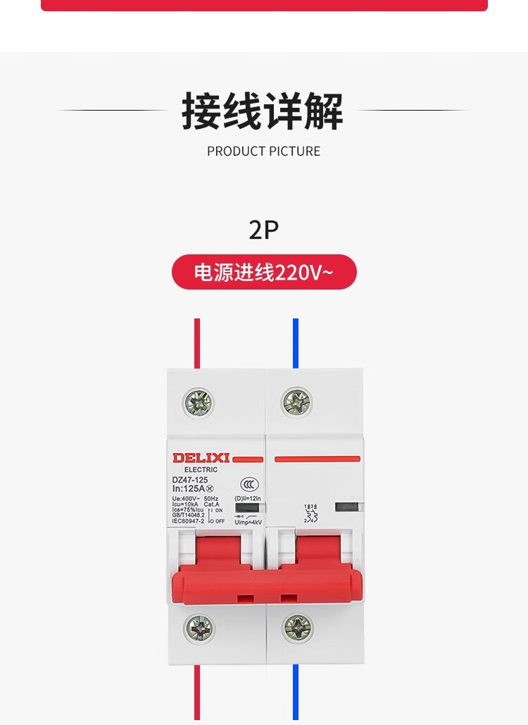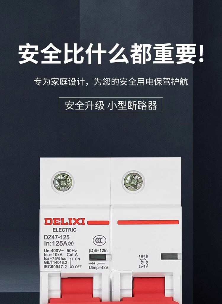Delixi air switch D type high current dz47 household 2P high power switch 100a circuit breaker 220 100A 2P