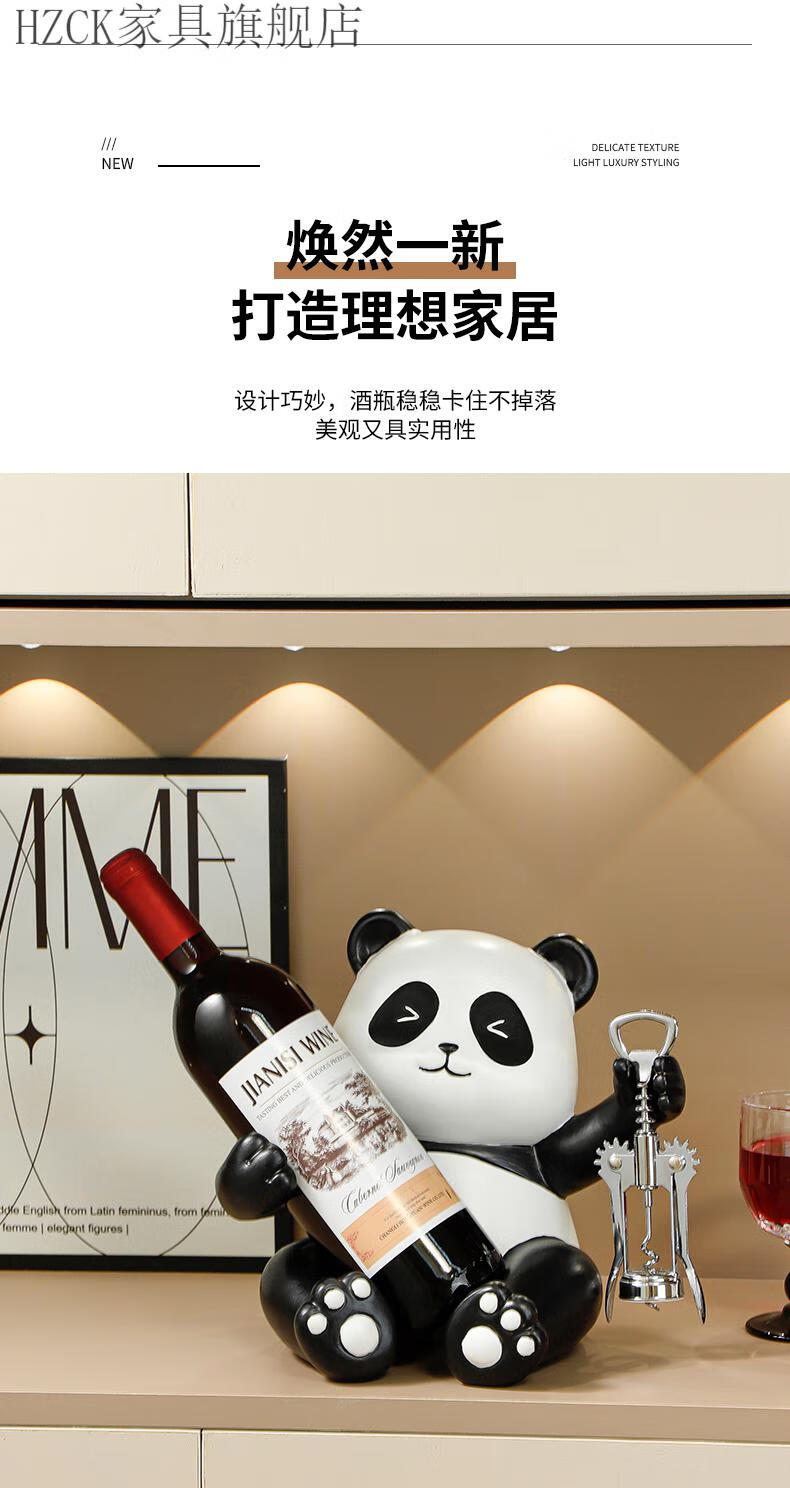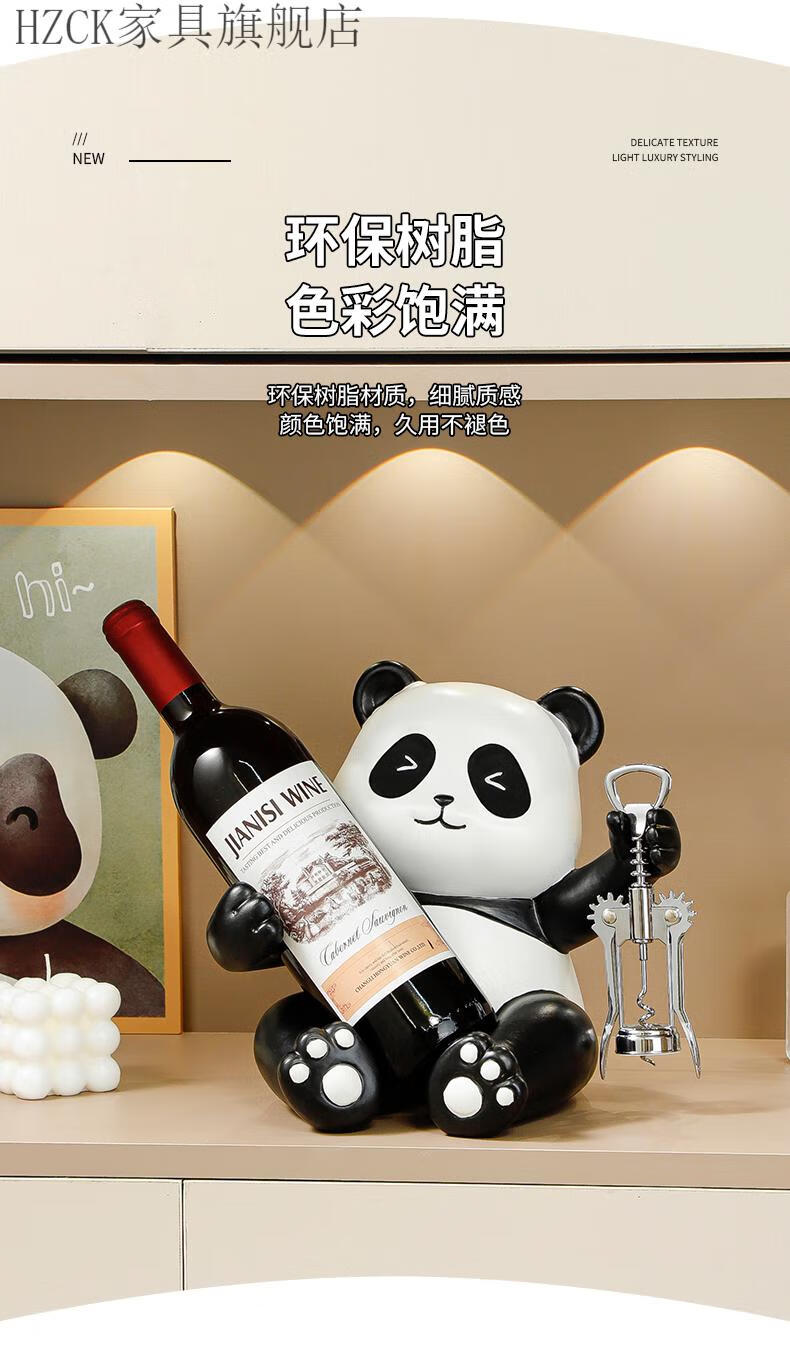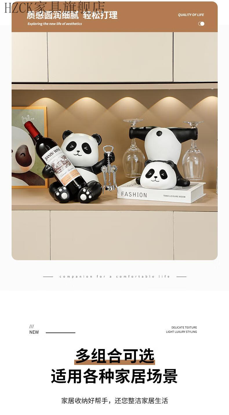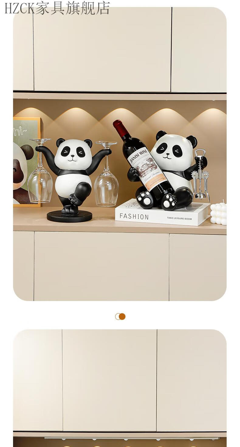 HZCK red wine rack ornaments Panda red wine rack ornaments wine cabinet combination light luxury living room sideboard bookshelf decorative wine cup welfare impulse model Panda red wine rack (open bottle