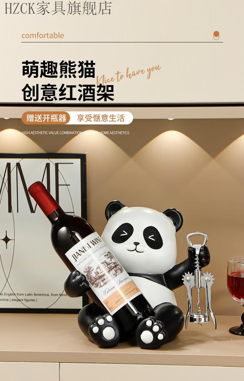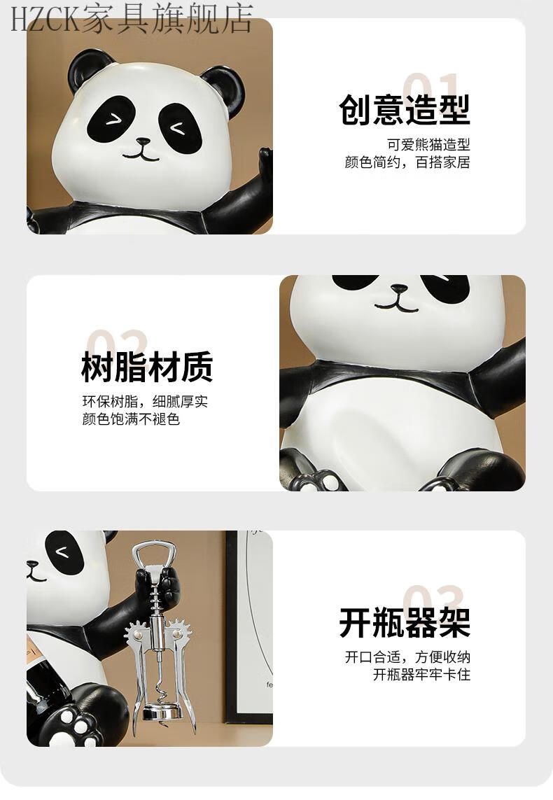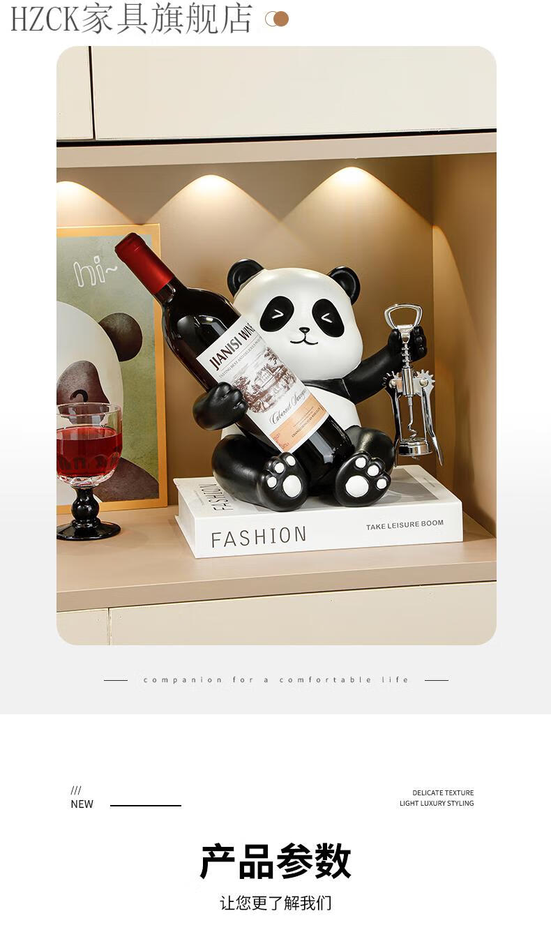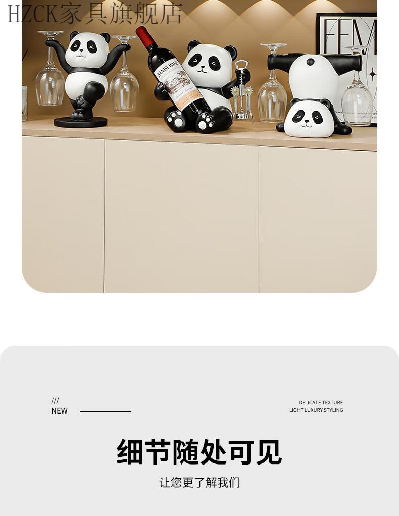 HZCK red wine rack ornaments Panda red wine rack ornaments wine cabinet combination light luxury living room sideboard bookshelf decorative wine cup welfare impulse model Panda red wine rack (open bottle