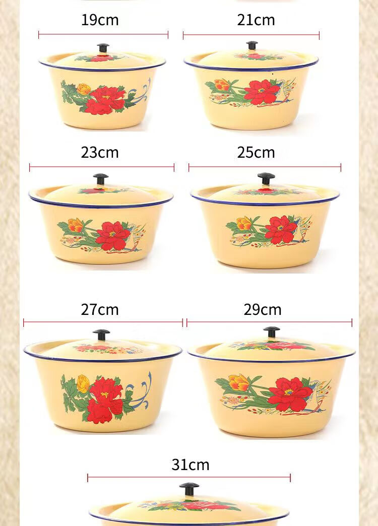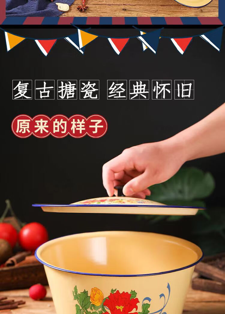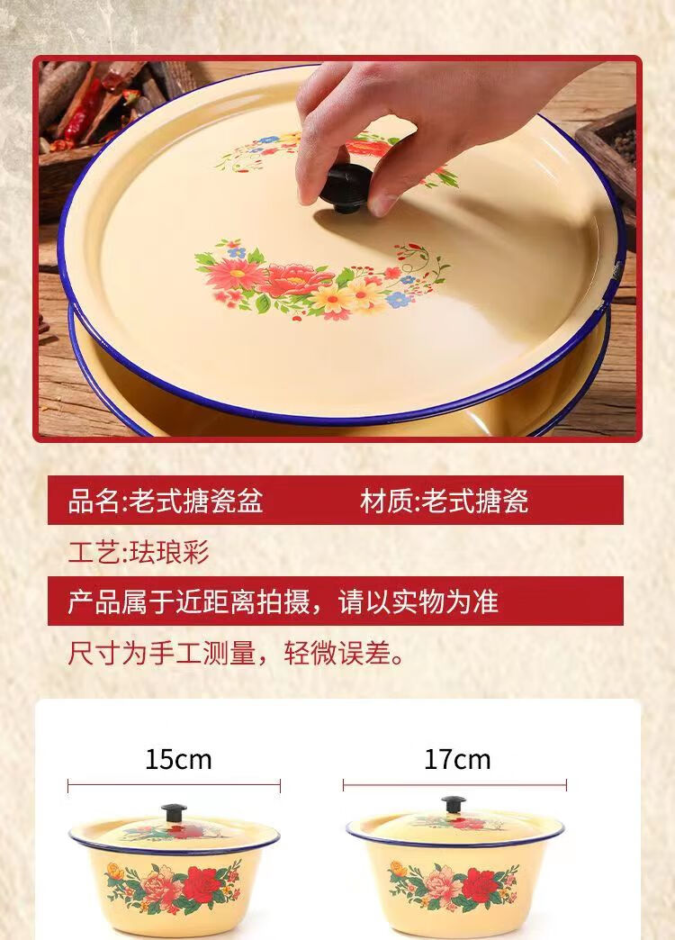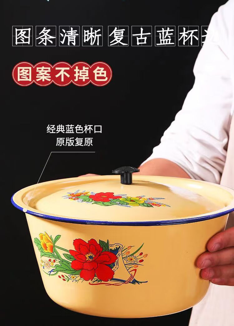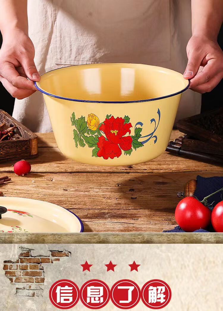 Hao Fanjie old-fashioned enamel basin with lid lard jar enamel pot retro lard basin enamel jar soup basin food grade thickened porcelain basin yellow enamel lard jar-22cm