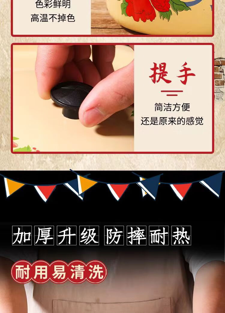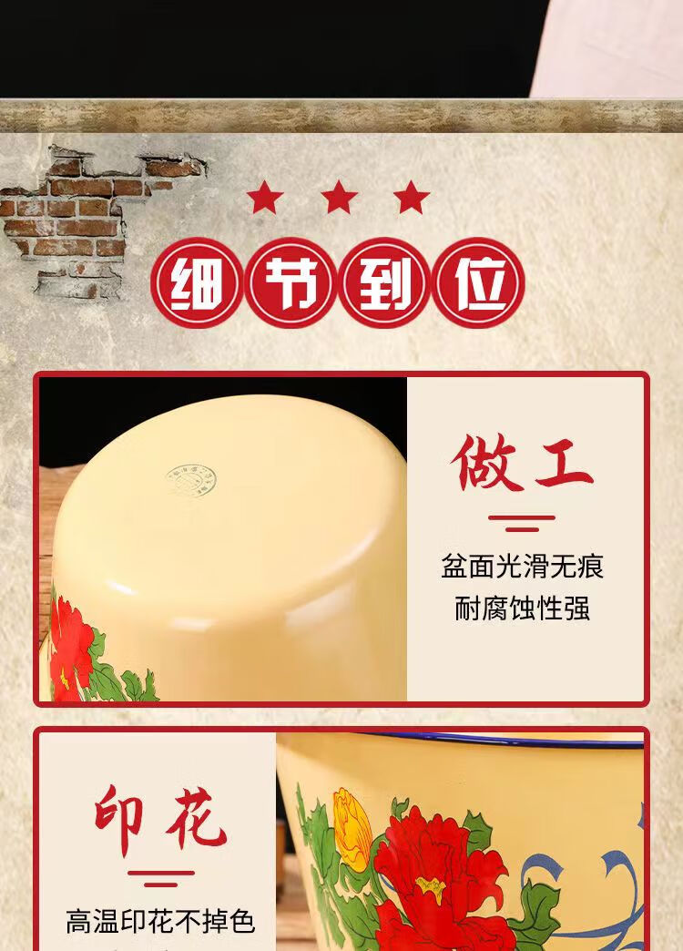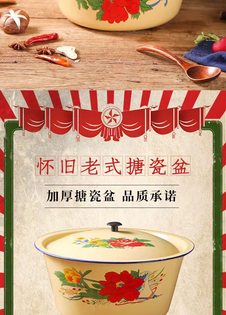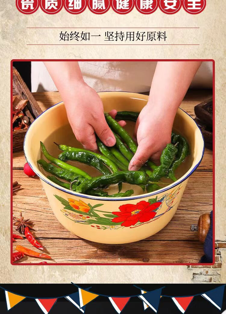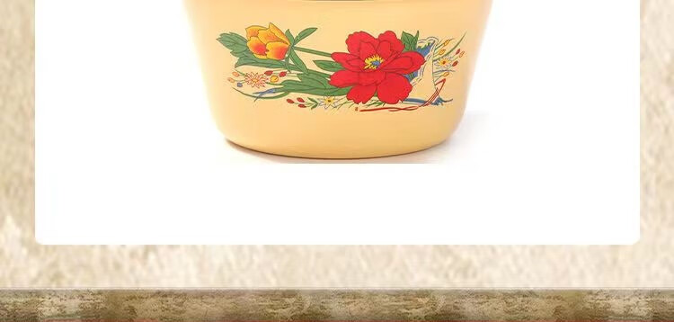 Hao Fanjie old-fashioned enamel basin with lid lard jar enamel pot retro lard basin enamel jar soup basin food grade thickened porcelain basin yellow enamel lard jar-22cm