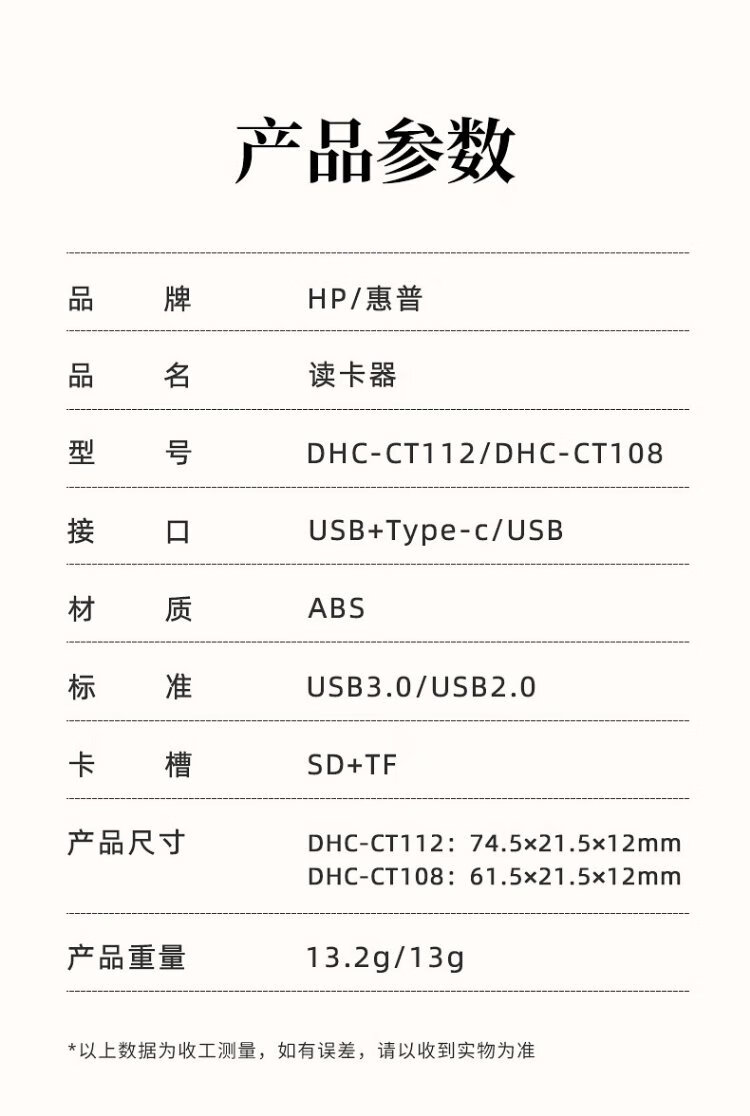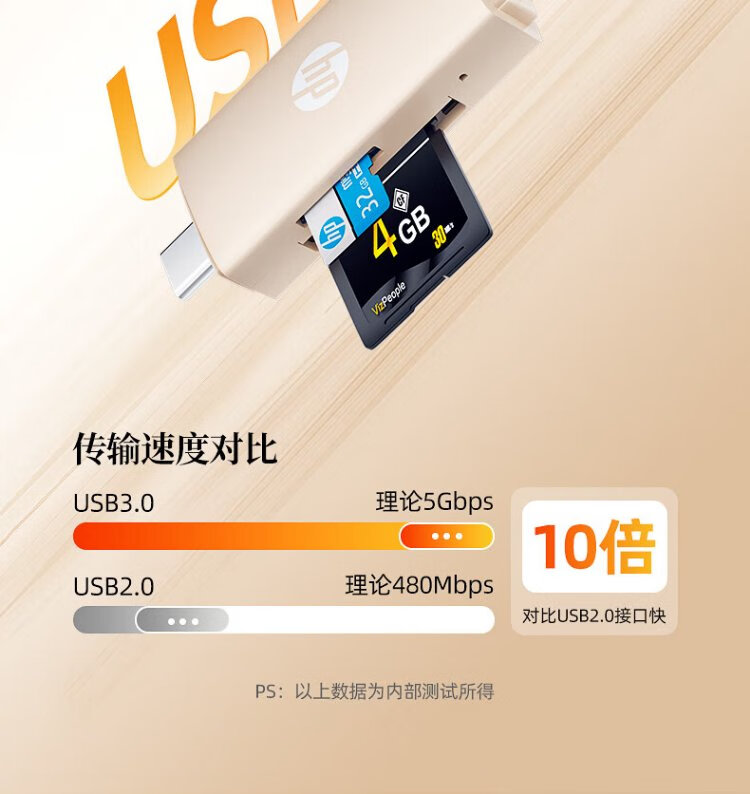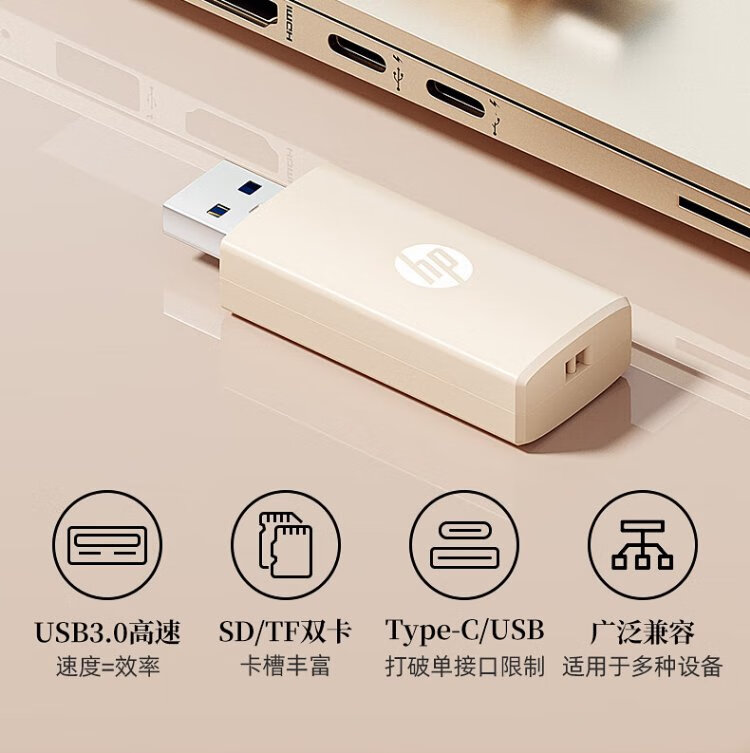 HP card reader sd card all-in-one high-speed SD/TF memory card multi-function type-c USB dual interface mini mobile phone computer SLR camera memory card reader black USB3.0 single reader