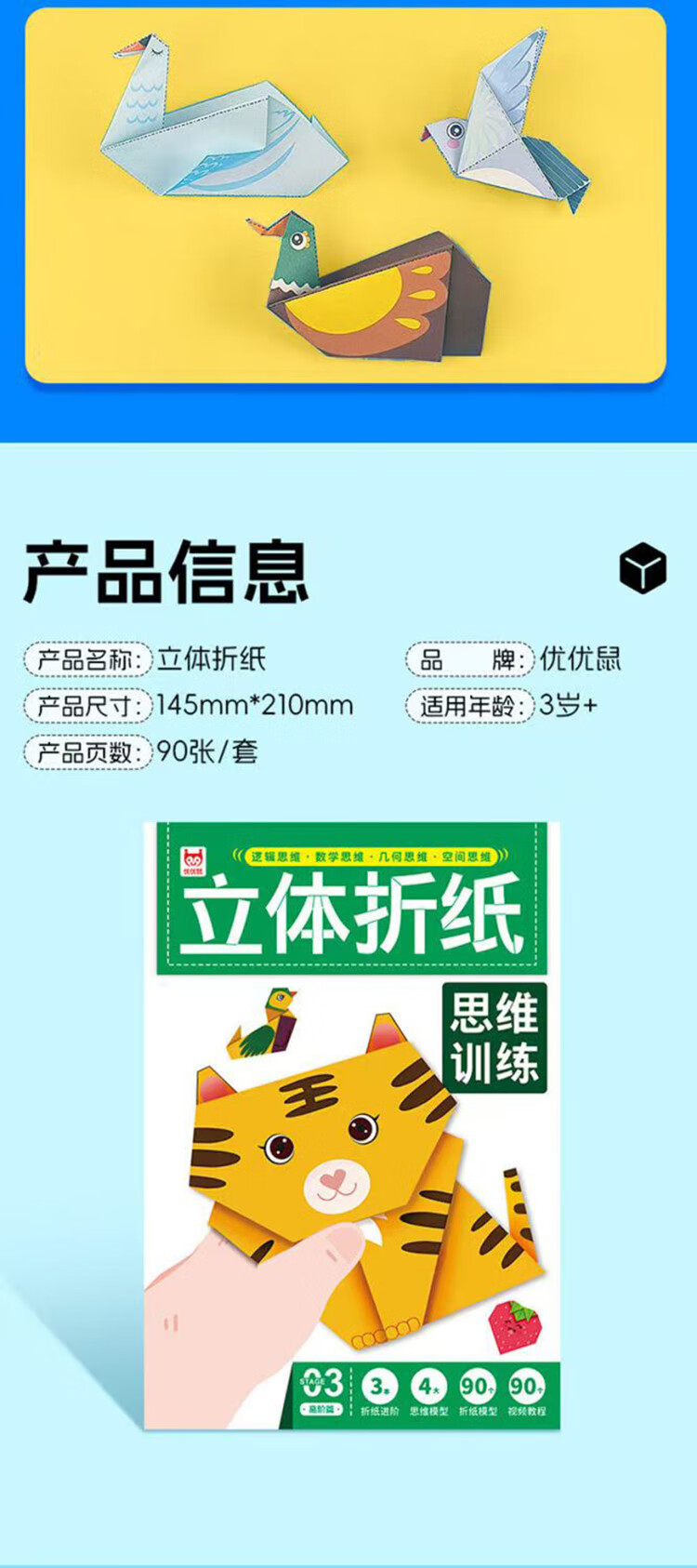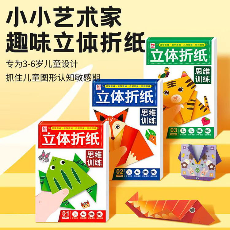 Three volumes of three-dimensional origami thinking training. Fun three-dimensional origami for young artists. Geometric and spatial logic training for children.