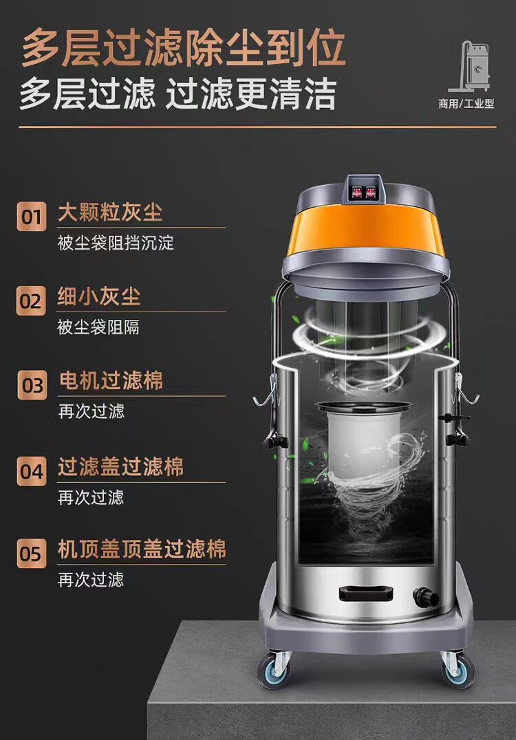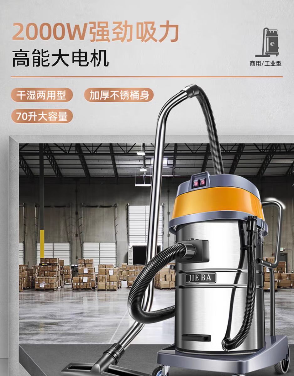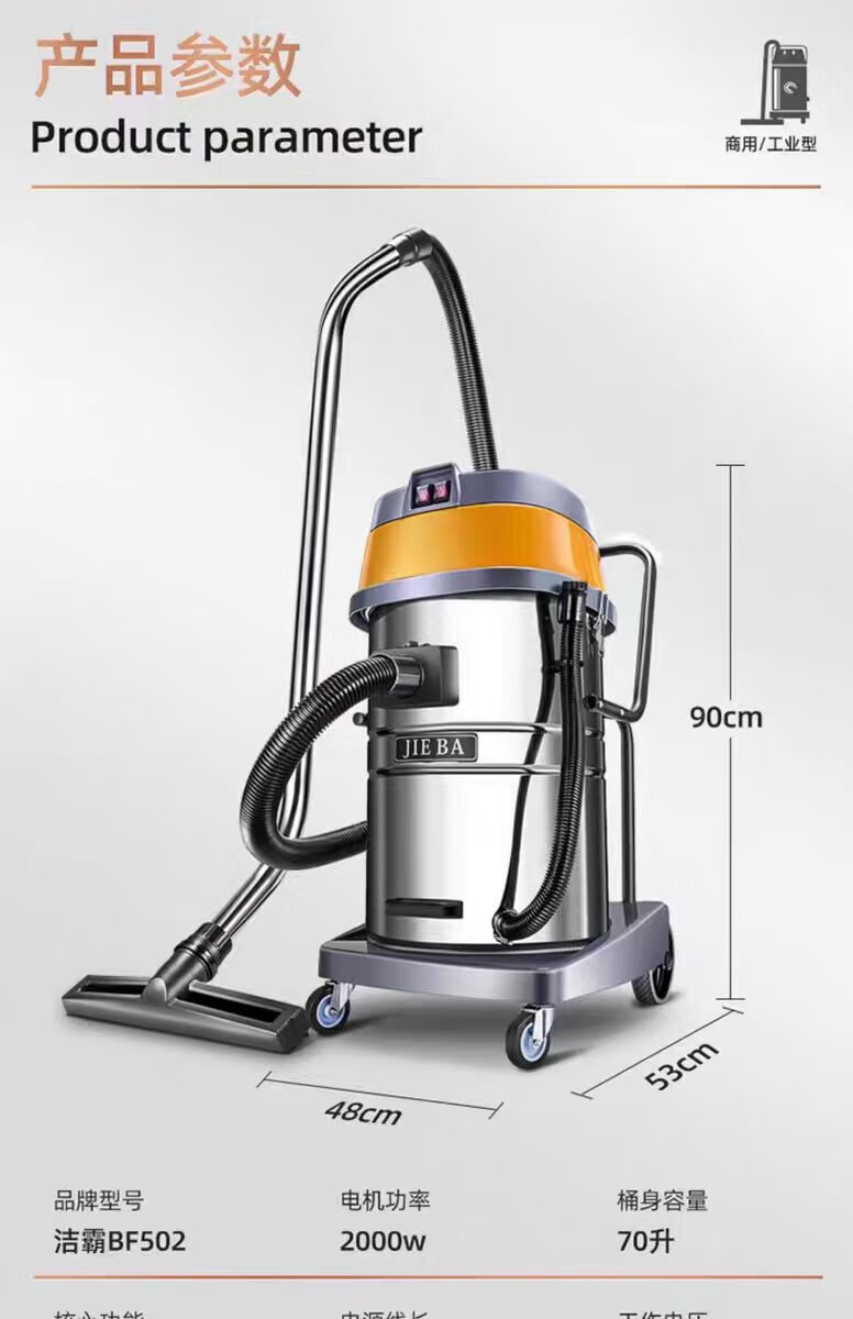 Jieba vacuum cleaner 2000W high power commercial carpet hotel powerful vacuum water suction machine household industrial high suction decoration beauty sewing car land reclamation 70L car commercial version 2.5 meters thick hose