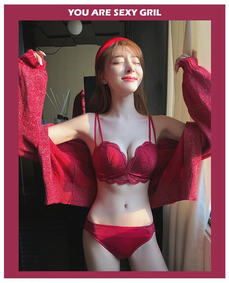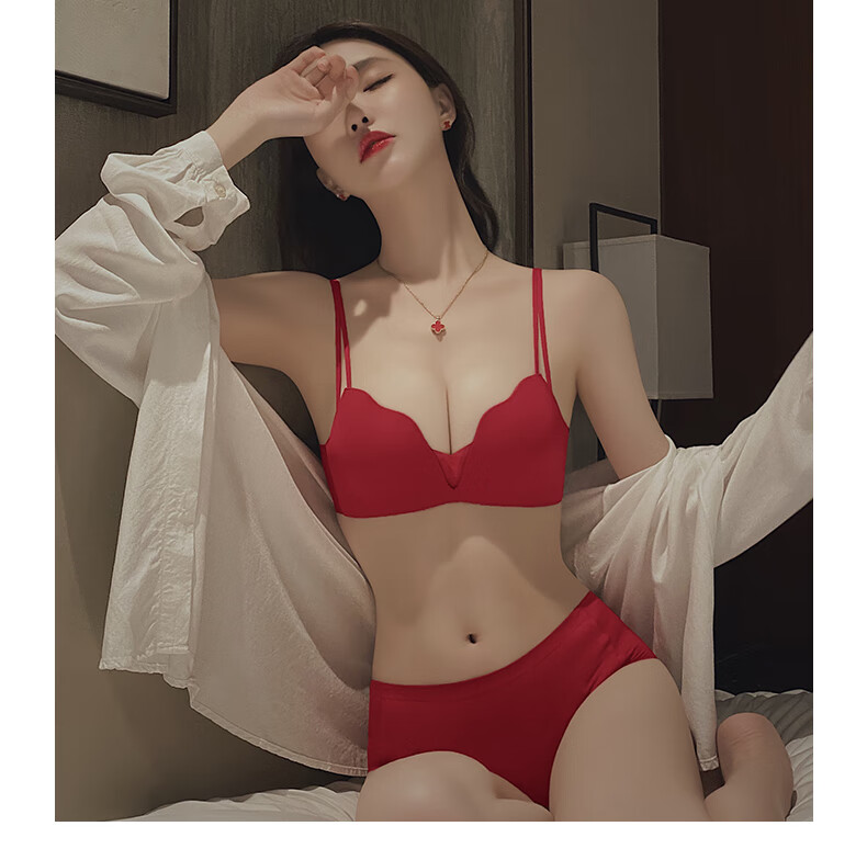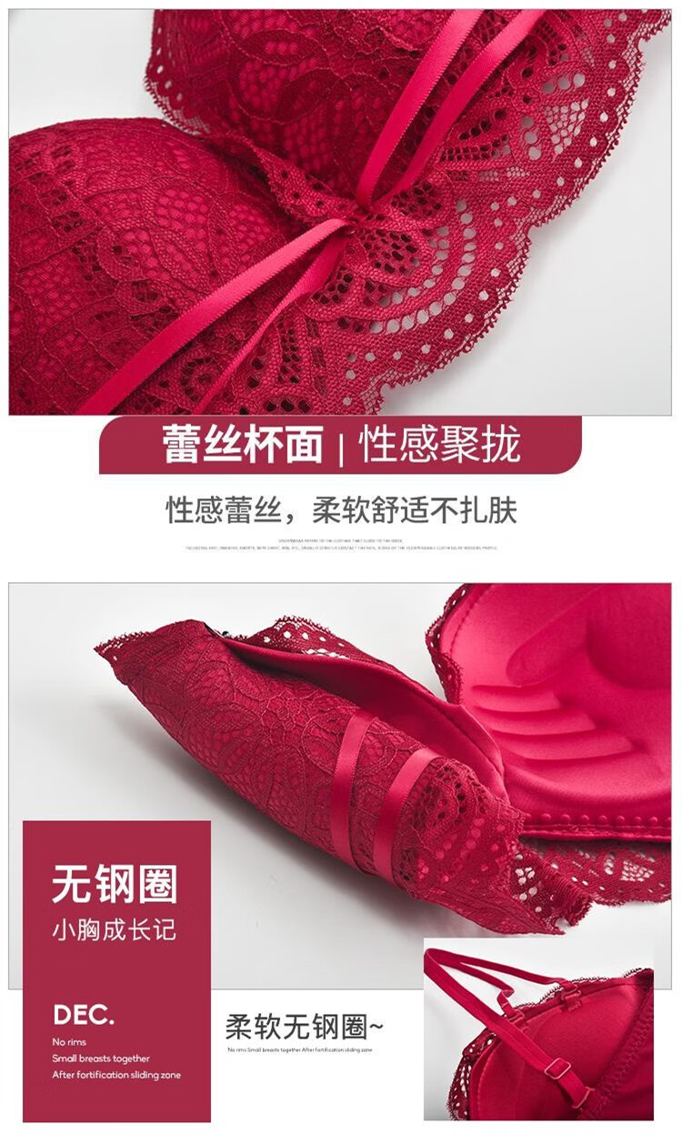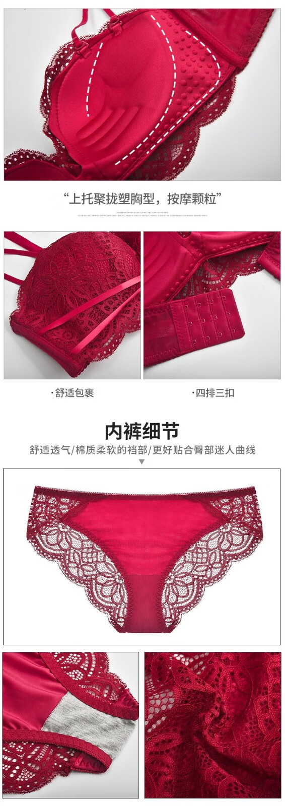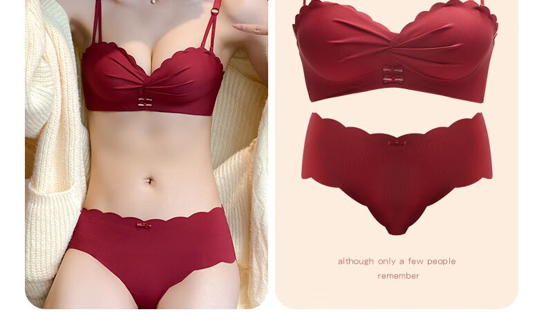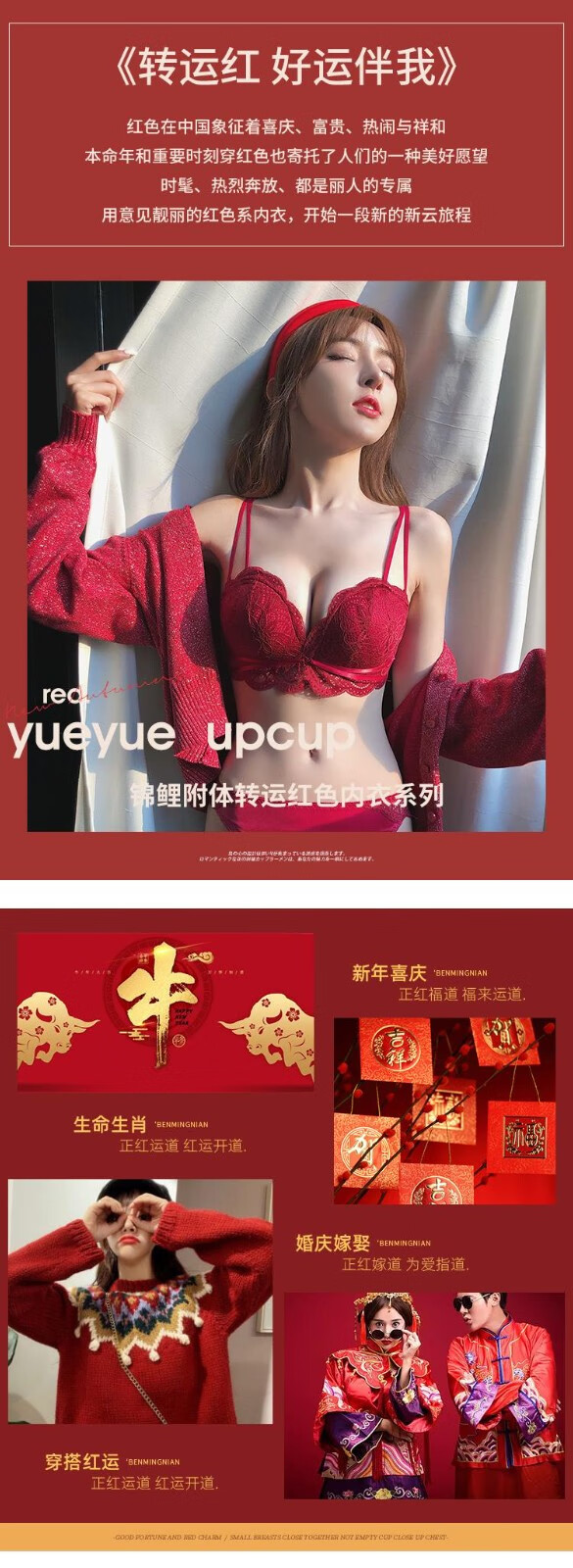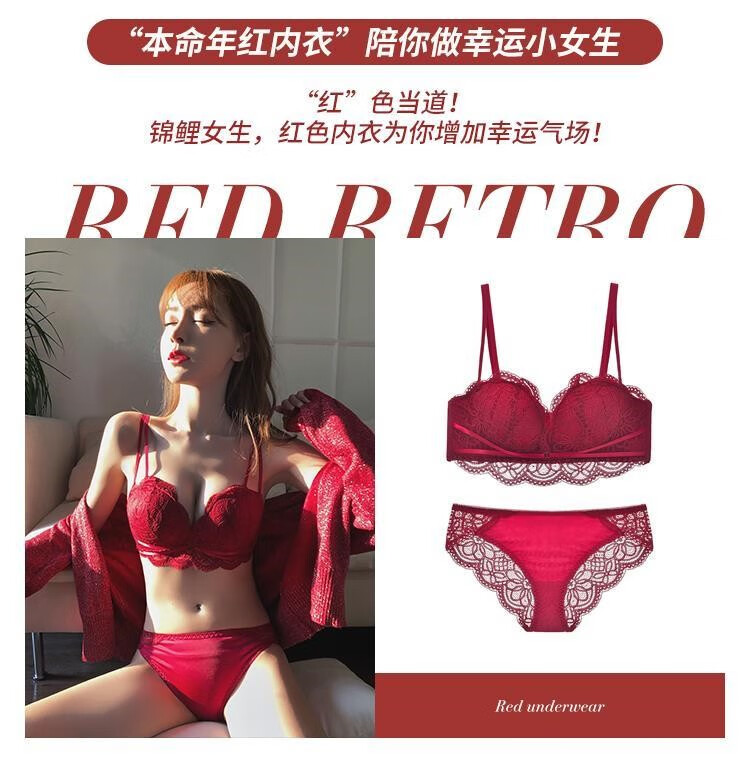 ERTP animal year red underwear for women with flat chest and small breasts, push-up support for secondary breasts, no wire rims, bridal wedding bra set, burgundy 2 (set) 75B =34B