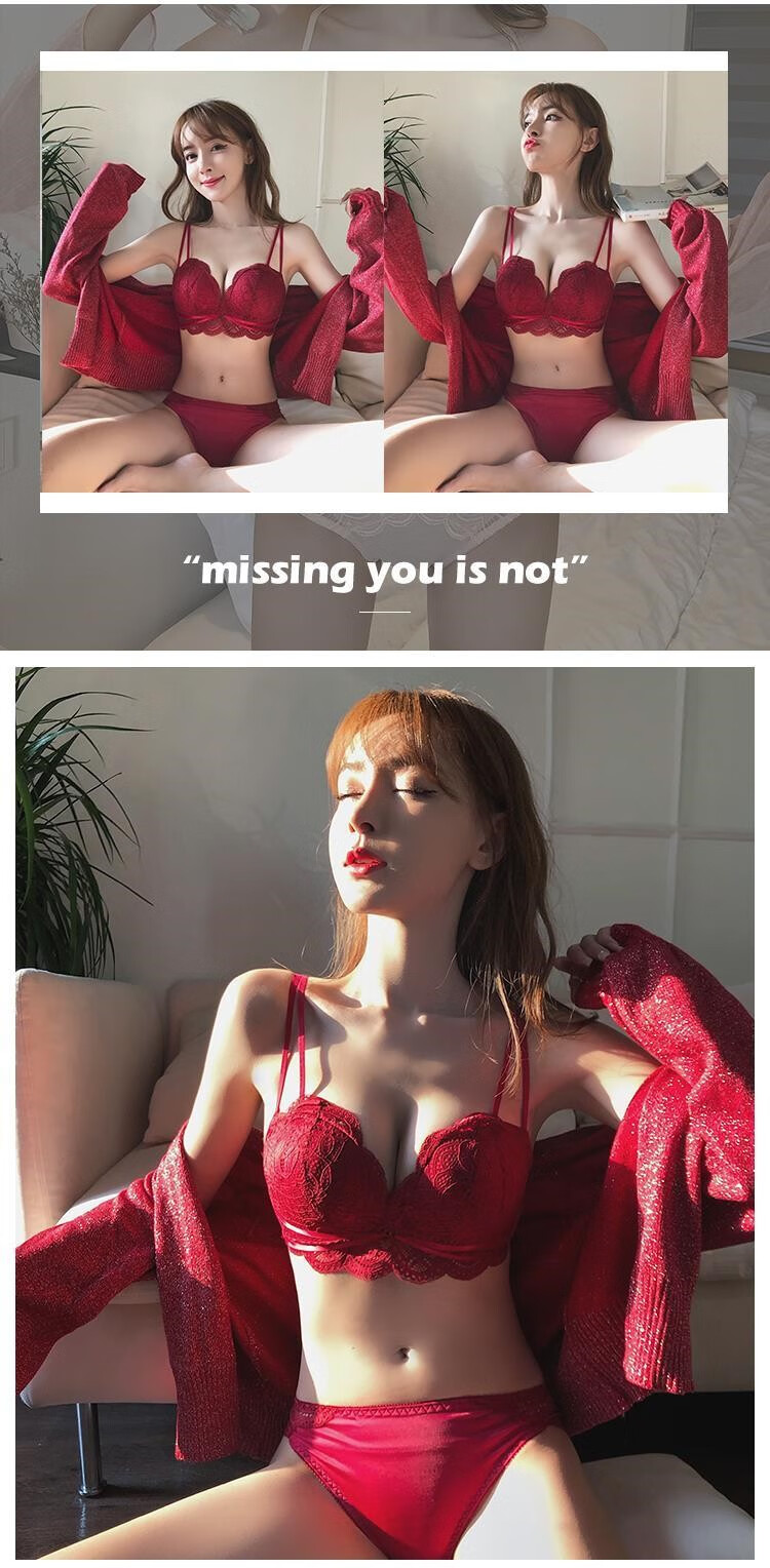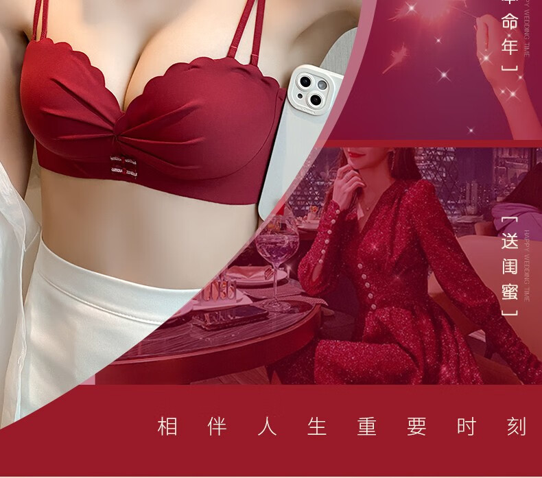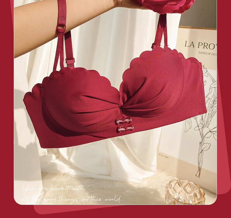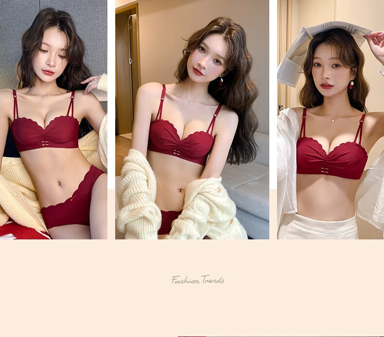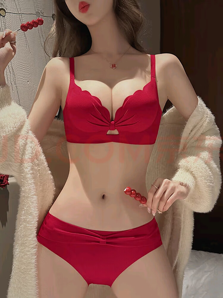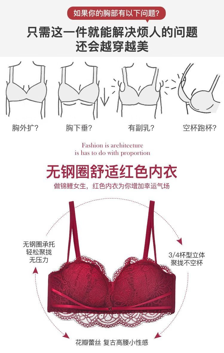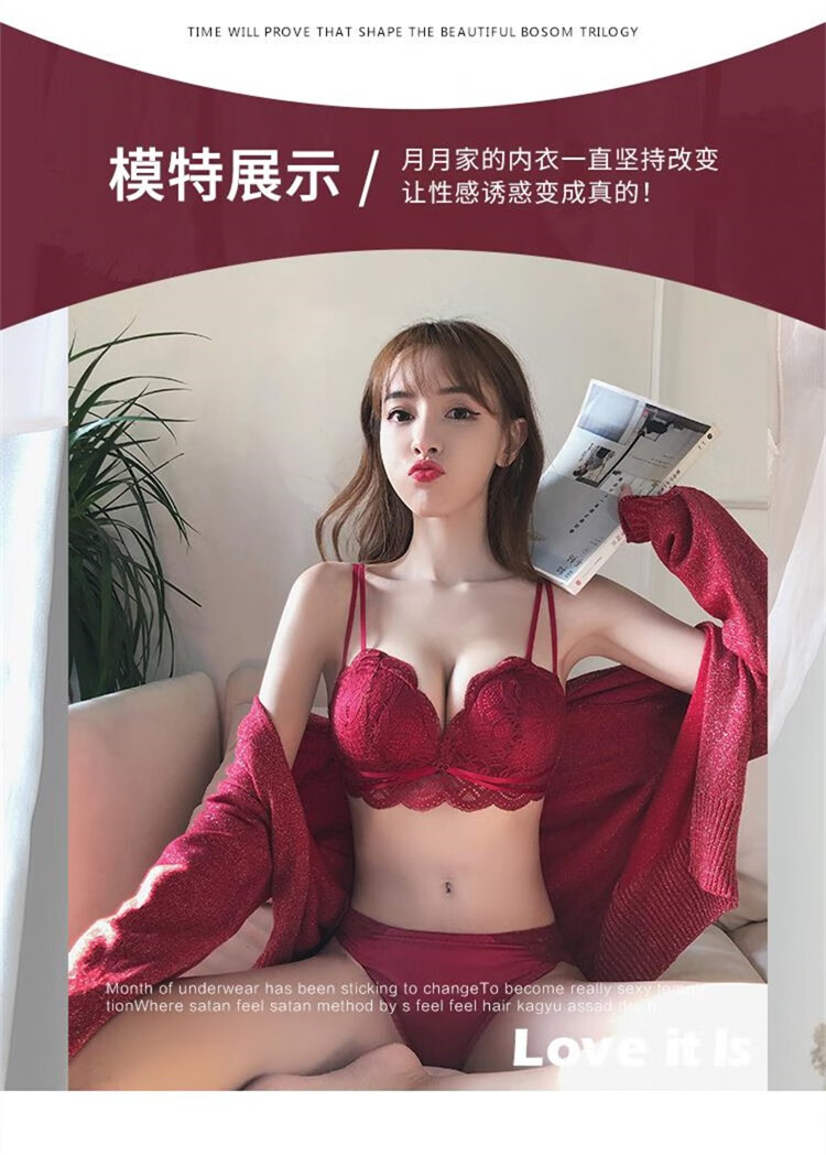 ERTP animal year red underwear for women with flat chest and small breasts, push-up support for secondary breasts, no wire rims, bridal wedding bra set, burgundy 2 (set) 75B =34B