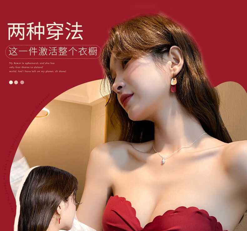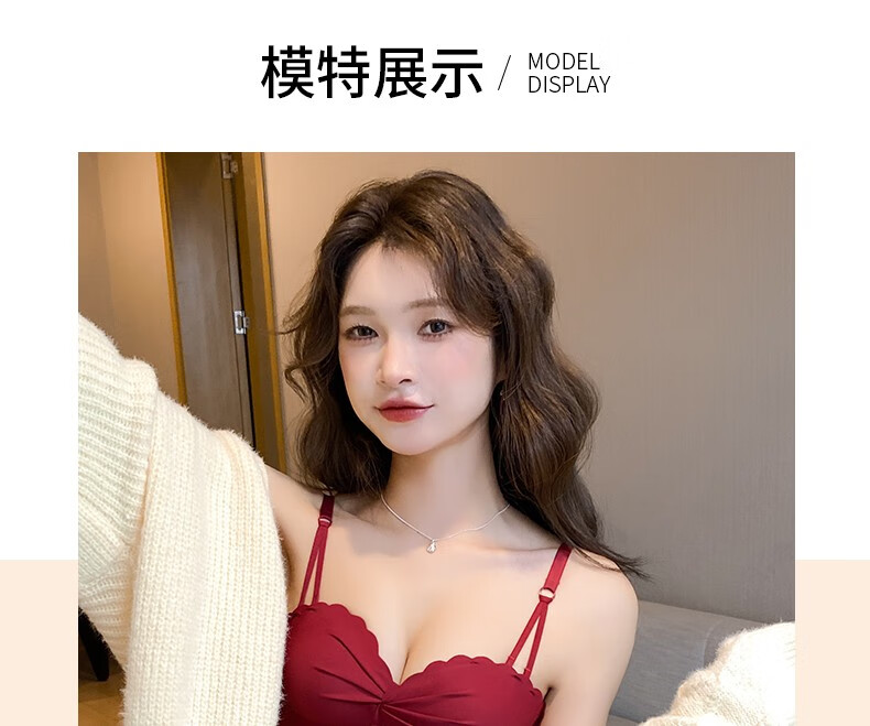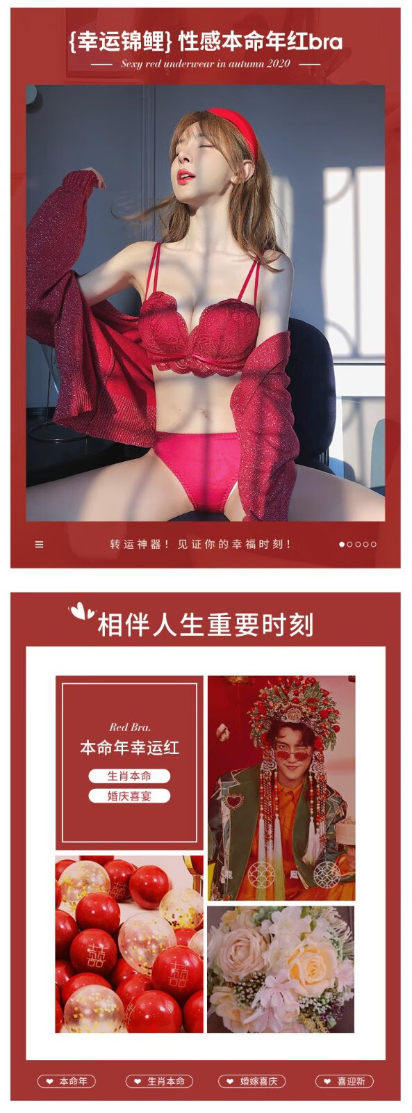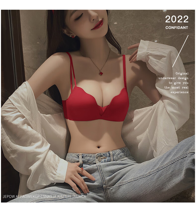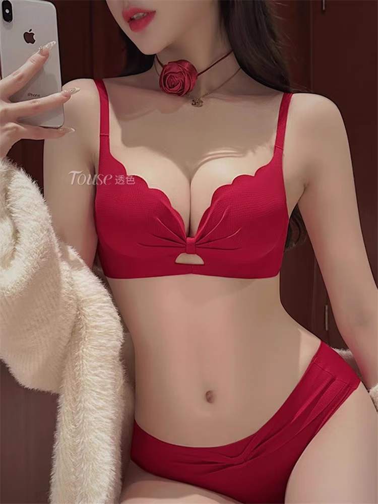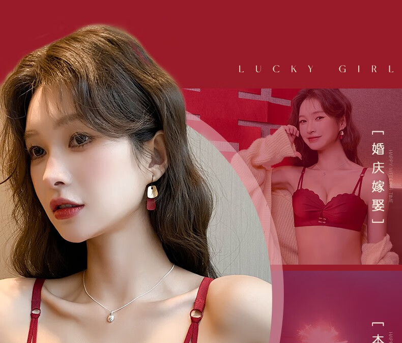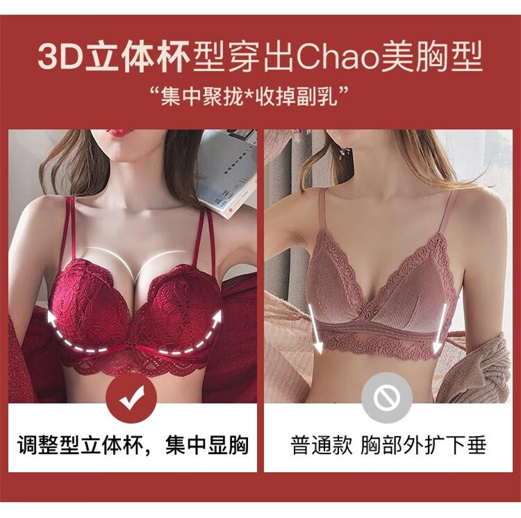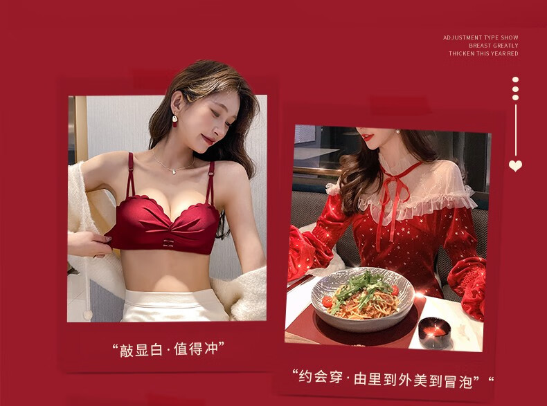 ERTP animal year red underwear for women with flat chest and small breasts, push-up support for secondary breasts, no wire rims, bridal wedding bra set, burgundy 2 (set) 75B =34B
