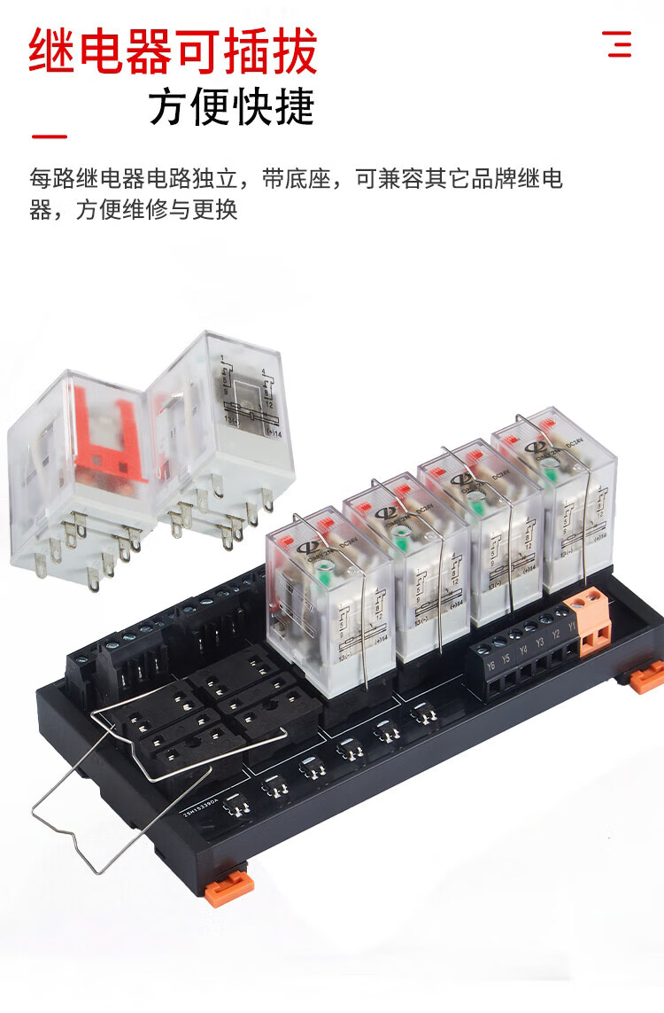 Intermediate relay module 220V AC DC 24V small relay HH52P/54P 8-pin MY2N 10-way two open and two closed 10A small 8-pin QM 24V 24V