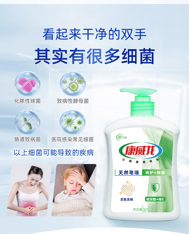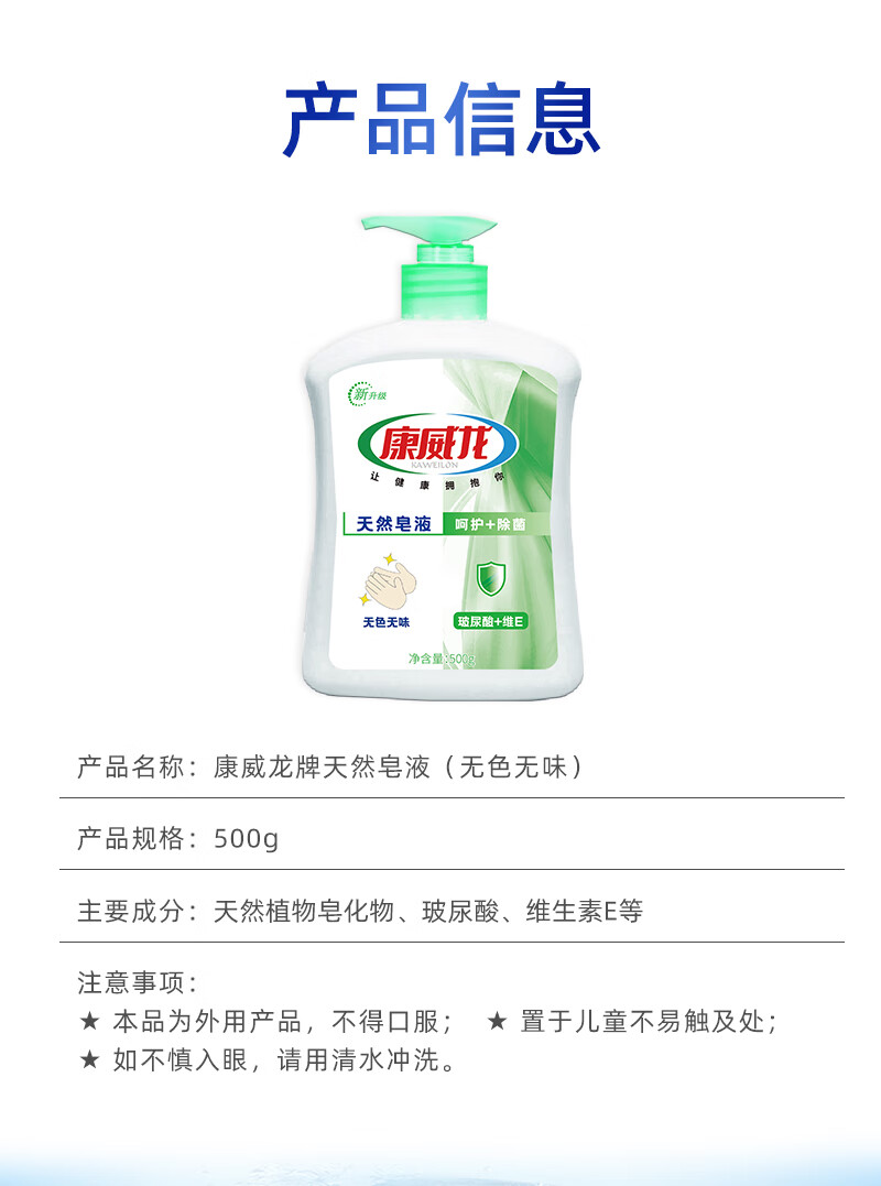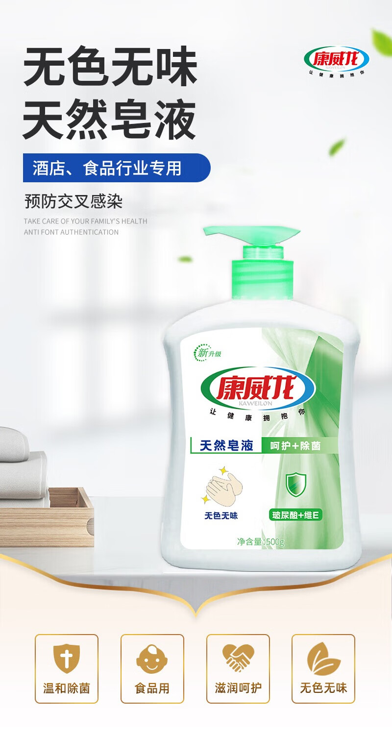 Kangweilong natural soap liquid hand sanitizer colorless and odorless 500g food factory hotel special 500g colorless and odorless hand sanitizer gel