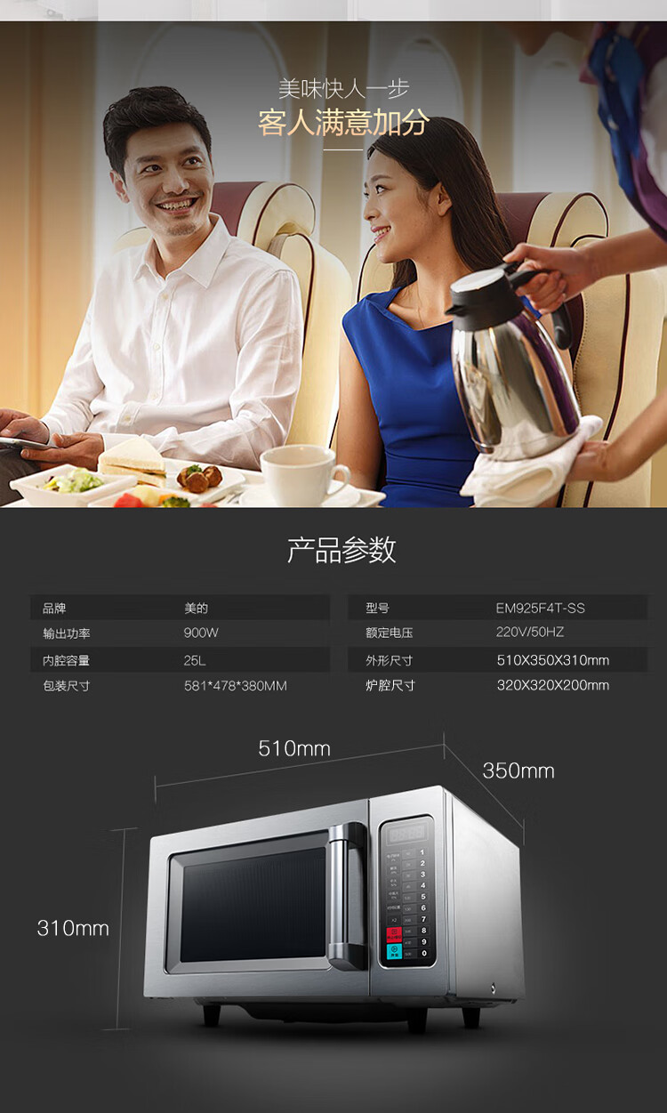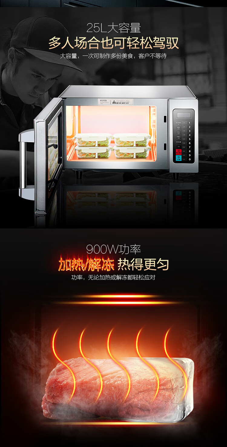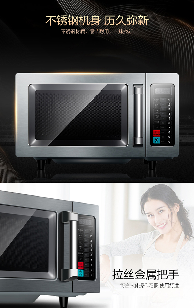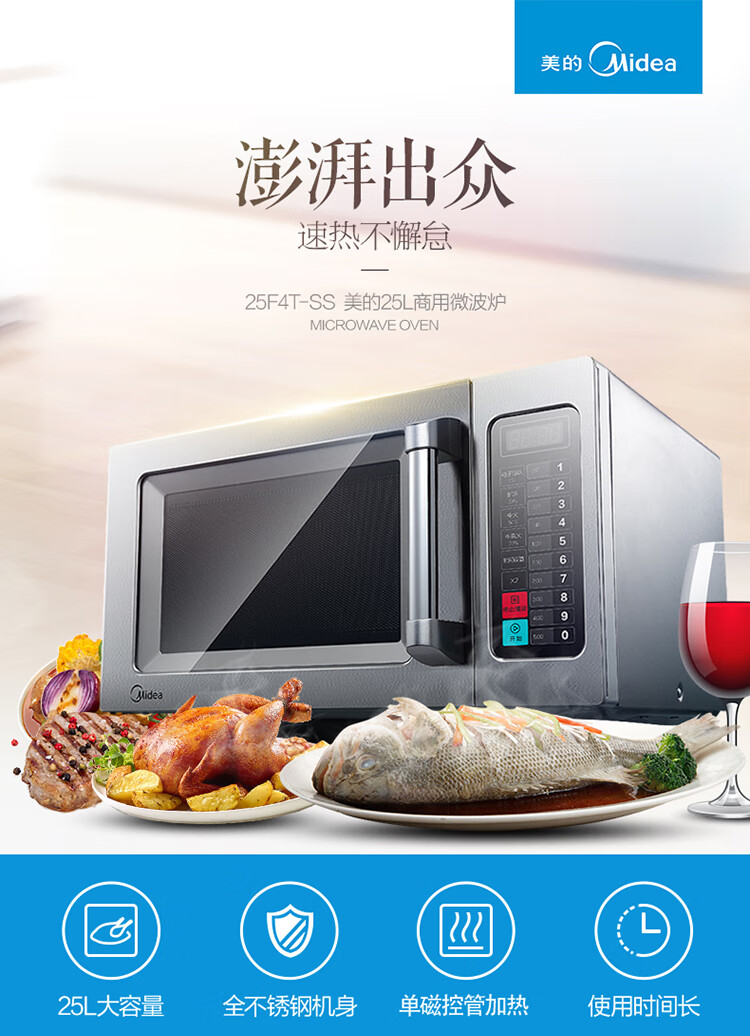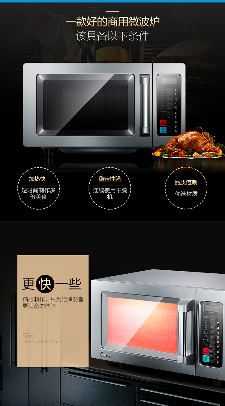 Midea Commercial Microwave Oven Extra Large Capacity High Power Hotel Convenience Store Thawing Popcorn Hotel EM925F4T-SS Quick Thawing Heating 17 Liters 2100W Power