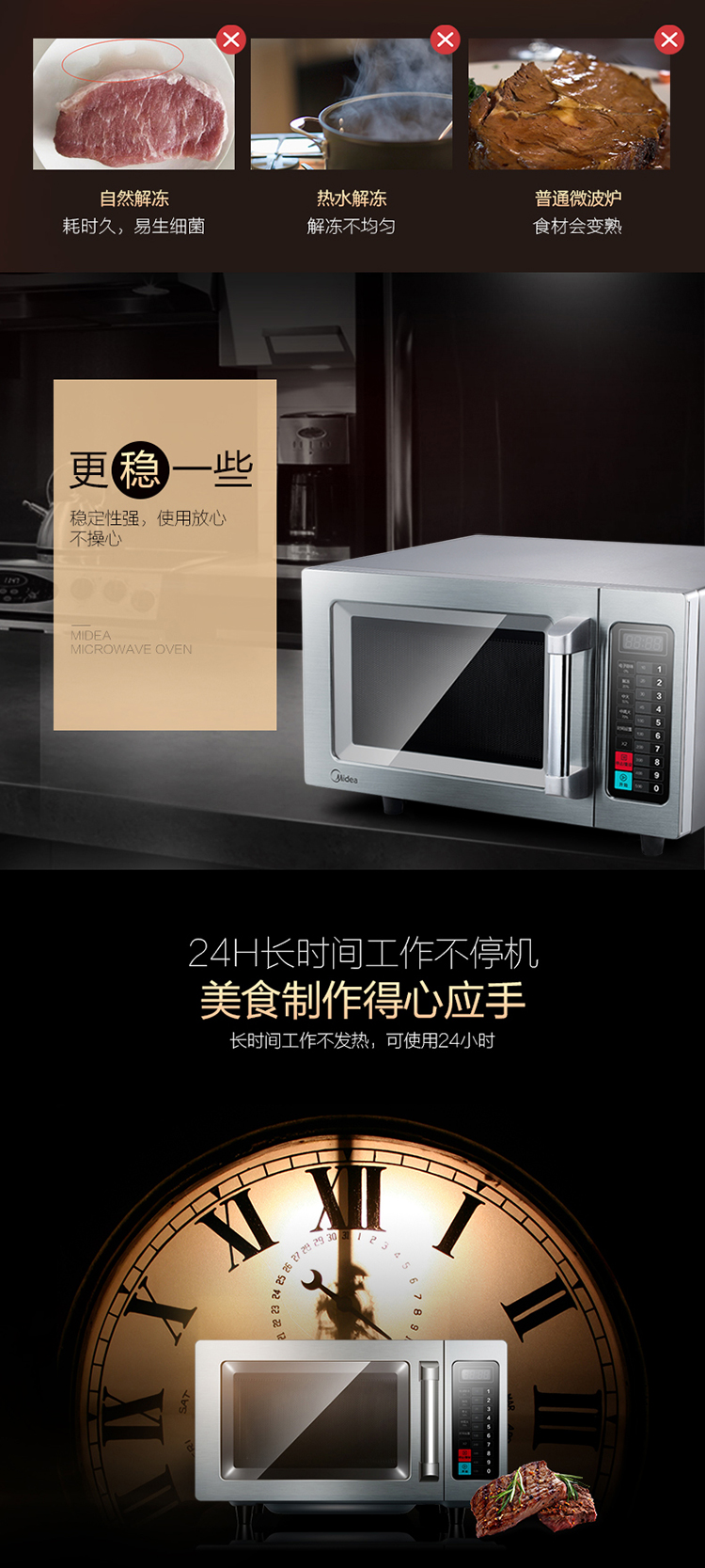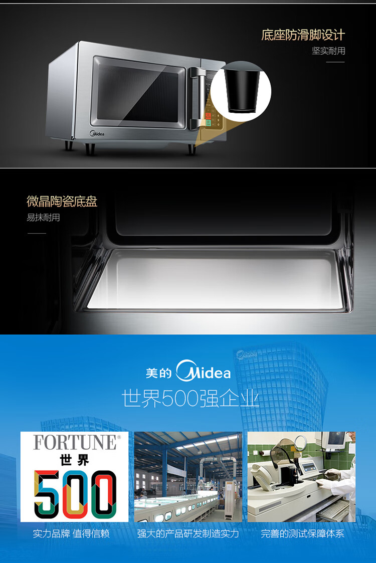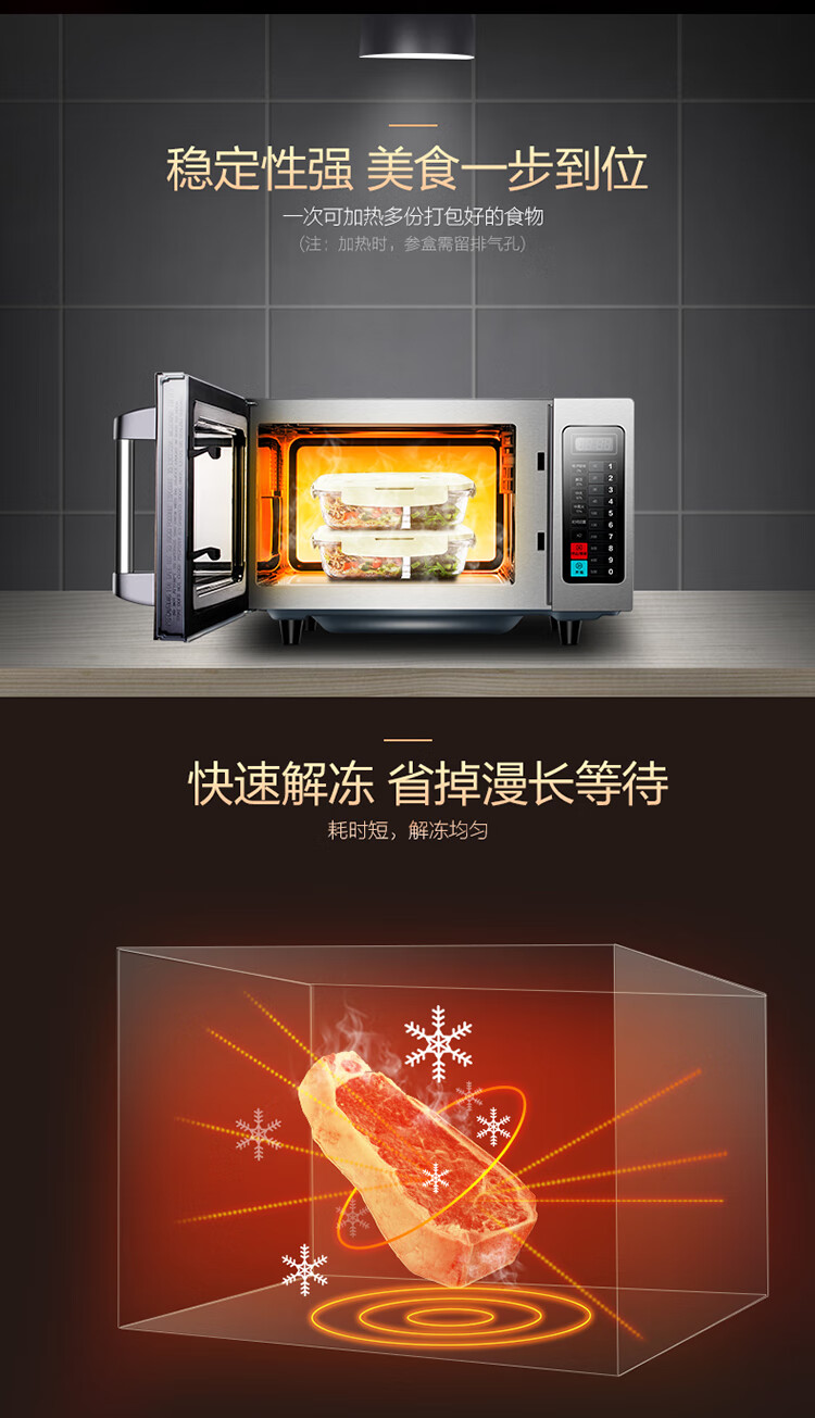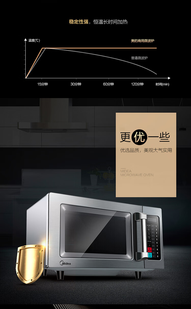 Midea Commercial Microwave Oven Extra Large Capacity High Power Hotel Convenience Store Thawing Popcorn Hotel EM925F4T-SS Quick Thawing Heating 17 Liters 2100W Power