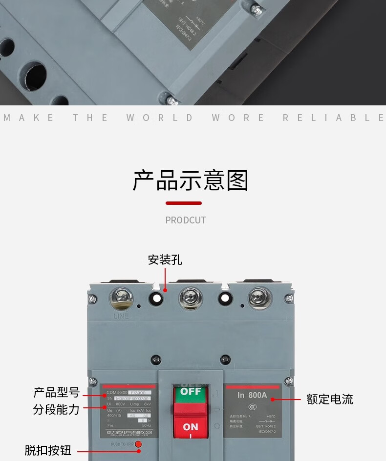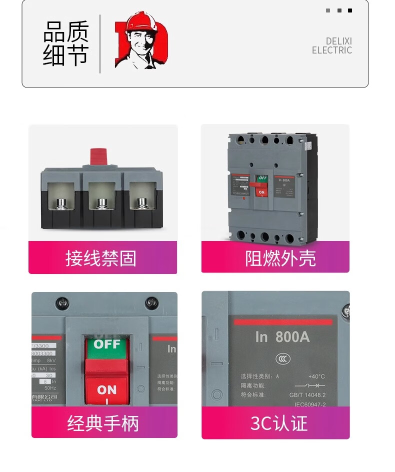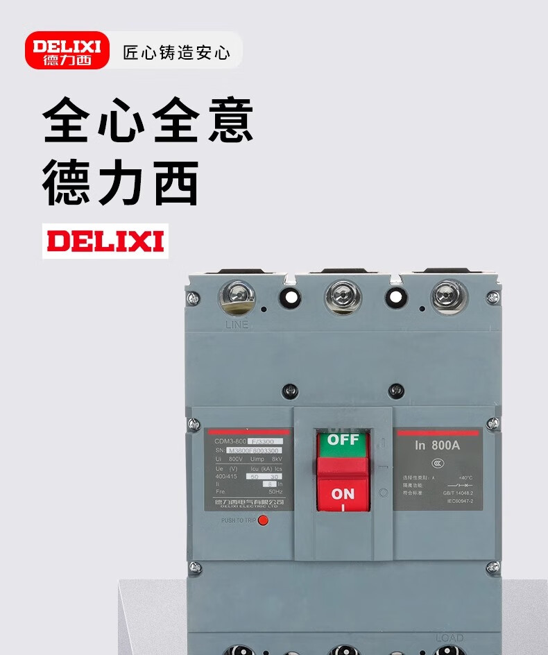 Delixi CDM3-800F plastic case circuit breaker 3300 air switch 800A630A700A3P main gate air switch CDM3-800F/3300 800A