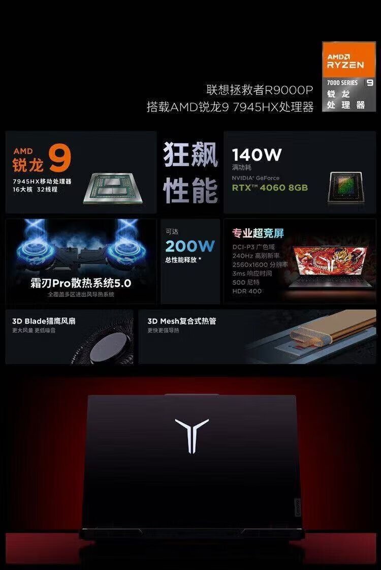 National joint guarantee 99% new Lenovo Savior 2024 R9000P/Y7000P/Y9000P second-hand laptop 24 models Y9000P I9-14900HX 4070 32G 1T solid state 99% new special quality machine
