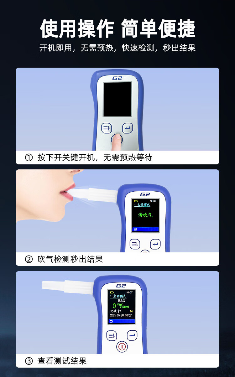 Jiu'an G2 air-blowing alcohol tester, household high-precision alcohol tester, portable car-mounted alcohol tester, G2 alcohol tester - free 10 mouthpieces + storage bag*1 electrochemical sensor
