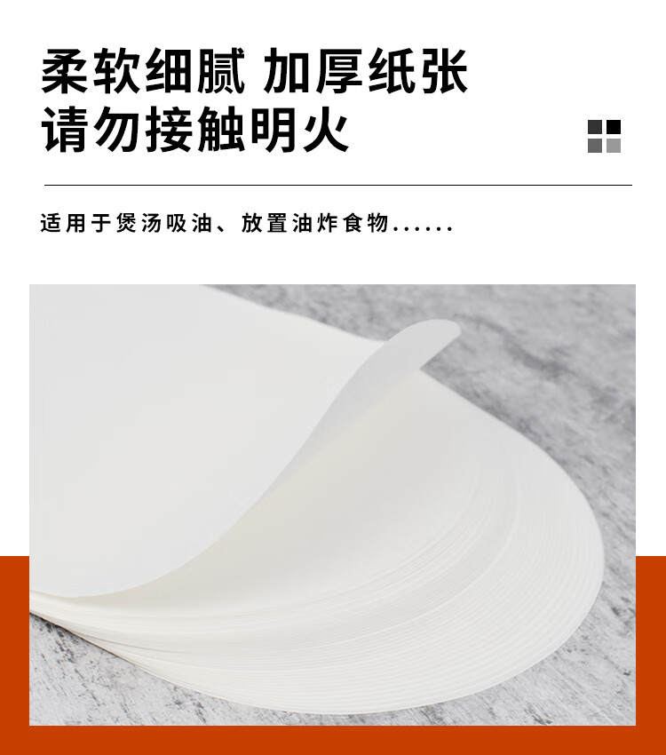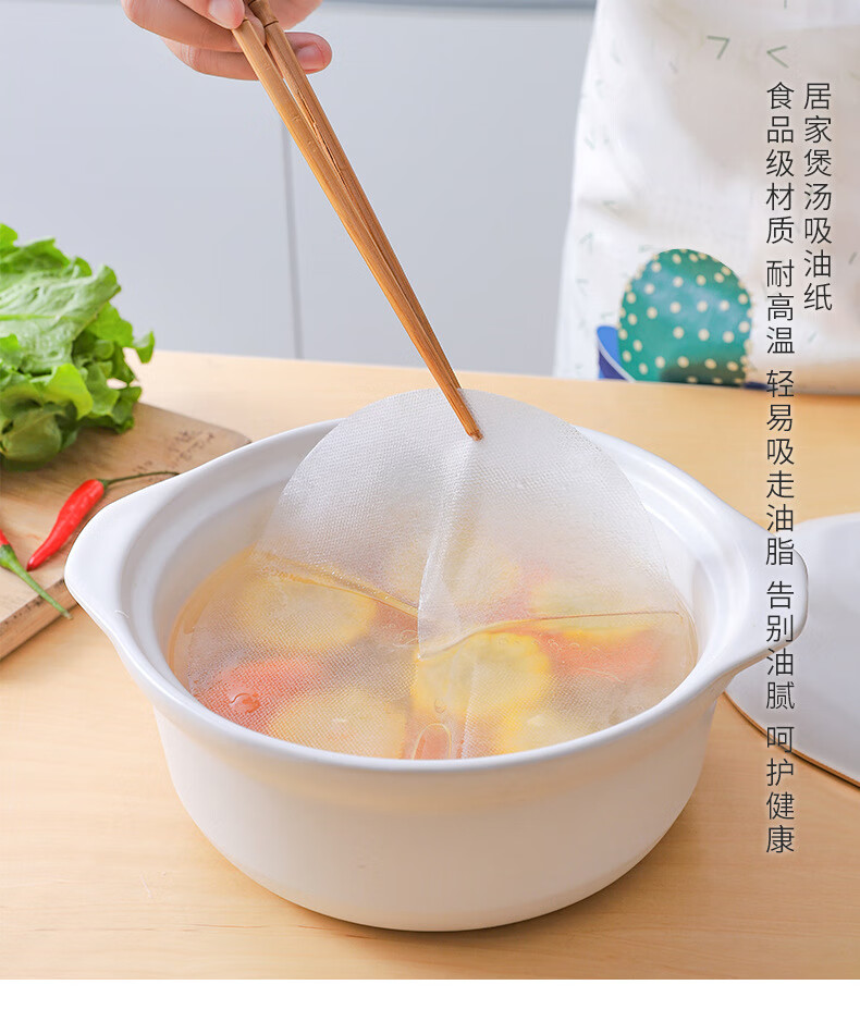 Japanese oil-absorbing paper food-specific kitchen cooking, stew, soup, and de-frying edible oil filter paper membrane food grade new oil-absorbing paper 50 pieces thickened 50% to absorb oil in one second