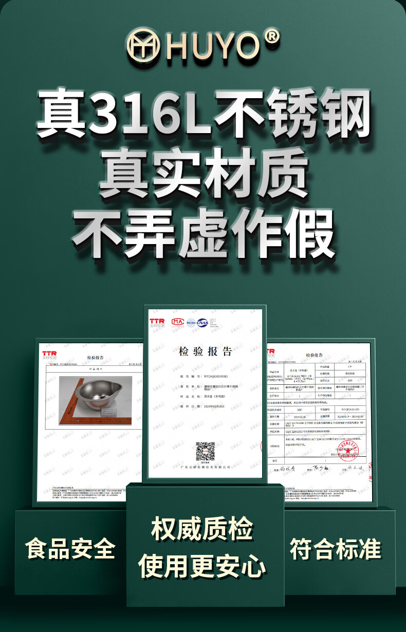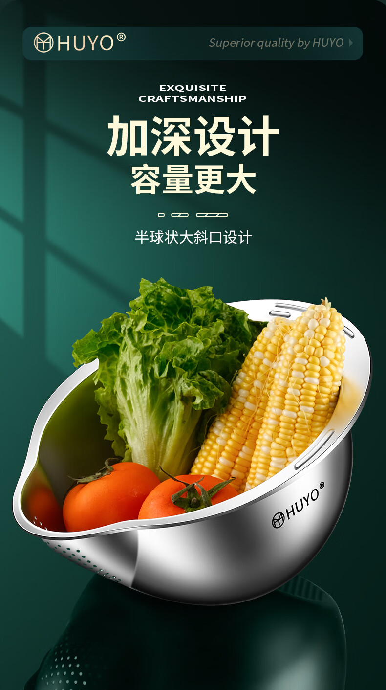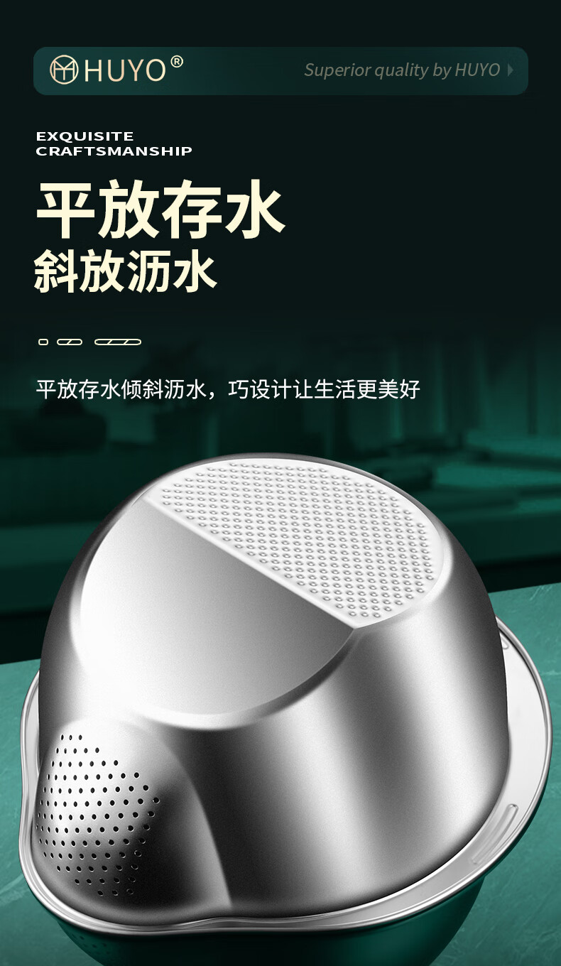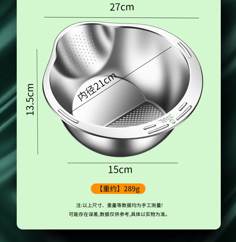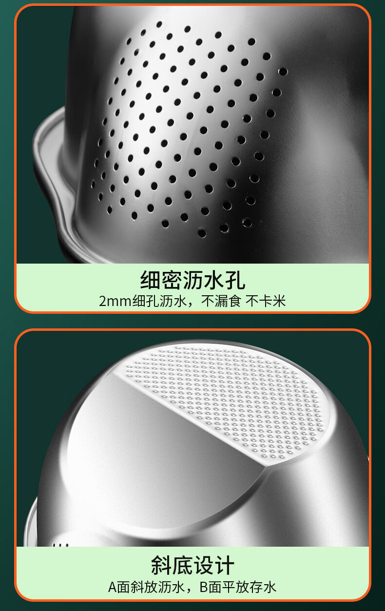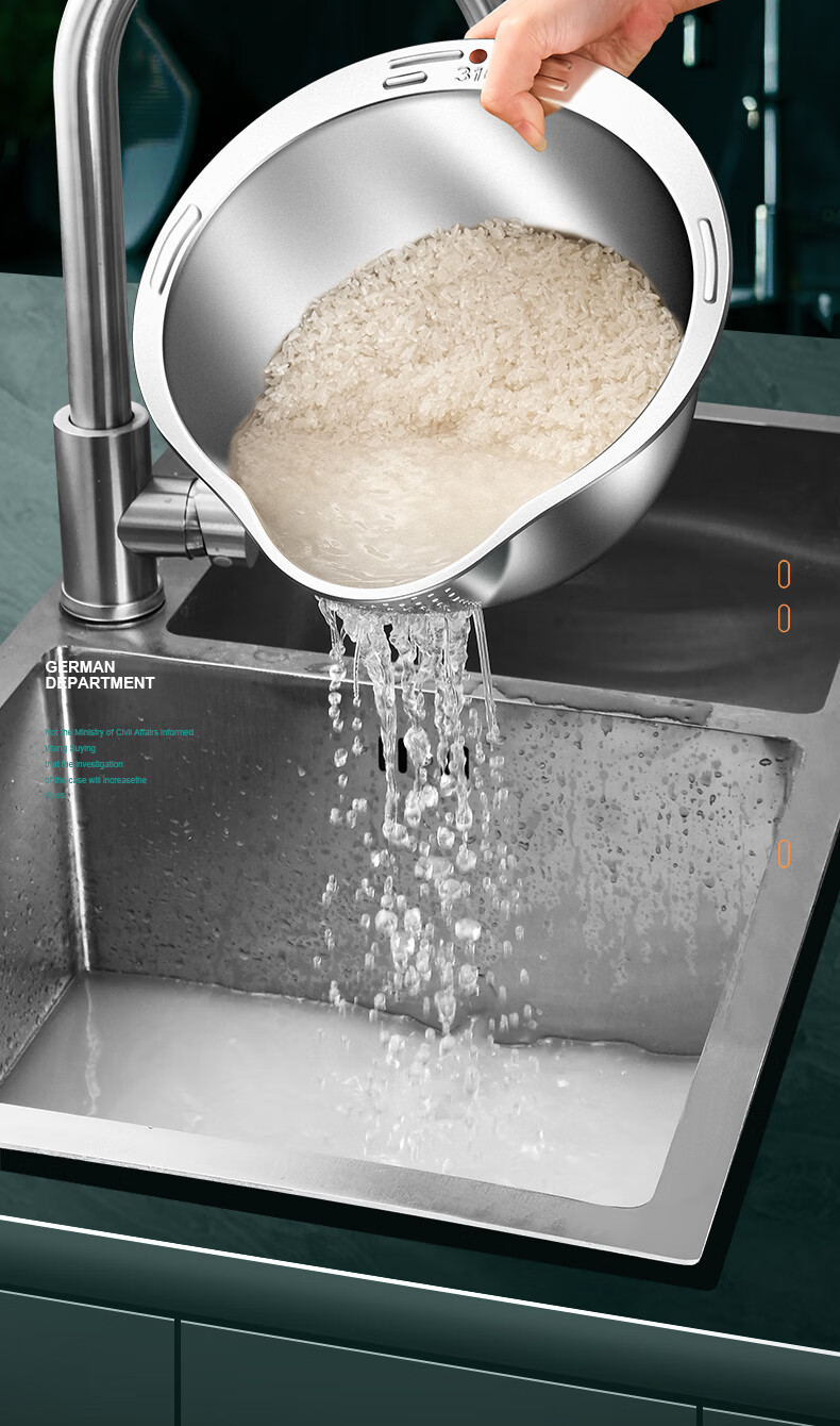 HUYO316L stainless steel drain basket, household multifunctional rice washing artifact, food grade large drain basin, rice washing sieve, antibacterial 316L steel, thickened drain basin