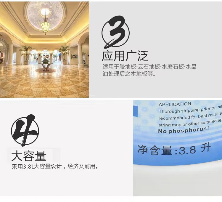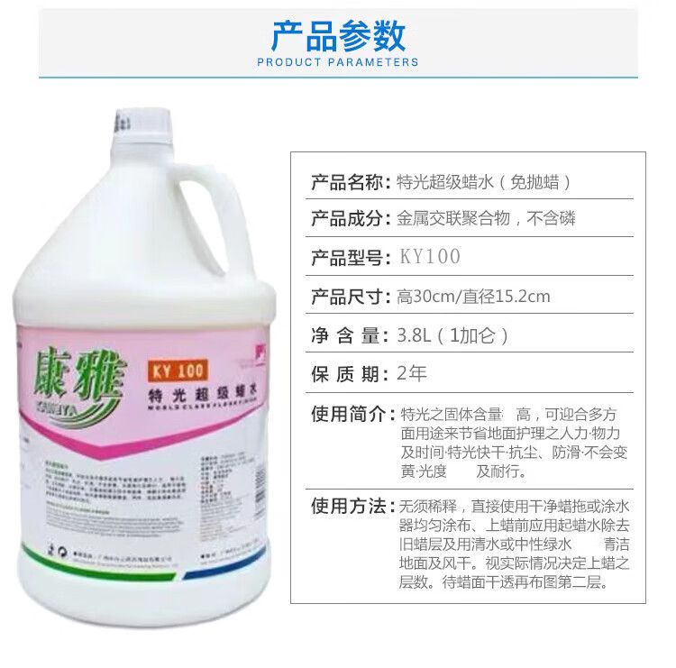 Baiyun Kangya commercial special light super wax water for shopping malls, hotels, residential properties, hospitals, office buildings, floor maintenance wax water, one bottle of 3.78L.