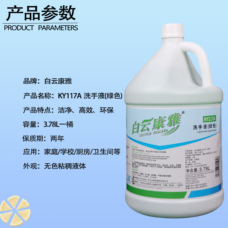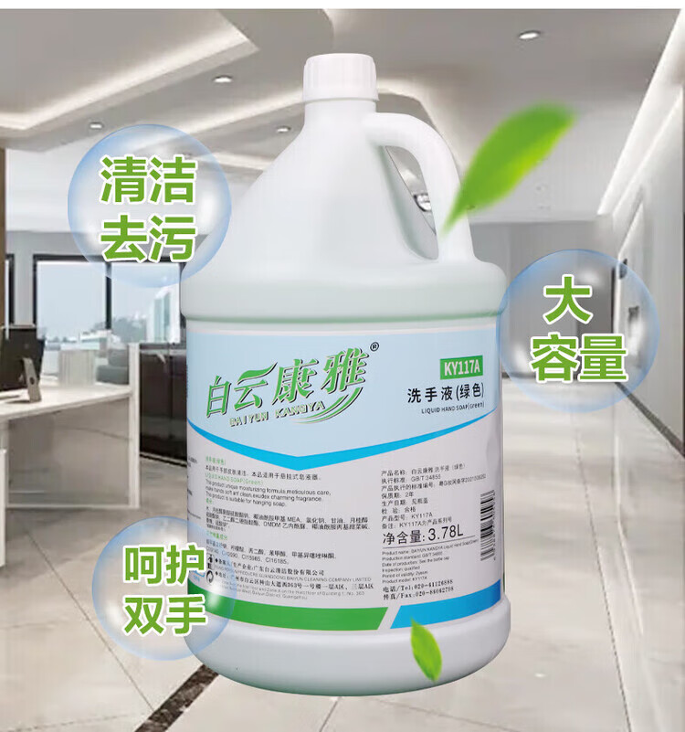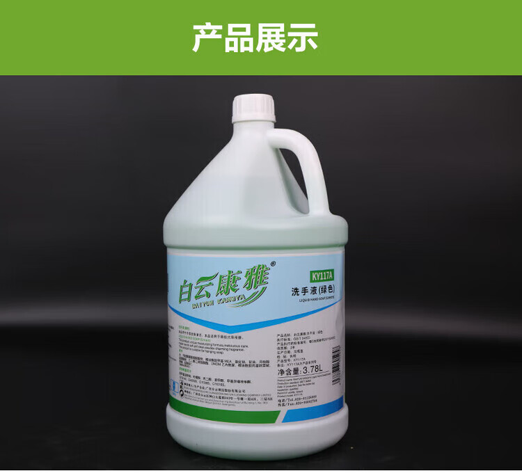 Baiyun Kangya hand sanitizer (green) commercial large barrel moisturizing foam hand sanitizer for hotels, hotels and shopping malls, one bottle of 3.78L.