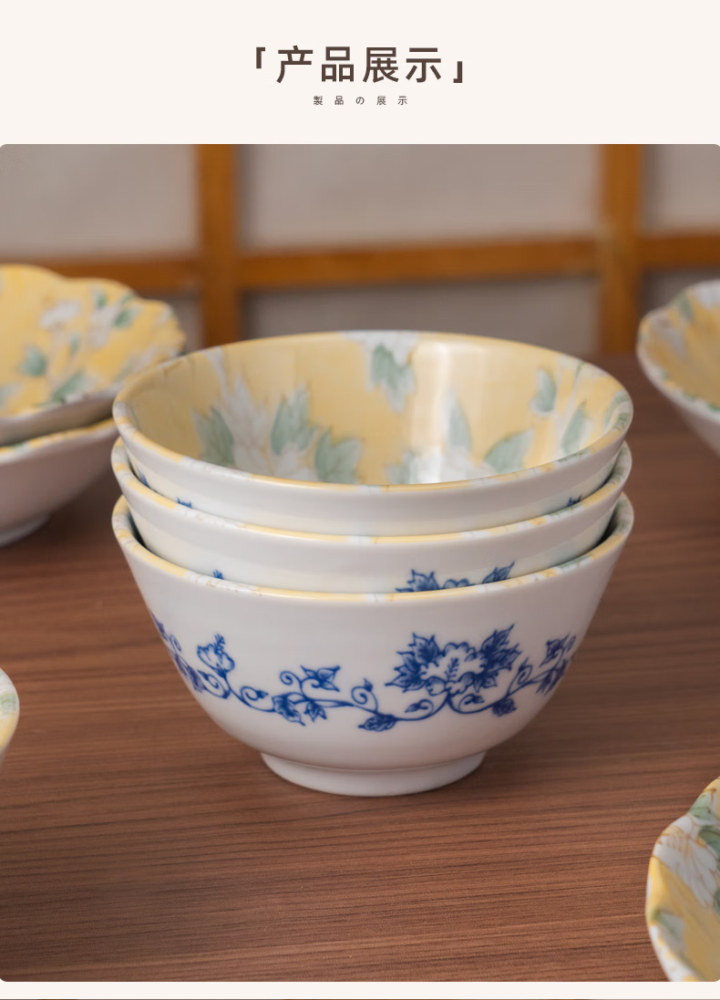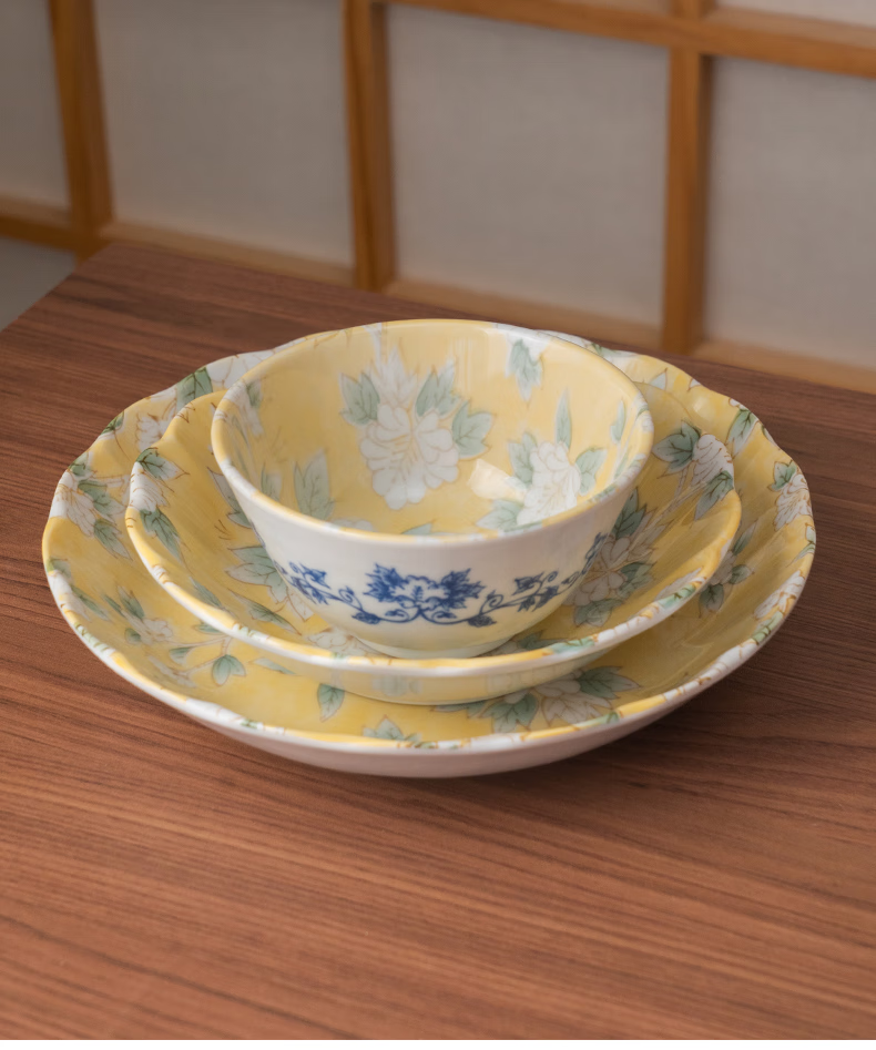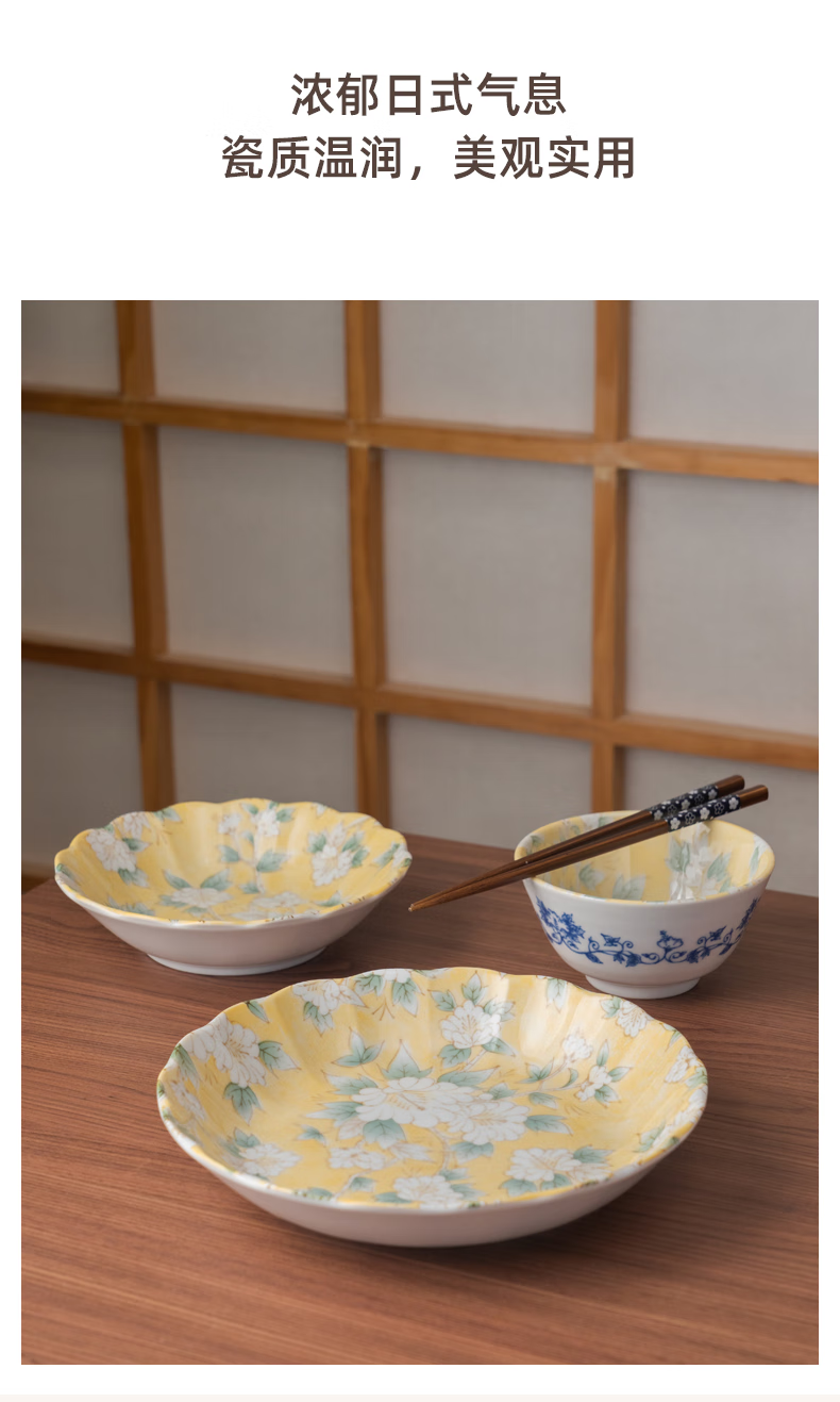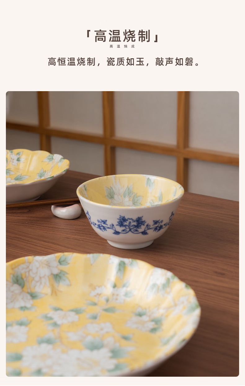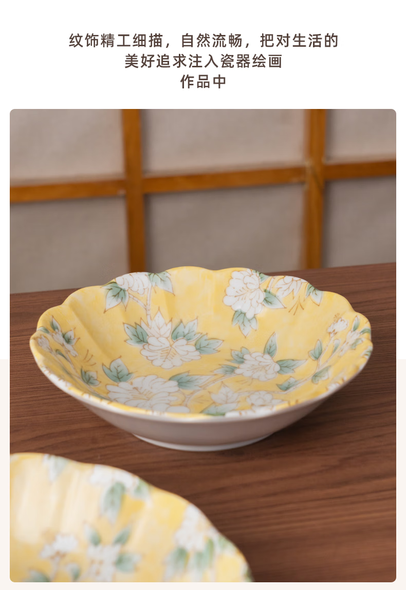 Mino Yaki Japan imported hibiscus bright yellow 8-piece ceramic tableware set household bowl and plate combination underglaze color high appearance Hibiscus bright yellow 8-piece set