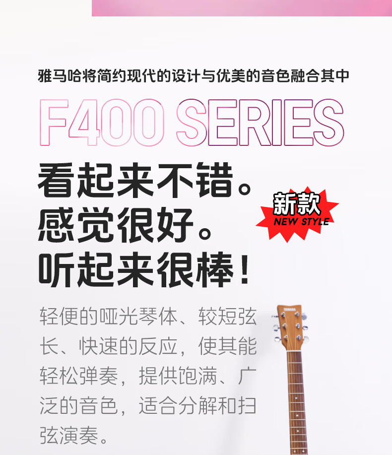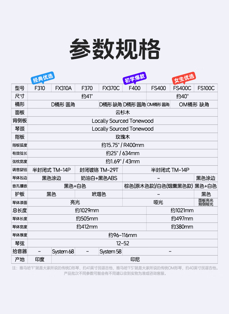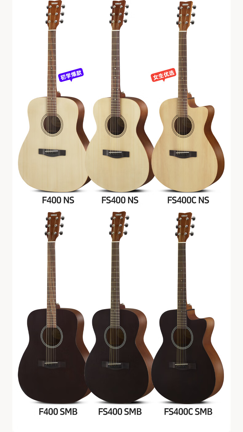 Yamaha Guitar F310/F400/F600 Beginner Beginner Entry-Level Instrument Adult Professional Electric Box Folk Acoustic Guitar FS400C SMB Suitable for Girls Black 40-inch Full Set of Accessories