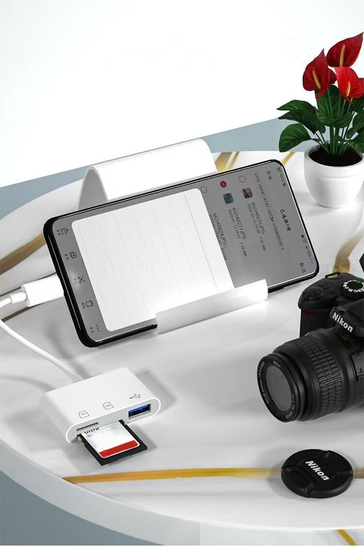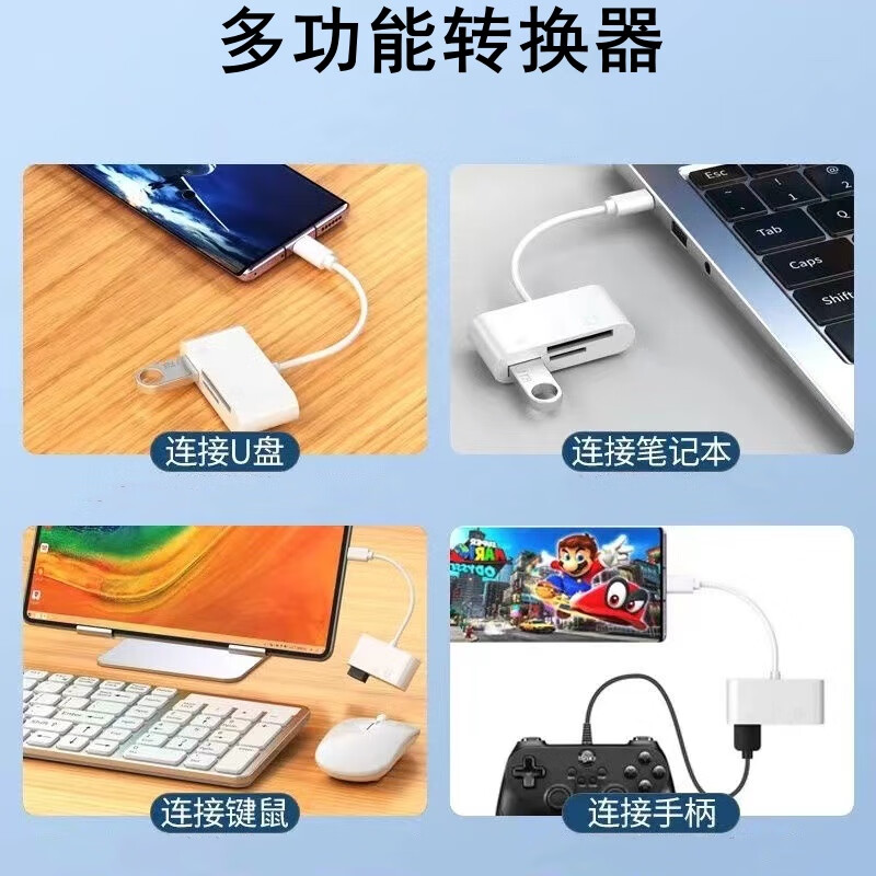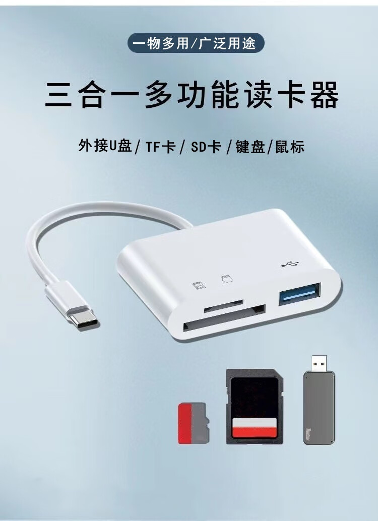 Yushuo/Suitable for Apple typec mobile phone OTG card reader conversion adapter TF/SD card U disk Android adapter cable type-cTF/SD card U disk 3-in-1-E7 white