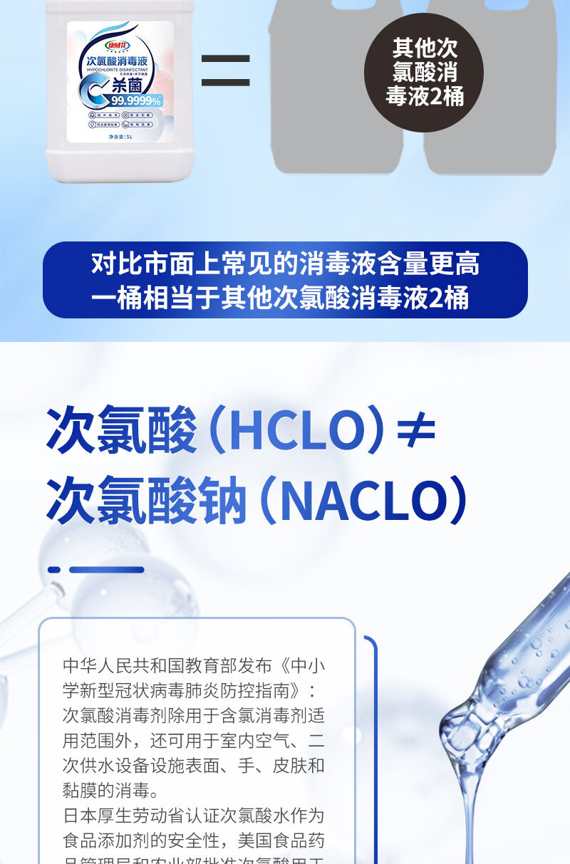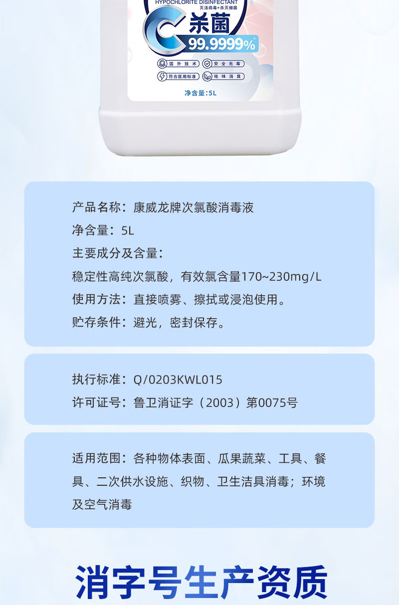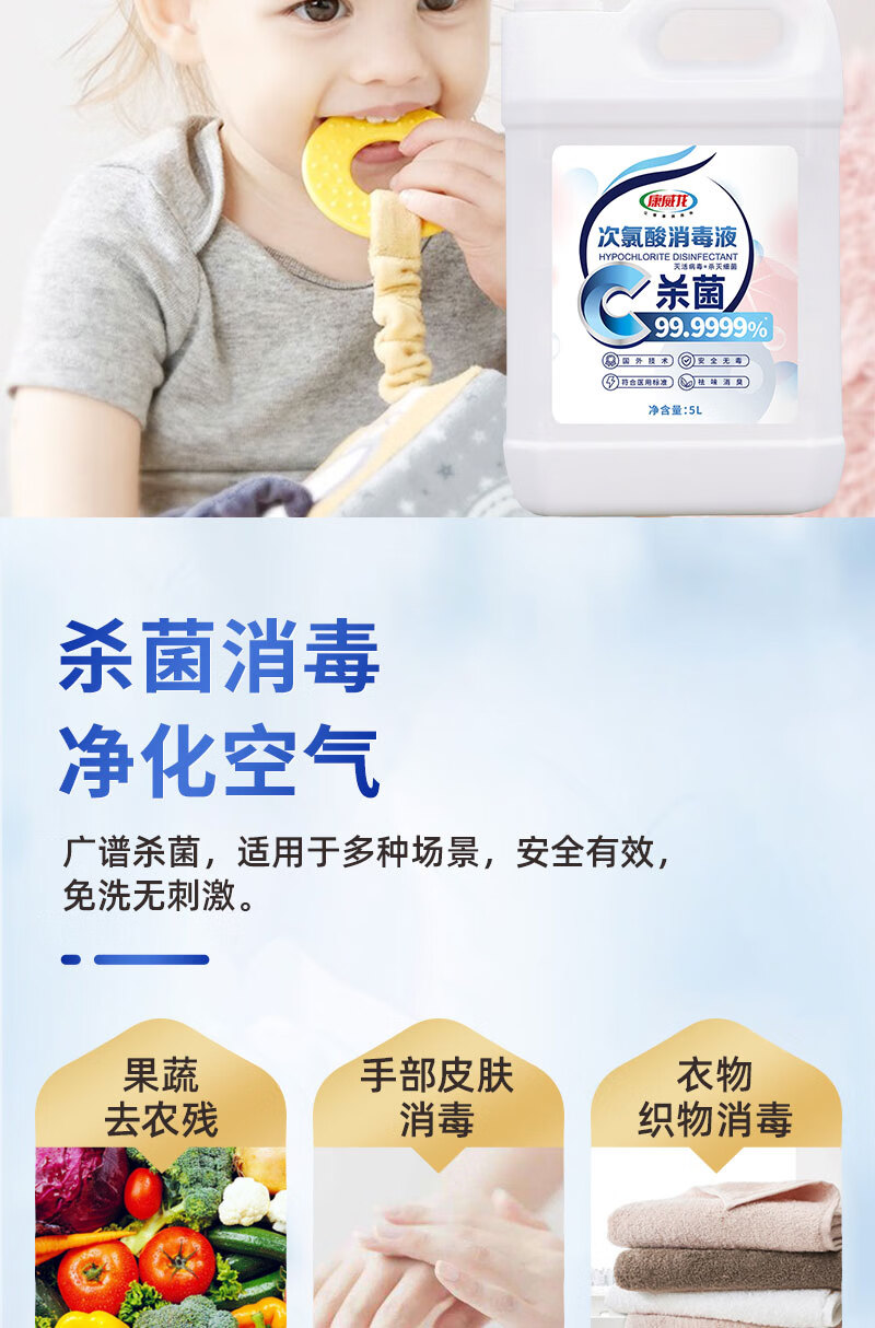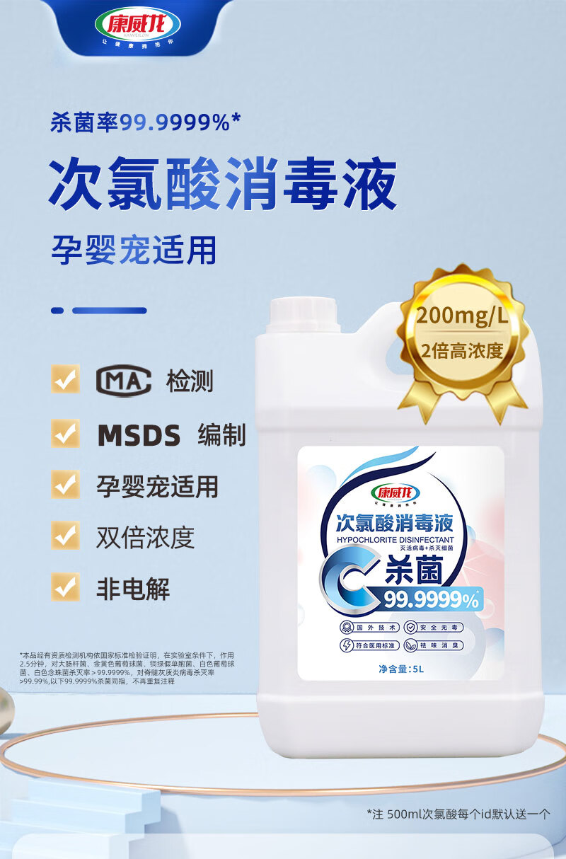 Conweilon hypochlorous acid disinfectant 5kg household sterilization indoor pet no-wash large barrel of chlorine-containing disinfectant water 5kg hypochlorous acid disinfectant