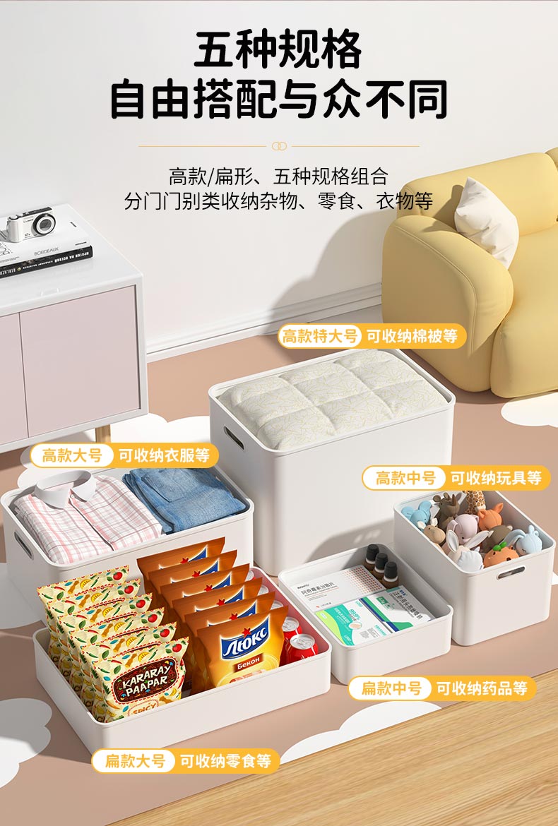 SIVASS cabinet snack storage box desktop cosmetic box storage basket kitchen household storage box artifact with lid buy one get one free elegant white (extra large)