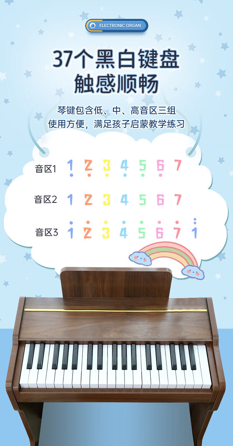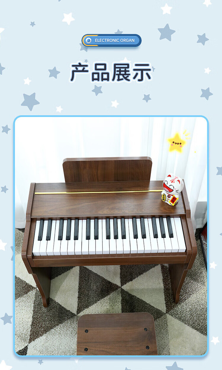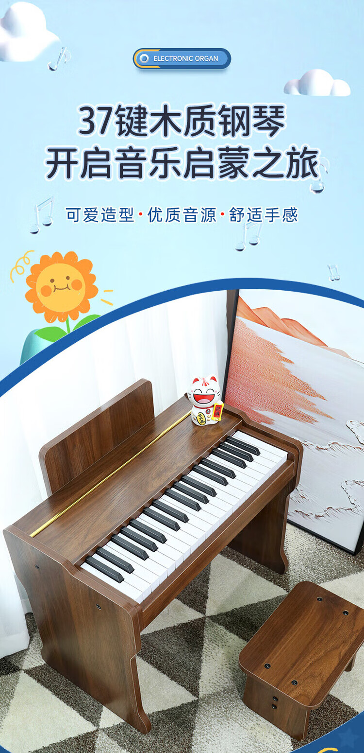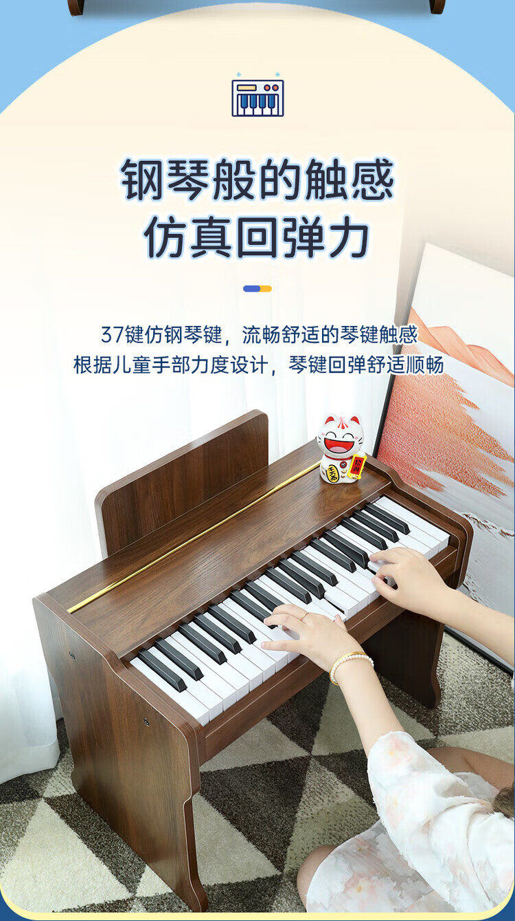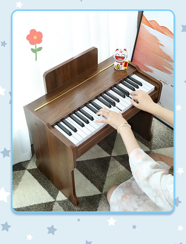 Beethostar 37-key children's small piano for beginners, baby boy and girl multi-functional small toy electronic piano birthday gift 37-key single headstock brown + sheet music + note stickers