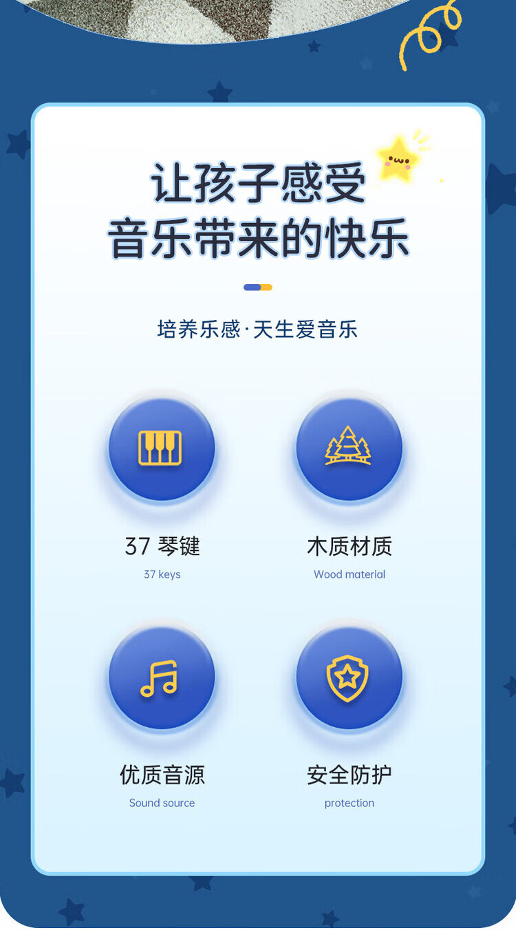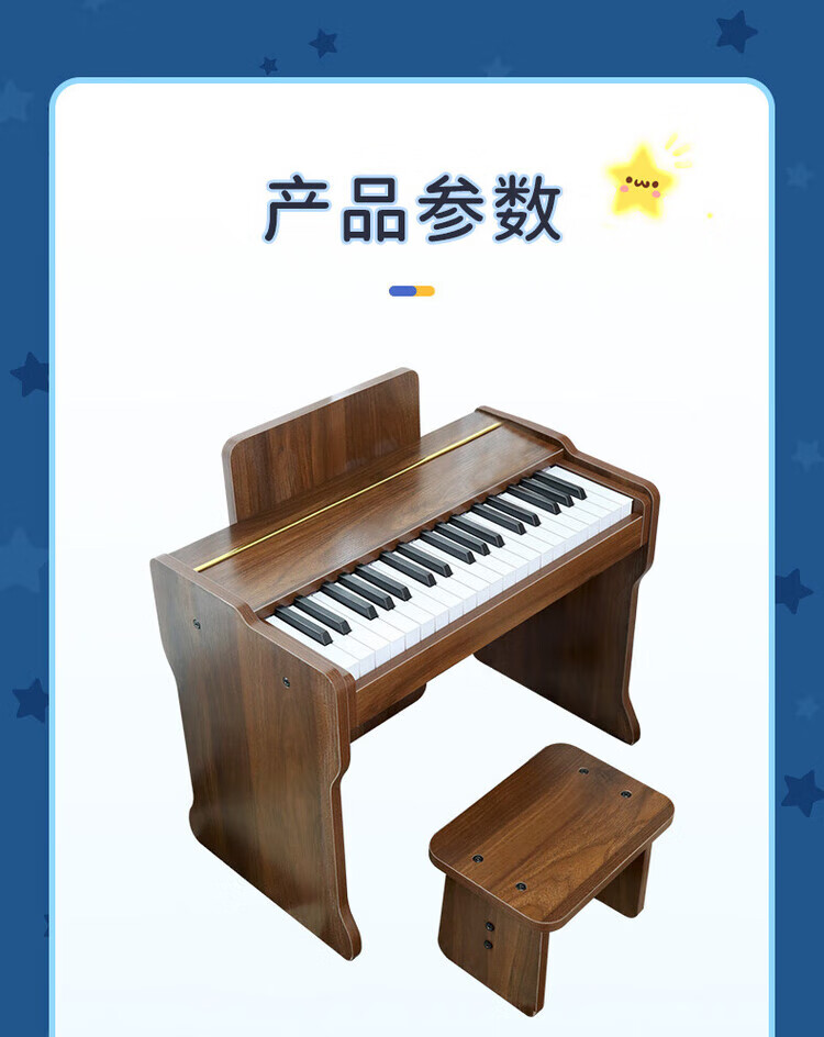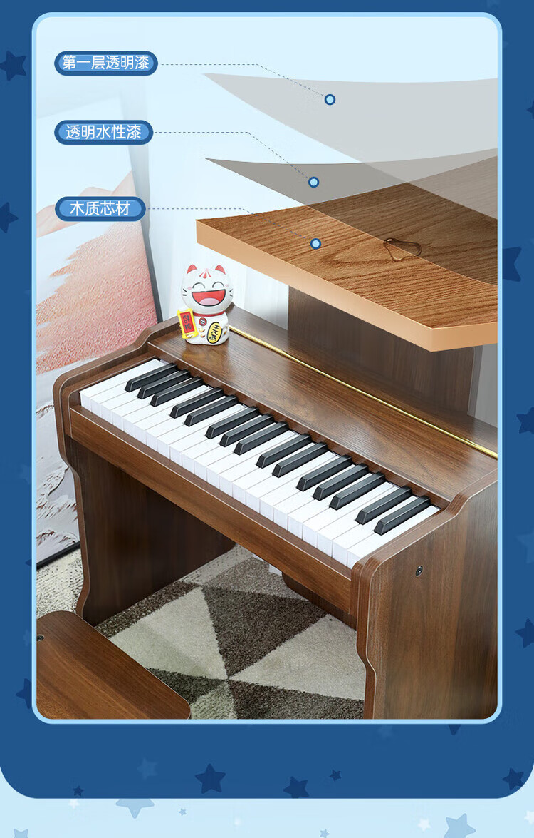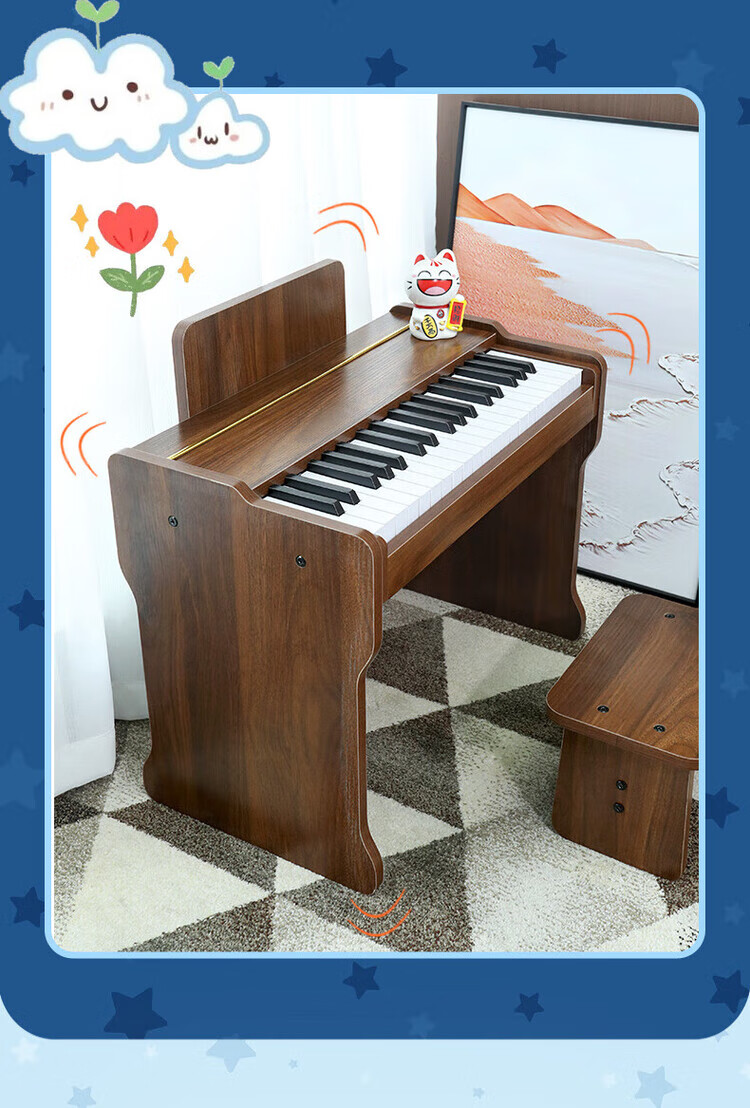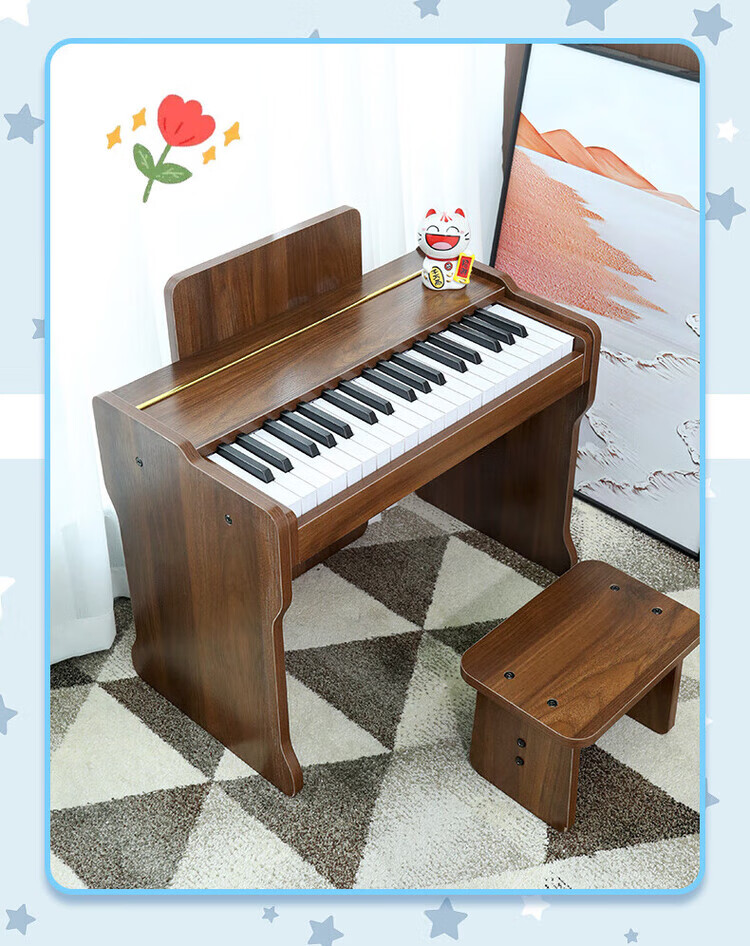 Beethostar 37-key children's small piano for beginners, baby boy and girl multi-functional small toy electronic piano birthday gift 37-key single headstock brown + sheet music + note stickers