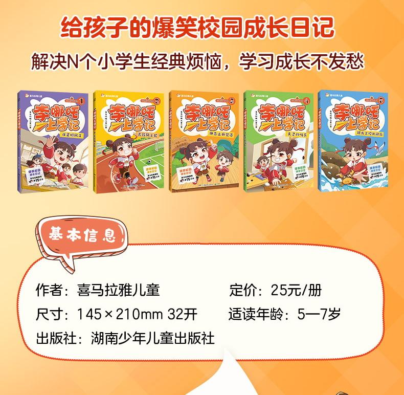 Li Nezha's School Diary, complete in 5 volumes. Picture book for children in grades 1, 2 and 3. 5-8 years old, color pictures, comics, phonetic notation, popular primary school students' growth diary, hilarious story bridge book. 7-14 years old, Himalaya views 1.5 billion+. Li Nezha's School Diary (all 5 volumes)