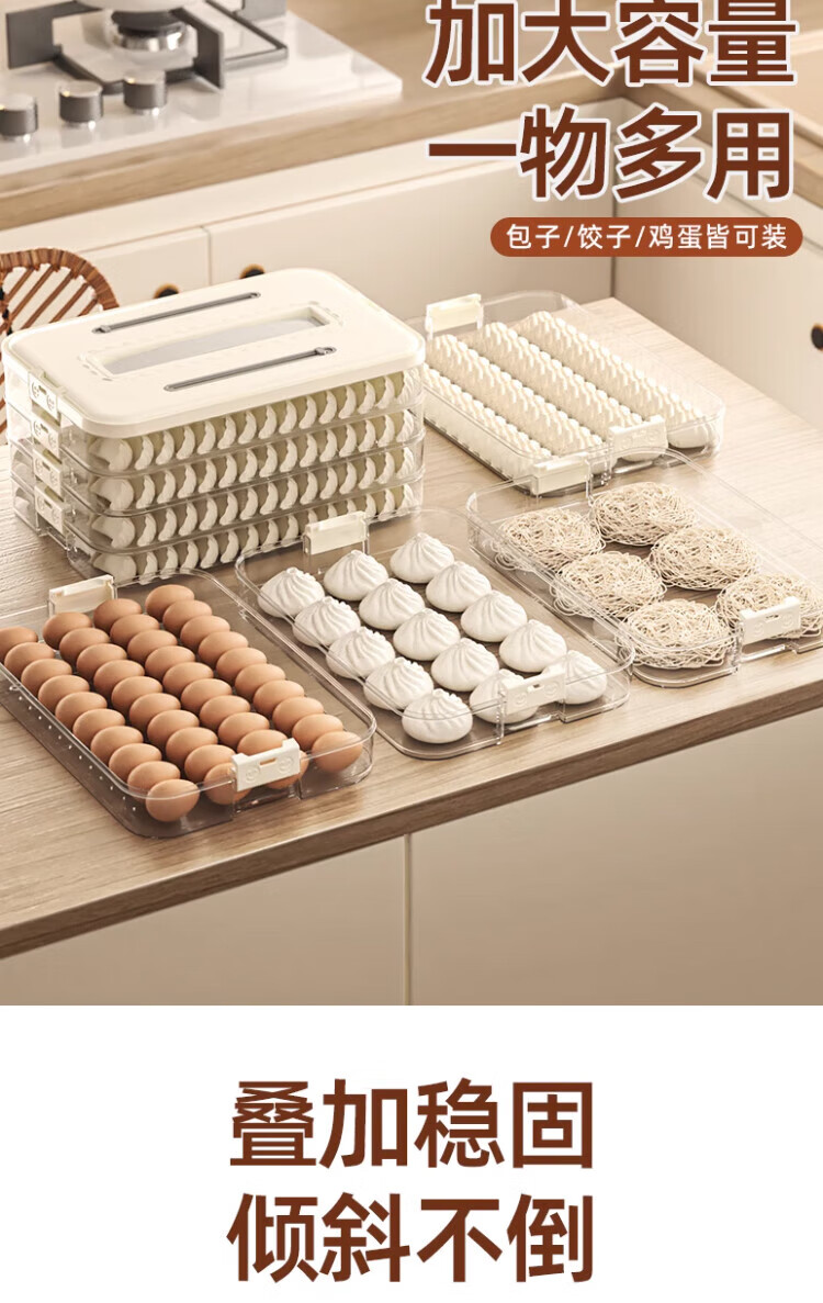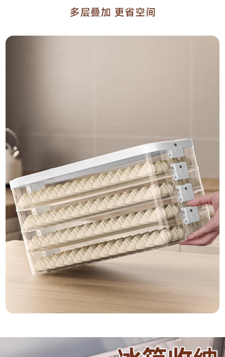 Jingyan dumpling refrigerator storage box frozen dumpling box food-grade quick-frozen dumpling plate wonton box dumpling crisper box large capacity timer lock 4 layers with lid hot and cold non-stick | portable hand-held | stacked and stable