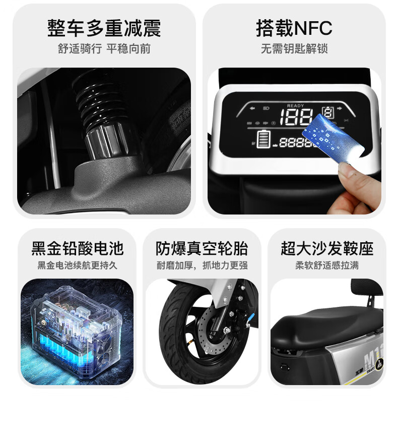 Wuyang Official Authentic 2025 Electric Motorcycle NFC Unlocked High-Power Electric Vehicle Two-Wheel Electric Motorcycle Men's and Women's Fashionable Electric Scooter Planet Gray/Speed 50M/Front Disc and Rear Drum/Bar Box Version 72V26A/New Graphene Battery/Wooden Frame Shipped