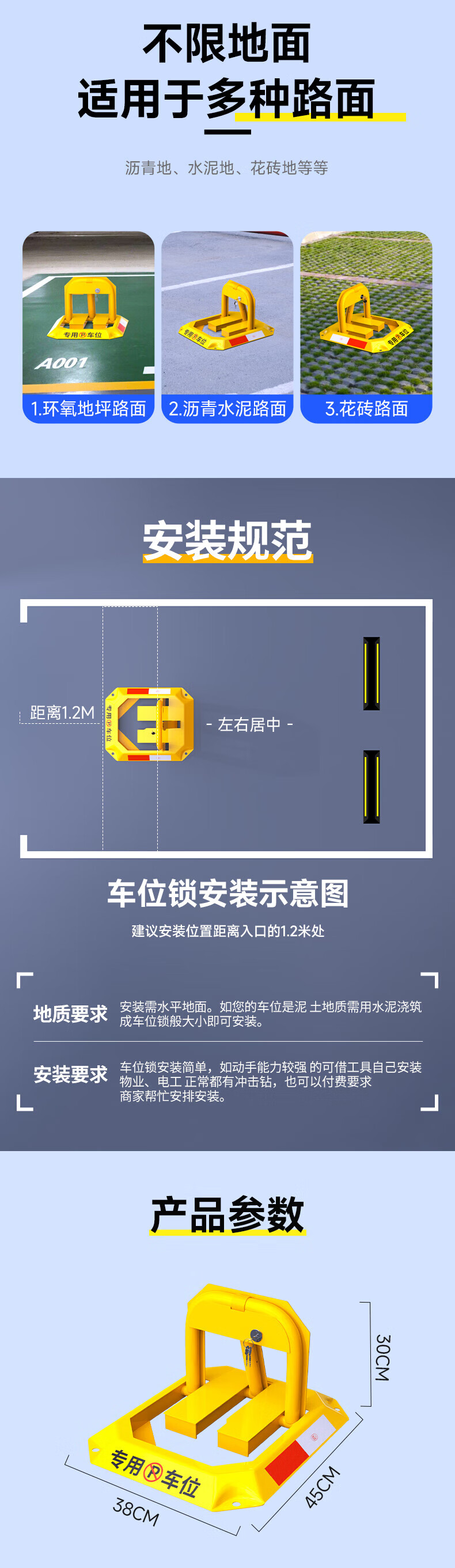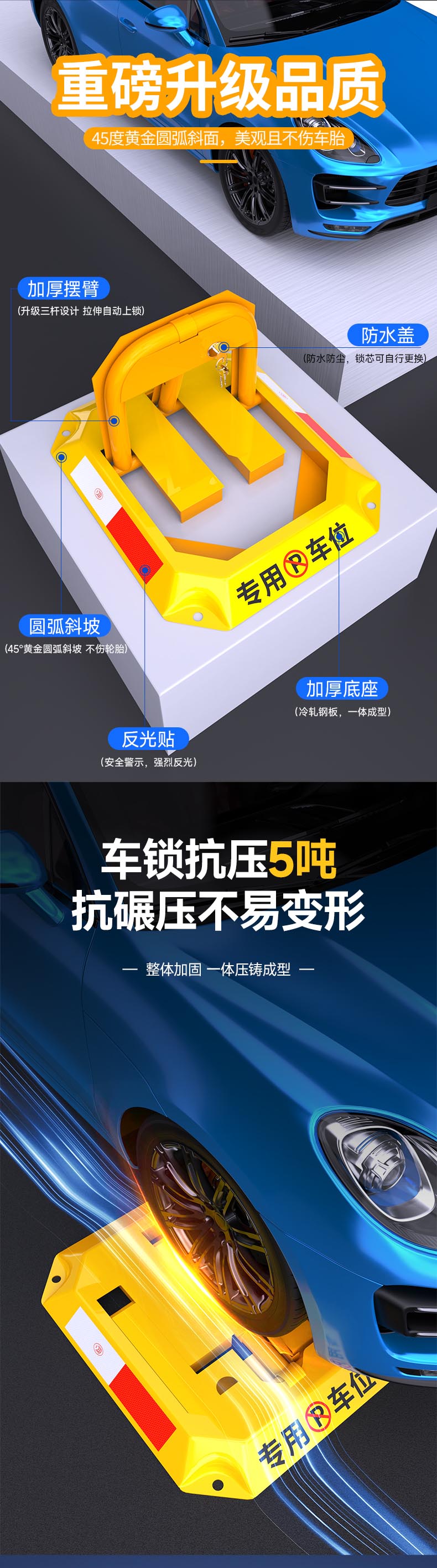 Huangchi parking space lock, ground lock, anti-occupancy artifact, thickened garage parking space lock, automatic locking ground stake, car lock, roadblock, high cost performance, pull-up lock + 5 tons of pressure resistance