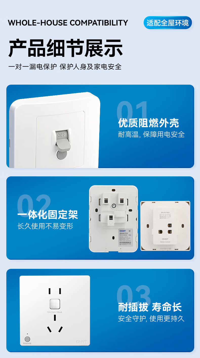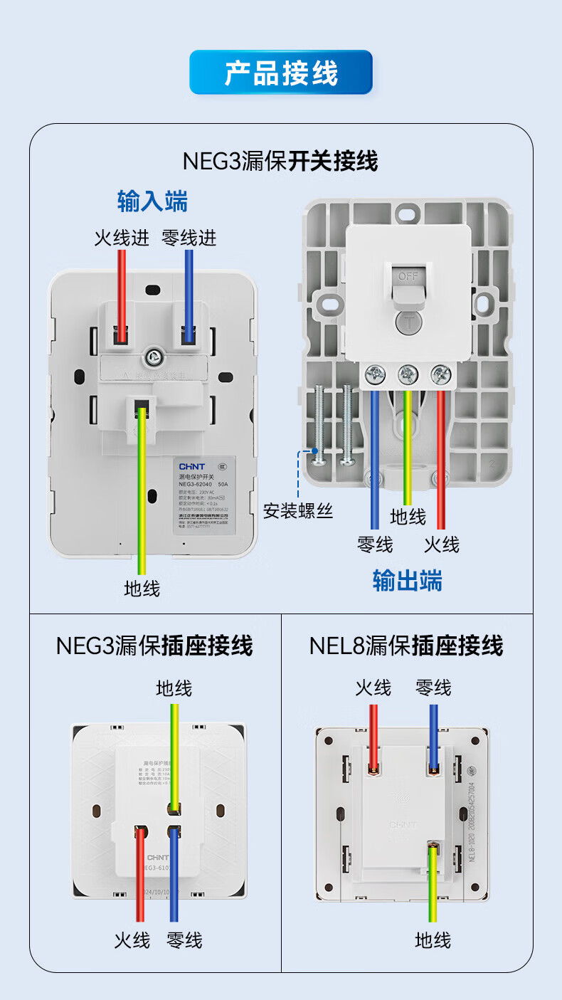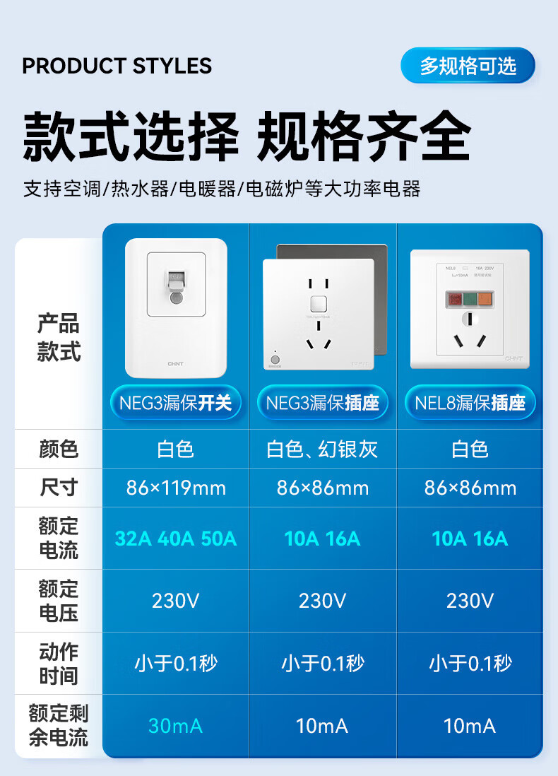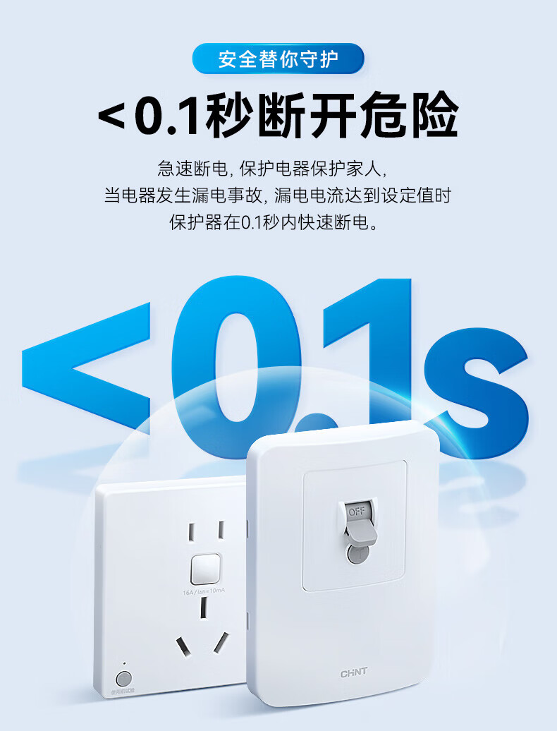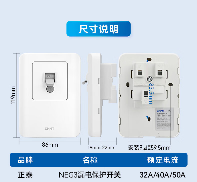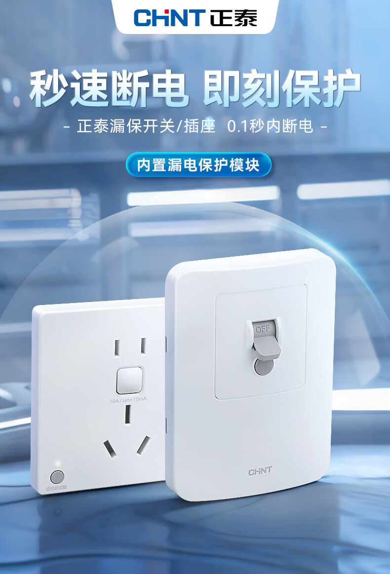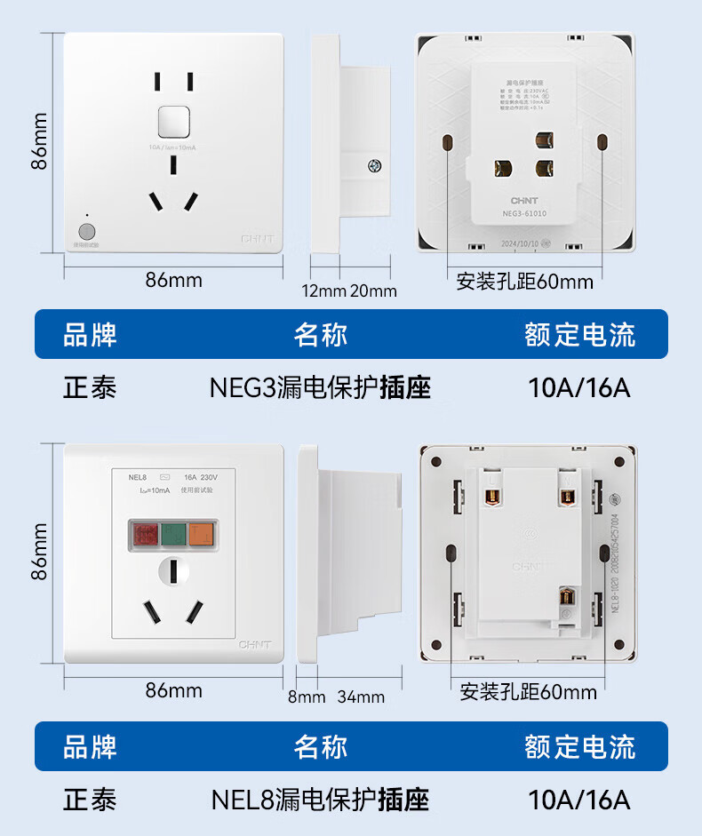 Chint (CHNT) leakage protection switch 32A high-power air conditioning socket cabinet household air switch 86 type fixed leakage protection circuit breaker NEG3-61010 leakage protection socket 10A 230V (phantom silver gray)