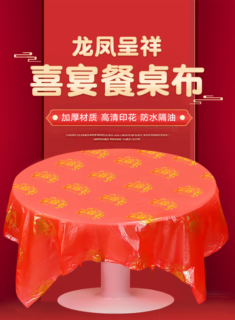 NYDER disposable tablecloth thickened plastic round table square banquet wedding rectangular red classic red 1.8*1.8m 10 sheets