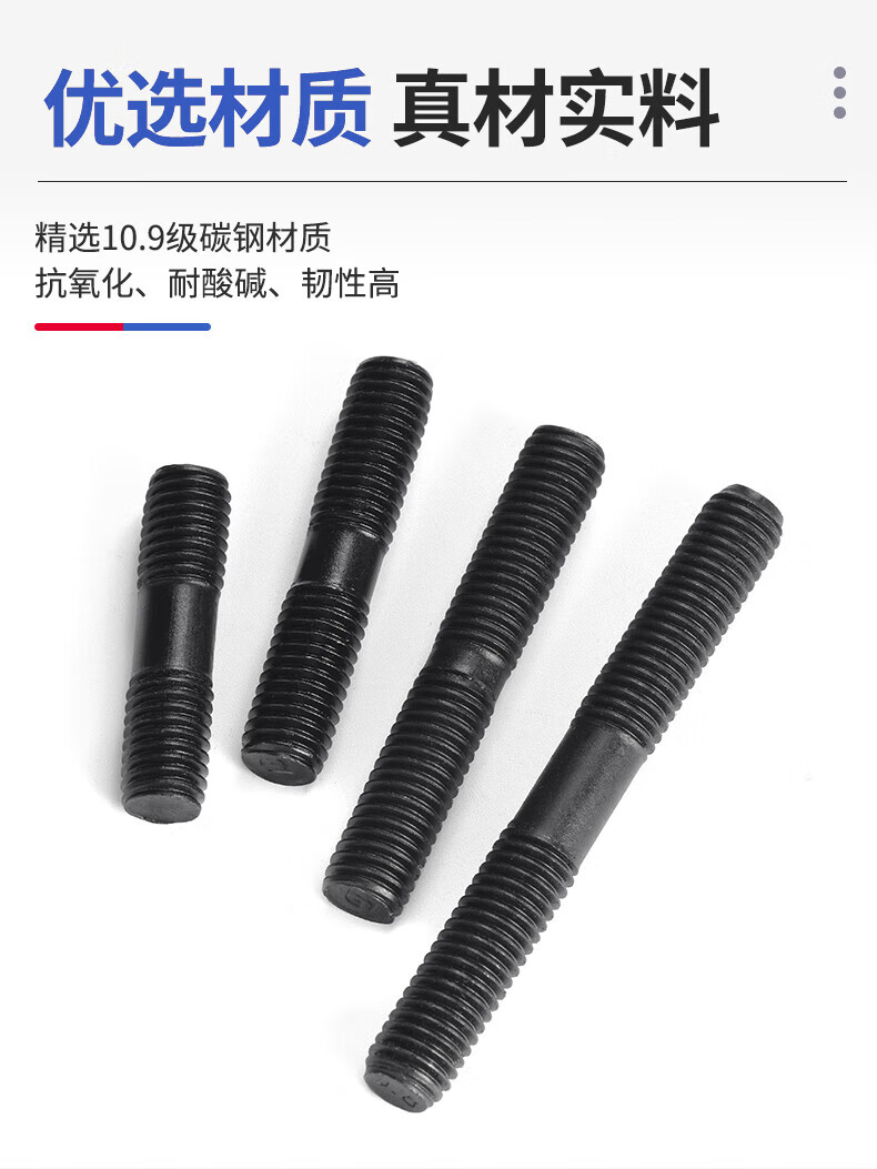 Jinggong (JINGGONG) Grade 10.9 double-headed screw double-headed thread bolt connecting rod screw stud screw m12m14m16-m30 M16*80 (5 pieces) Grade 10.9
