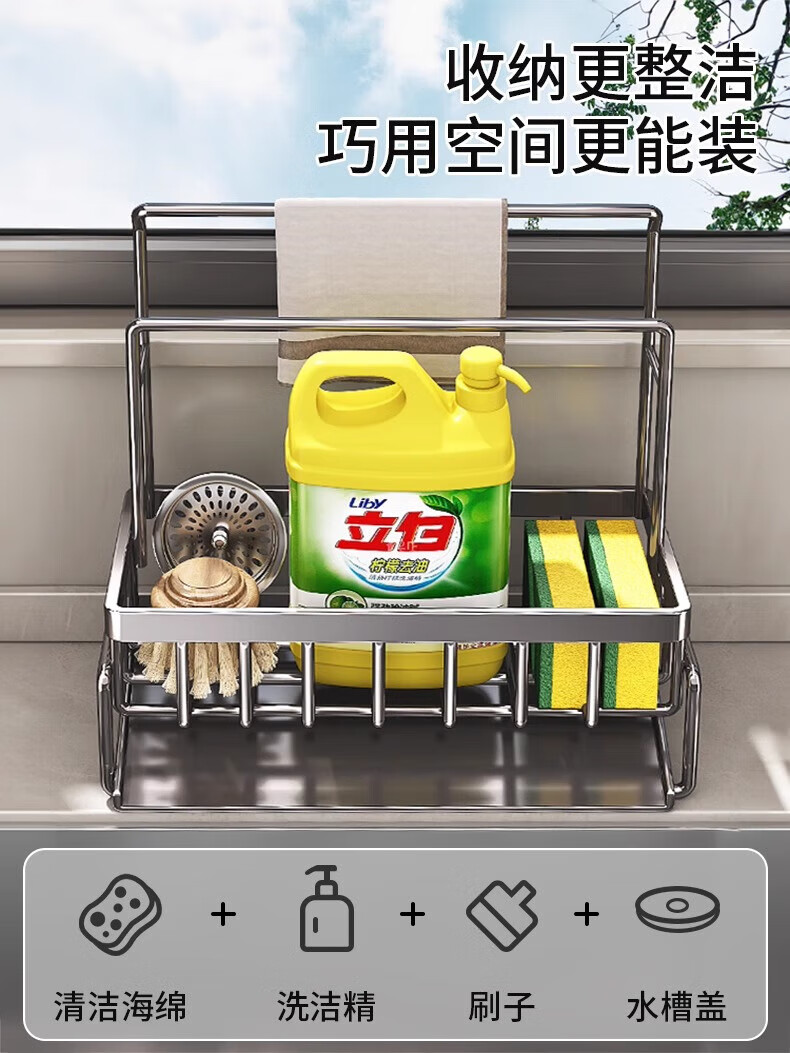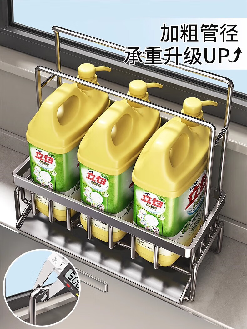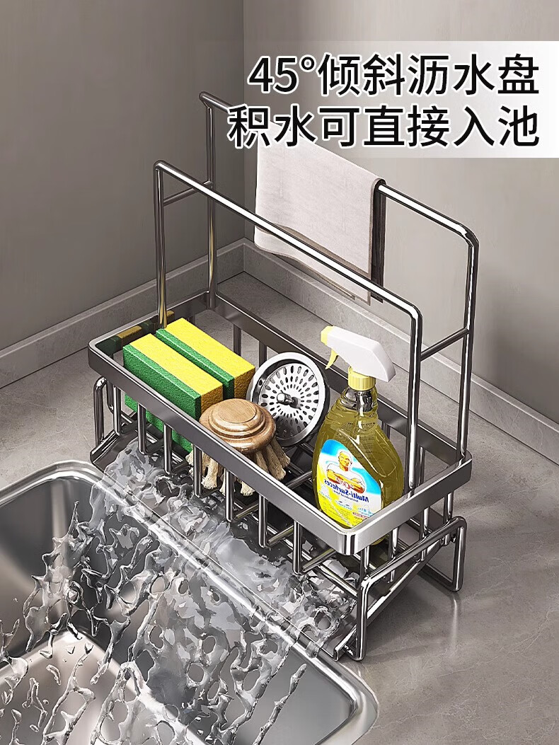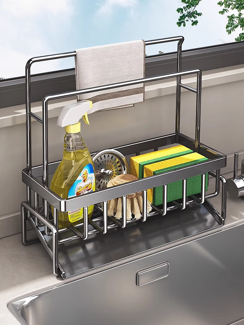 YOUQIN Kitchen Drain Rack Storage Rack Faucet Pool Basket Sink Supplies Dishwashing Steel Ball Storage Rag Rack Gun Gray - Slope Drain Basket Heightened Double Rod