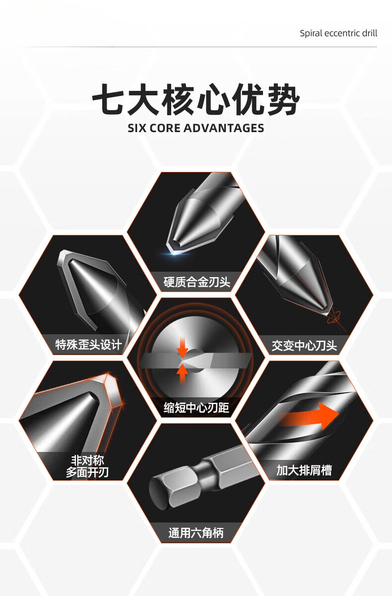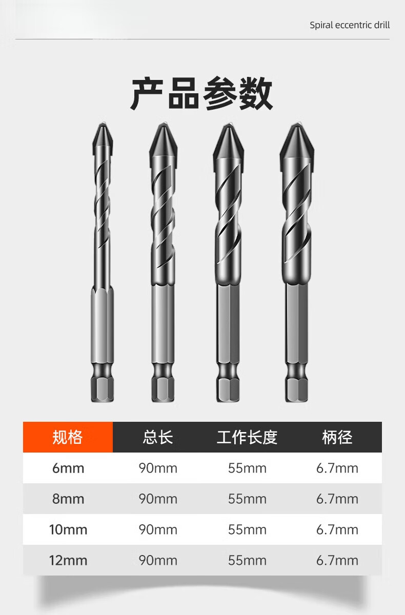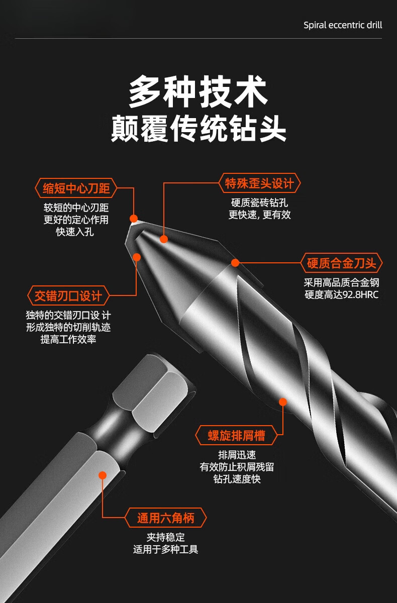 JCZS German quality twist drill bit four-edged serrated eccentric drill bit tile drill bit concrete high hardness glass drilling serrated drill 6+8 two pieces in total
