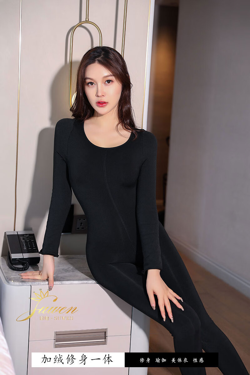 Feiyu Autumn and Winter One-piece Bodysuit for Men and Women Tight-fitting Full Body Thickened Velvet Warm Shaping Leggings Pajamas Underwear Black Turtleneck Thickened Stockings 450g Large Size Open + Chest Zipper Men's and Women's 136-185 Jin